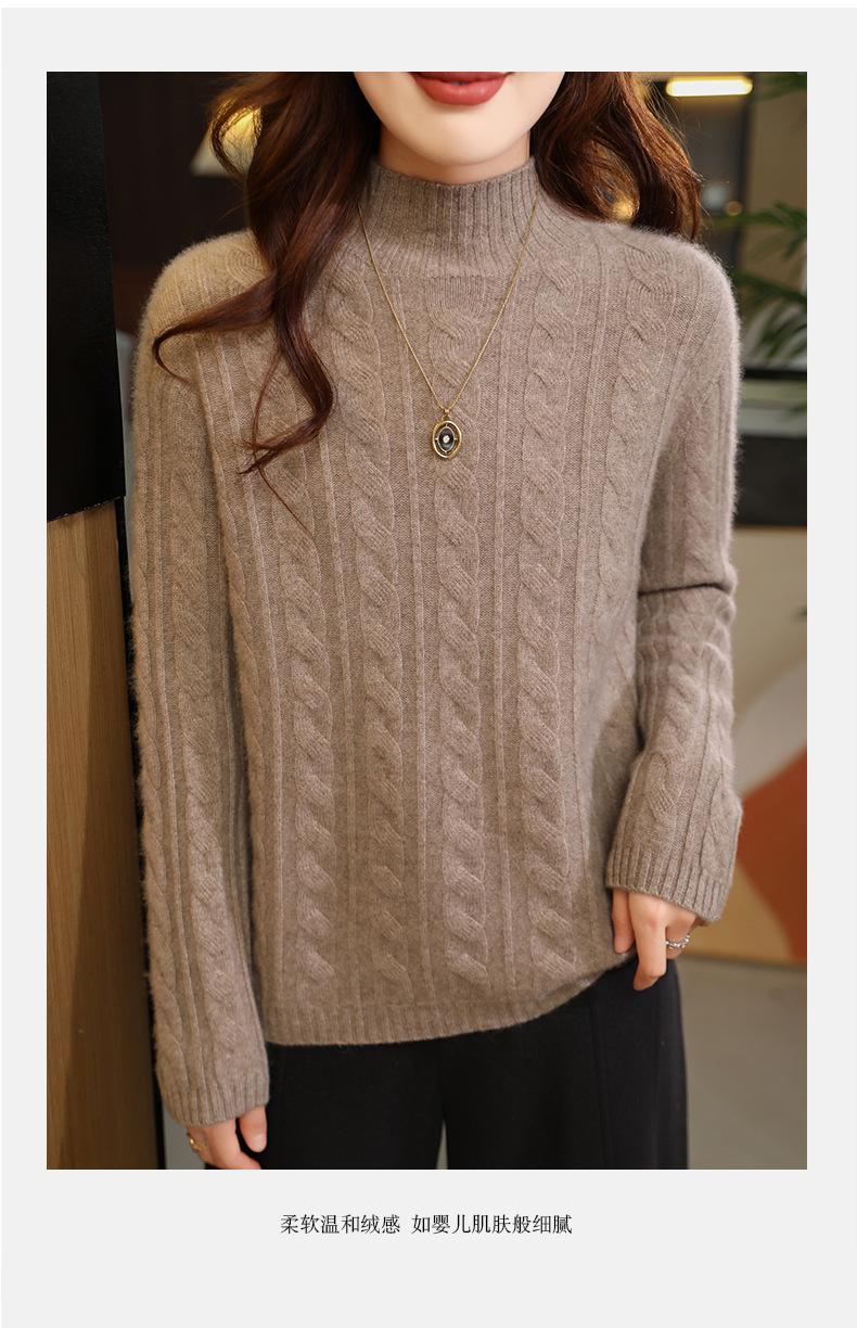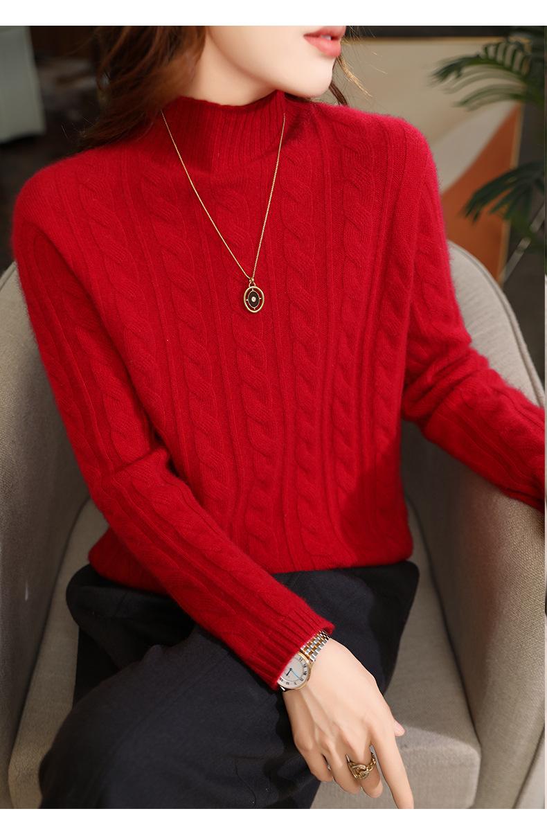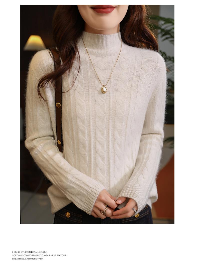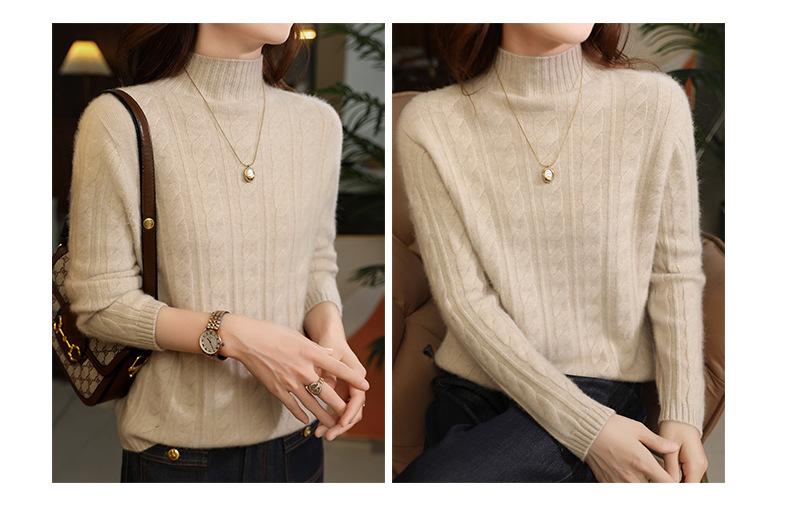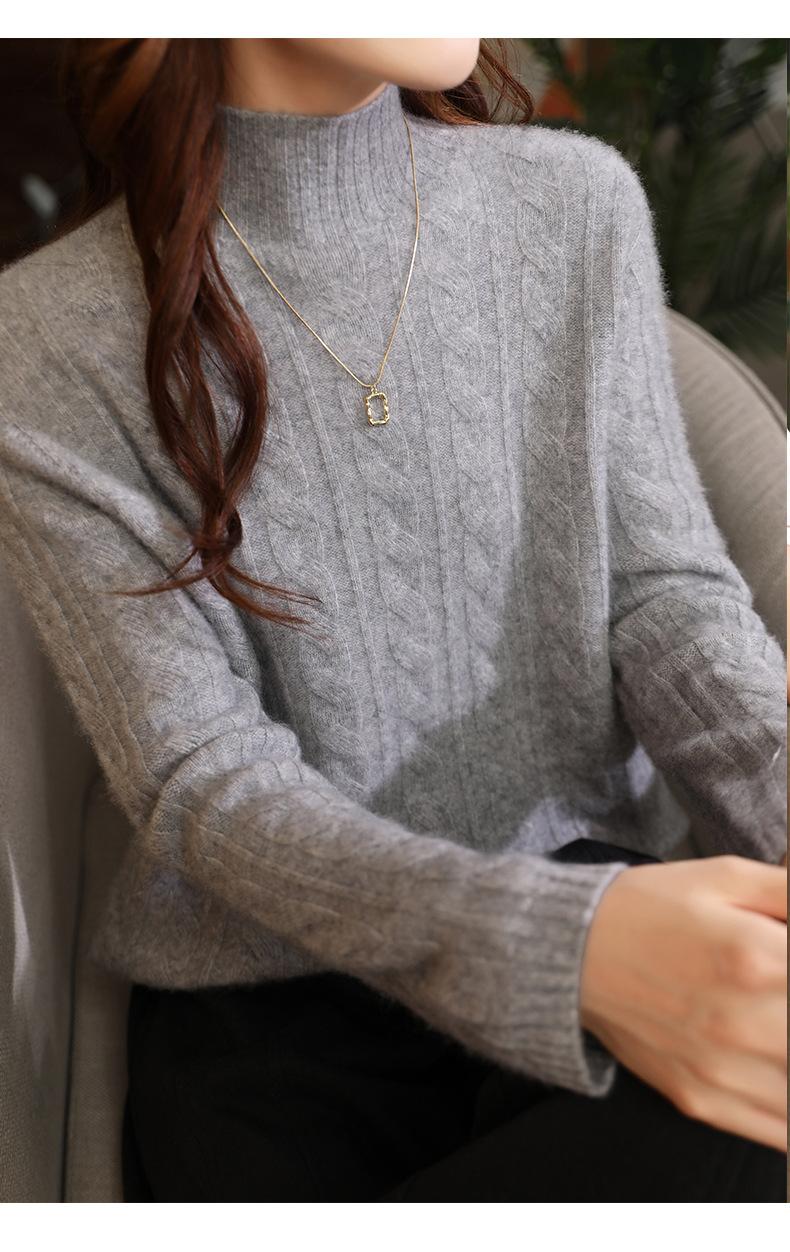 Suéter de Punto Versátil Otoño e Invierno Nuevo Urbano 100% Lana Suéter Grueso para Mujer Ajustado Básico Cuello Alto