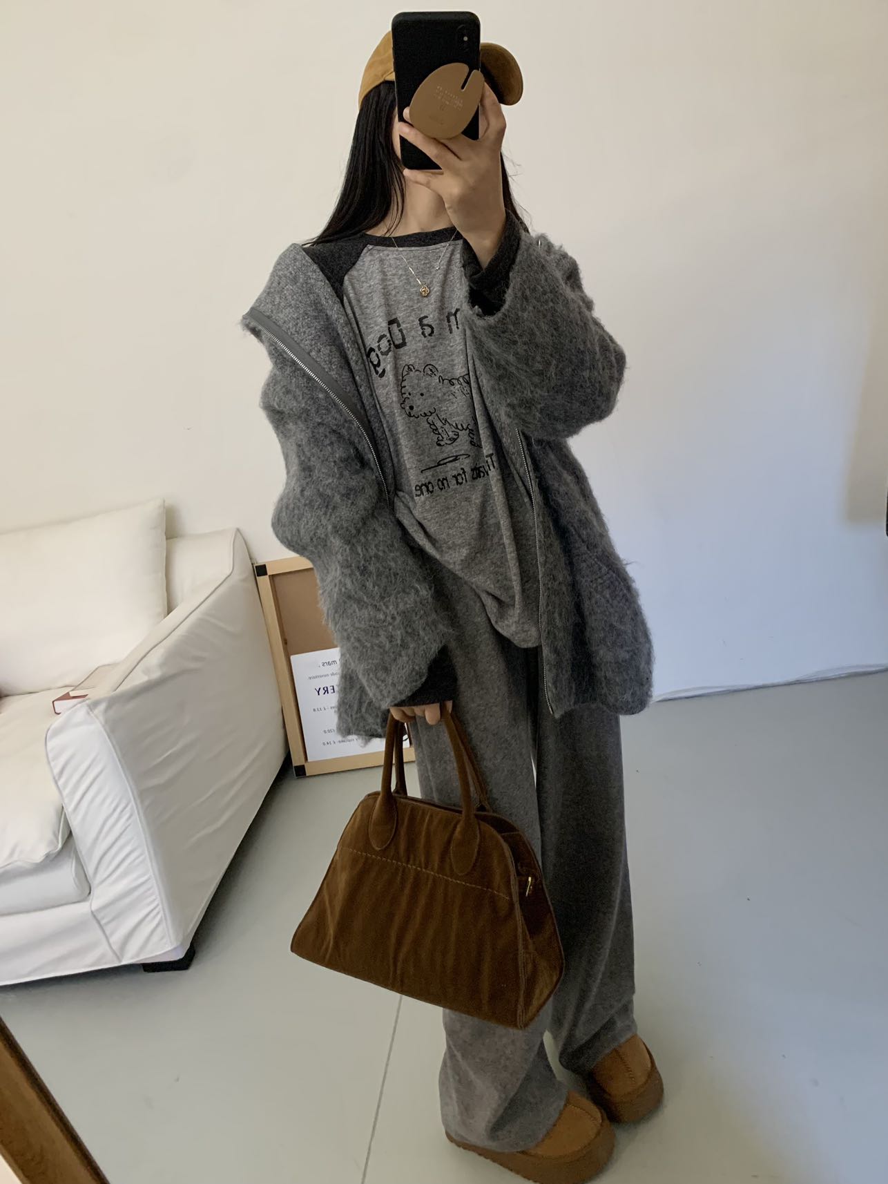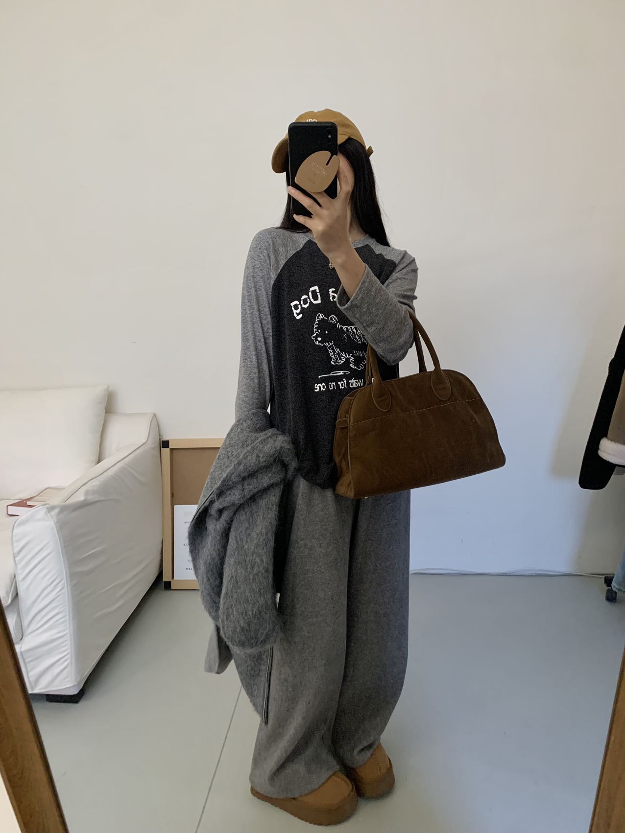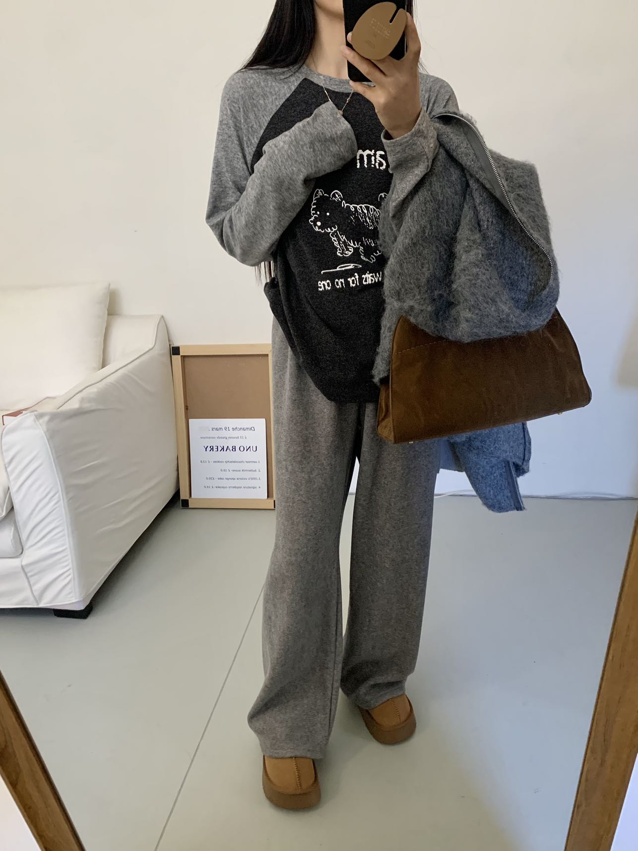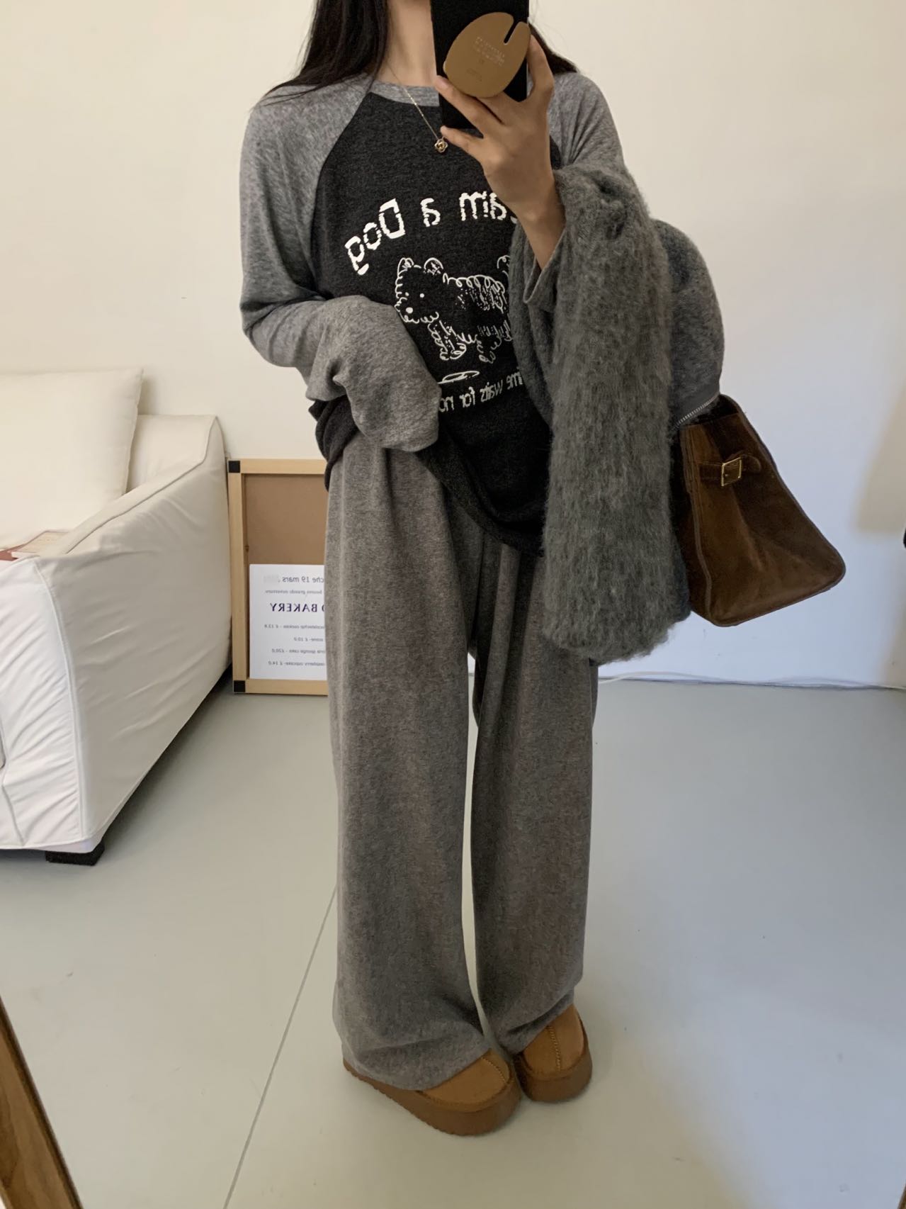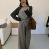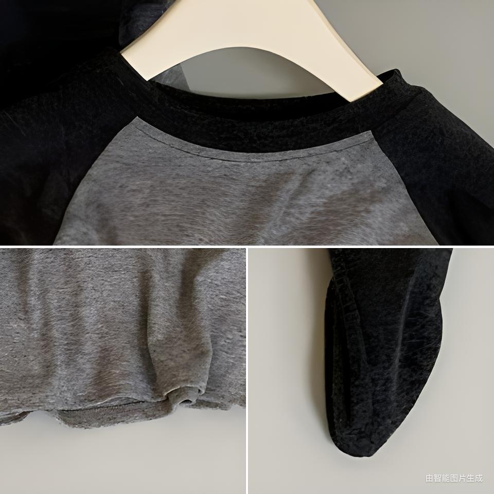 Otoño e Invierno 2024 Nueva Moda Coreana Cuello Redondo Manga Raglán Combinación de Colores Reductor de Edad Holgado Versátil Camiseta de Manga Larga Top