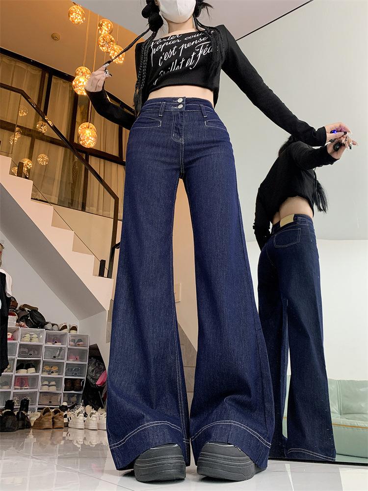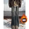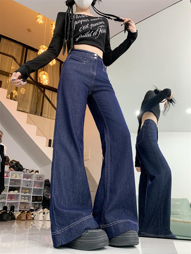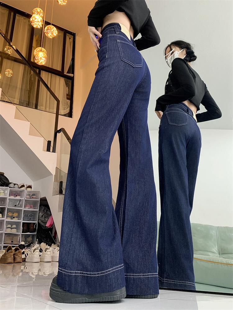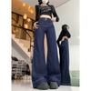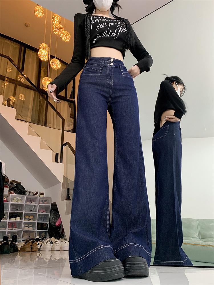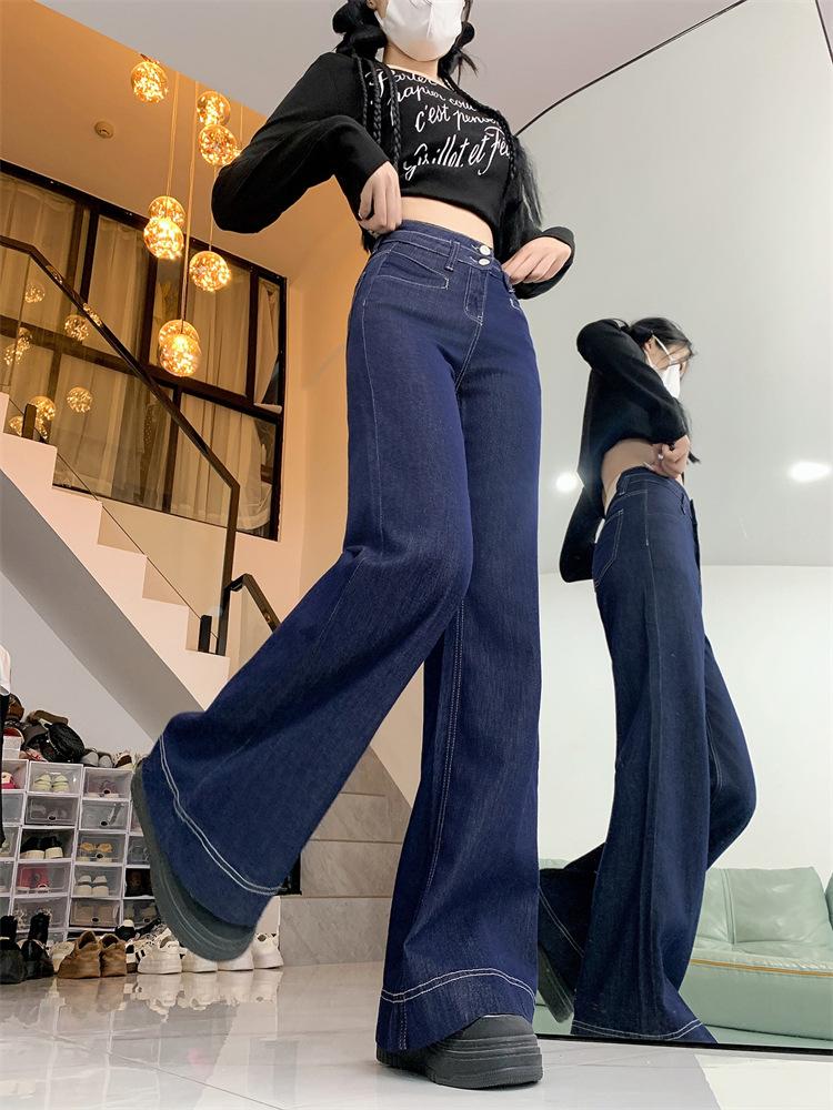 Talla grande color tanino micro-blah jeans mujer otoño 2024 nuevo chica gordita cintura alta adelgazantes pantalones acampanados retro americanos