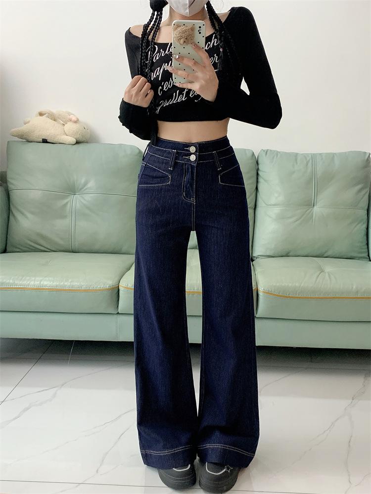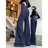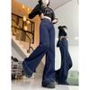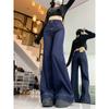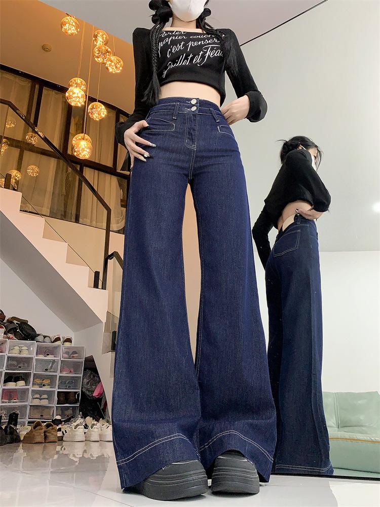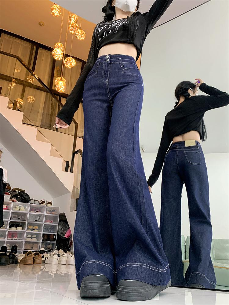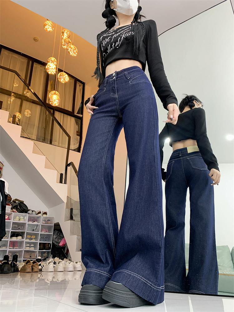 Talla grande color tanino micro-blah jeans mujer otoño 2024 nuevo chica gordita cintura alta adelgazantes pantalones acampanados retro americanos