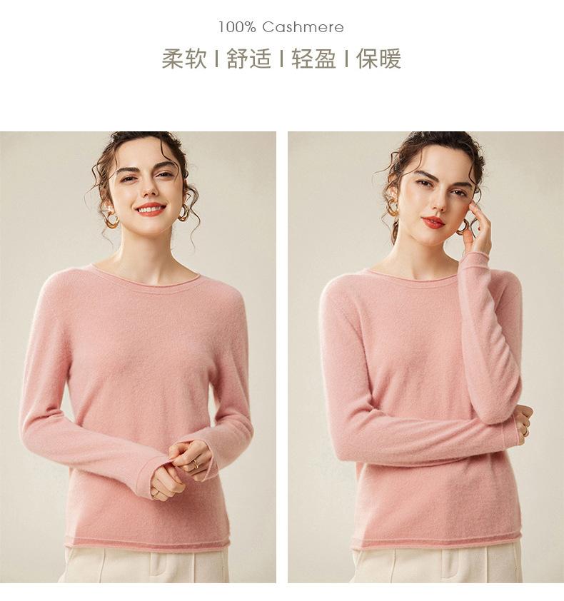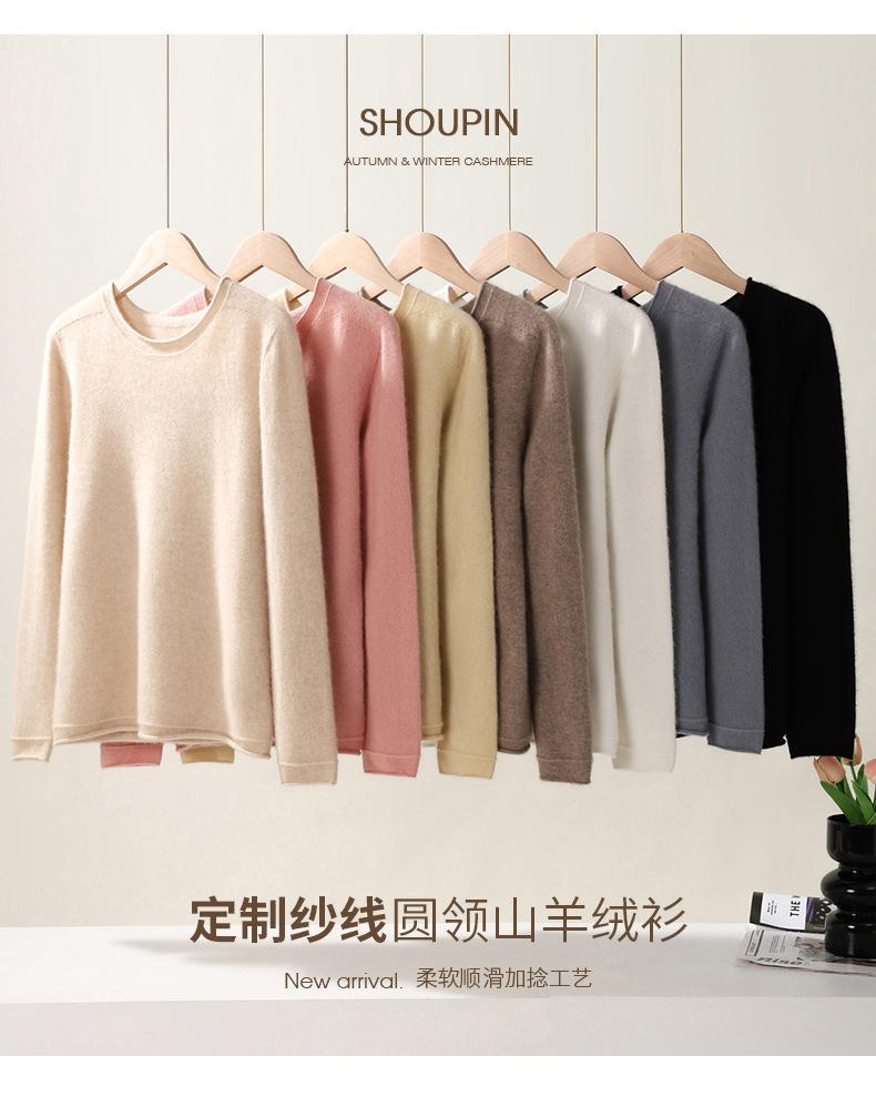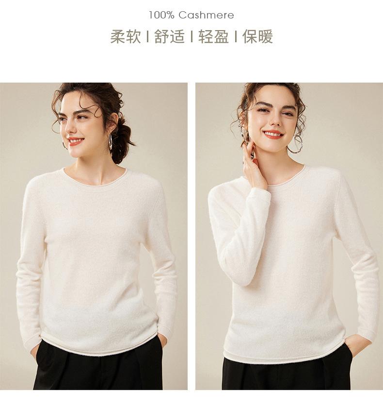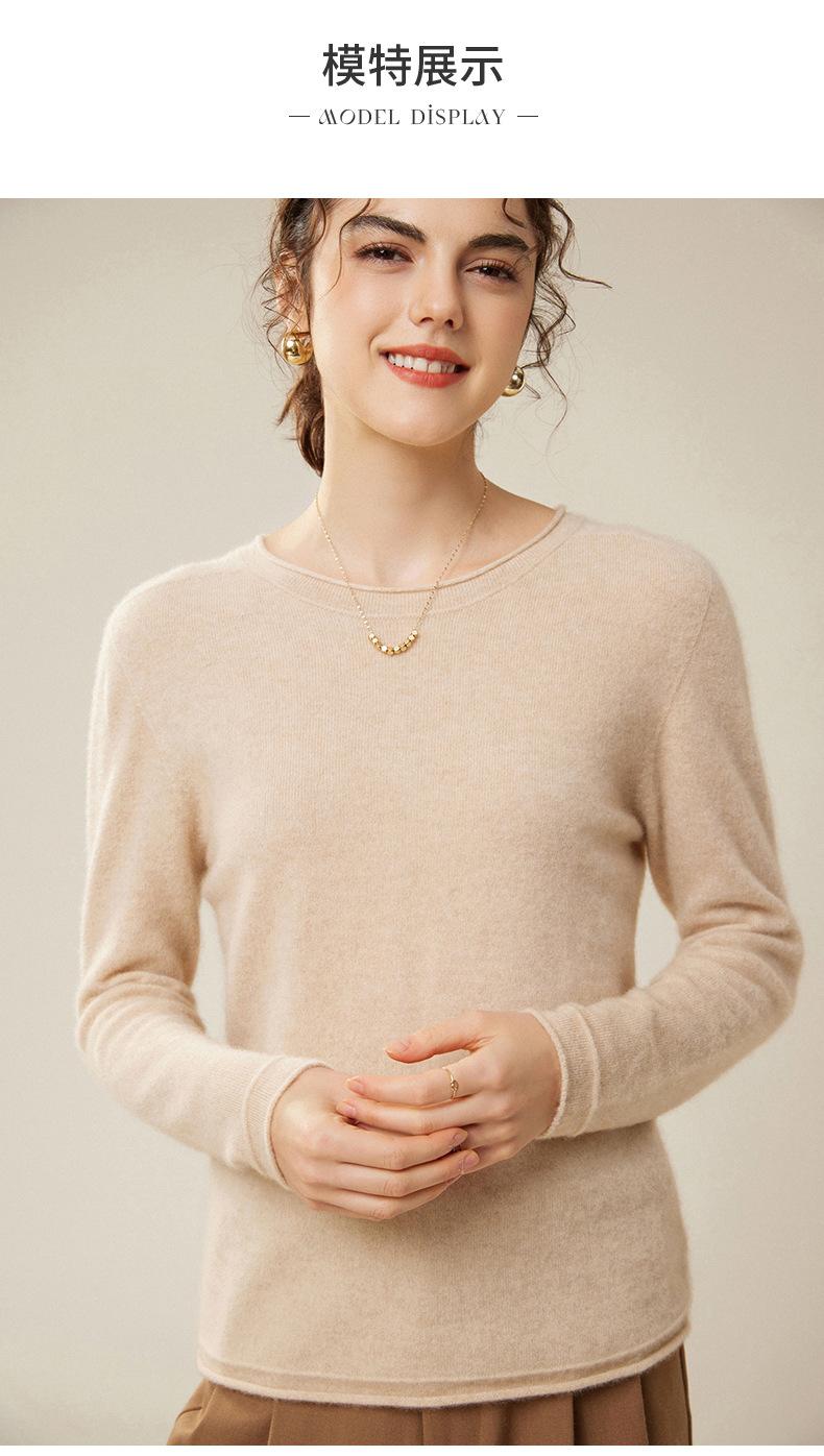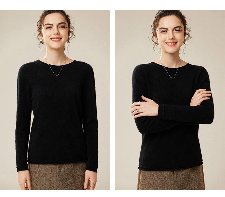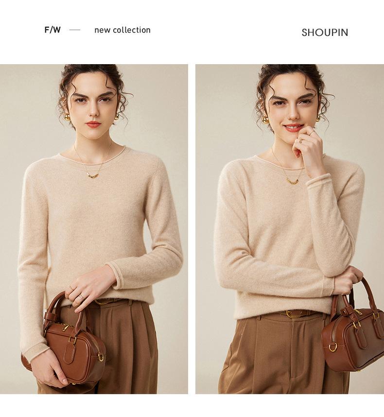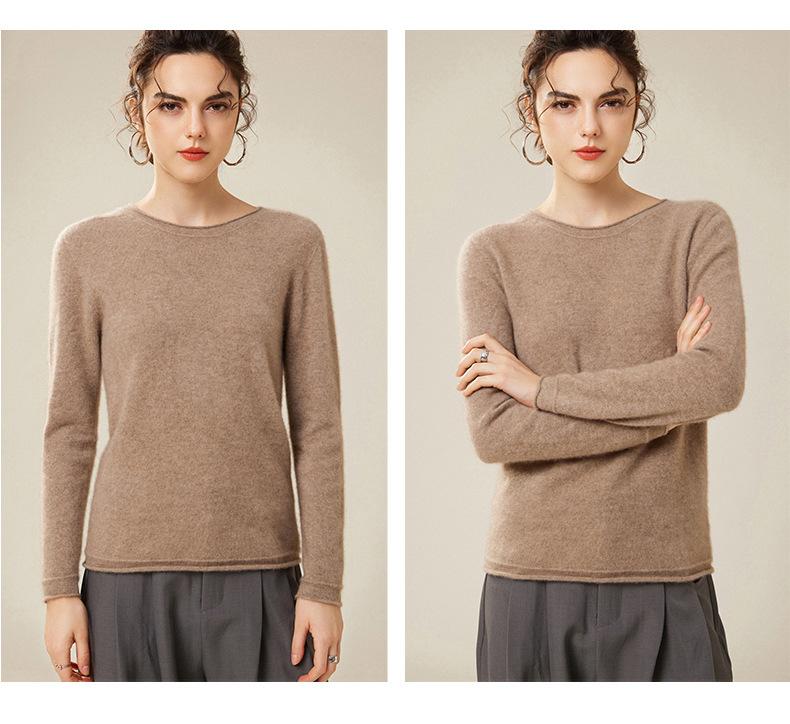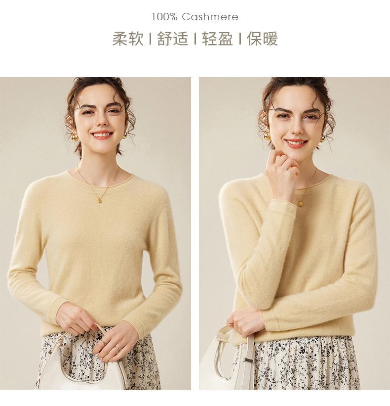 24 Nuevo Suéter de Cachemira 100 Ligero de Otoño e Invierno para Mujer Cuello Redondo Manga Larga Rizado Slim Ajustado Tejido Suéter Base