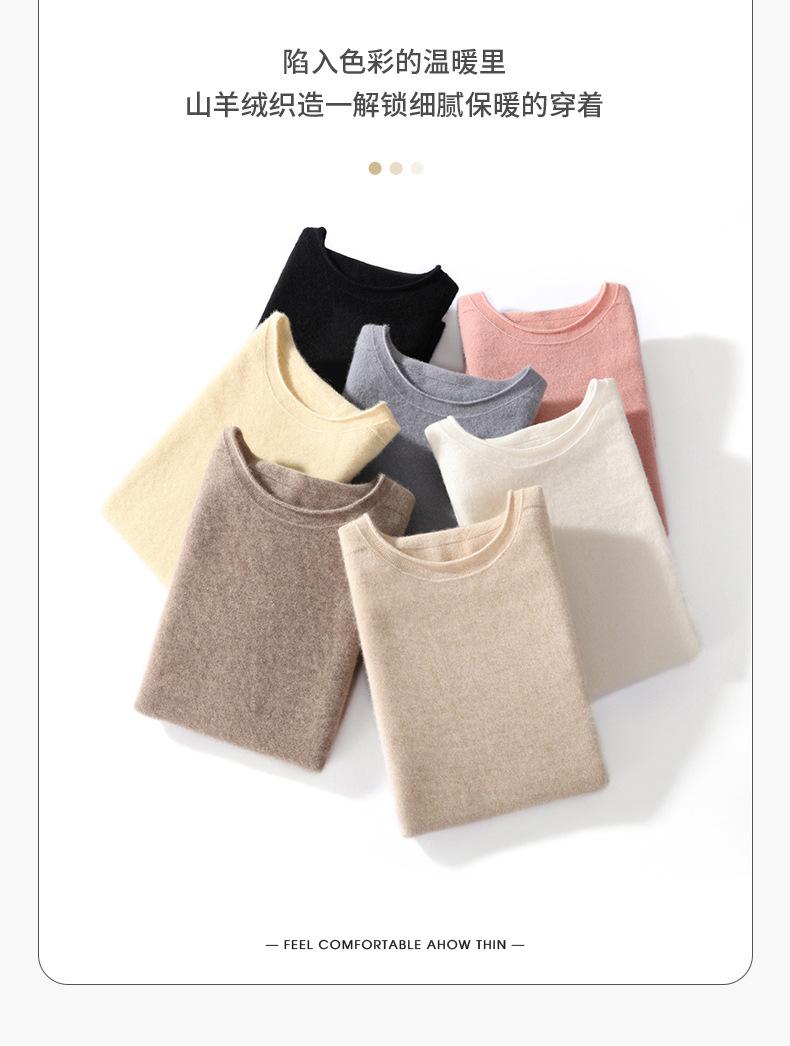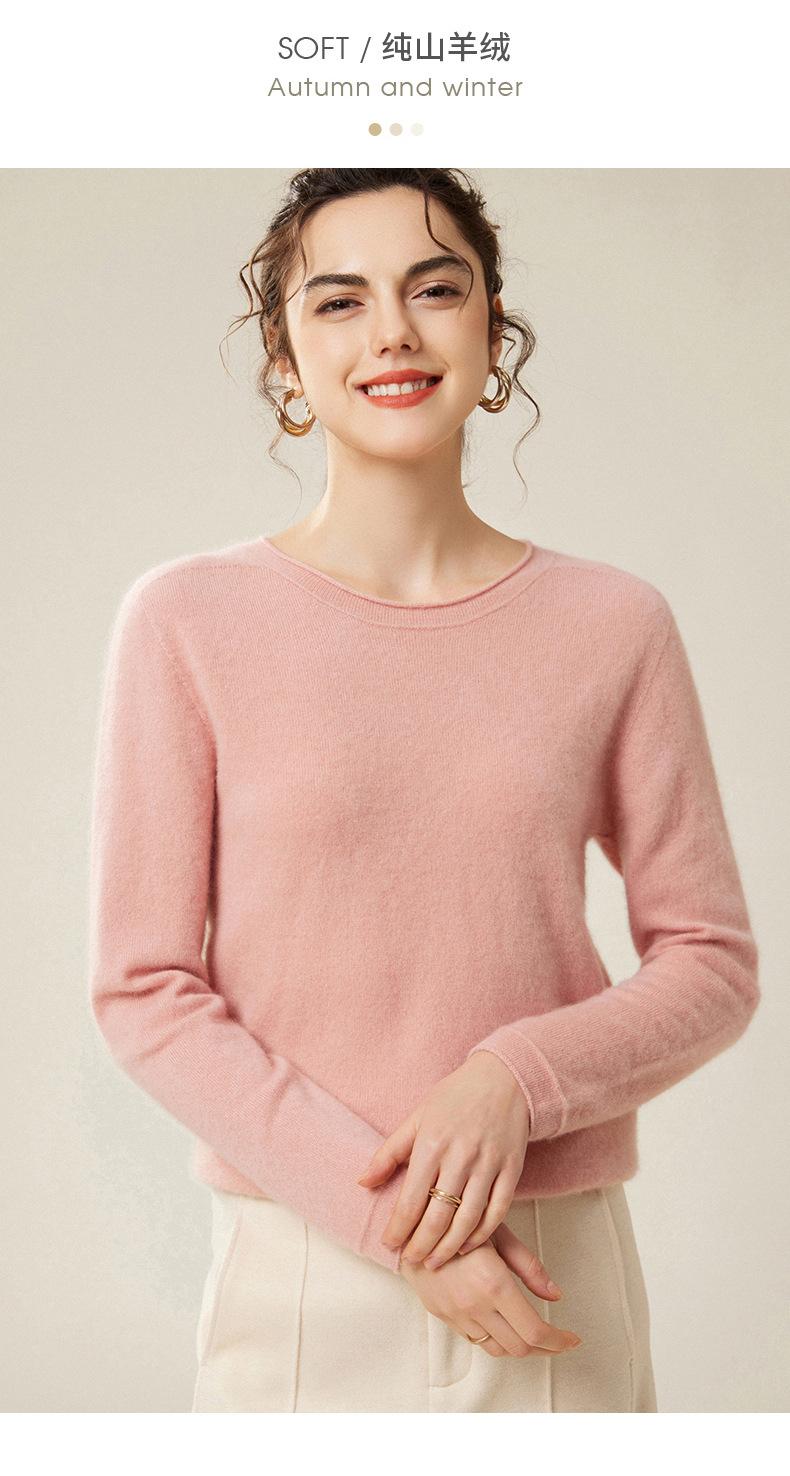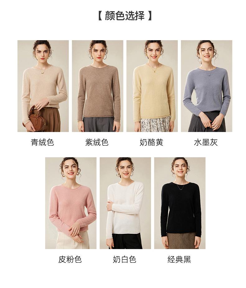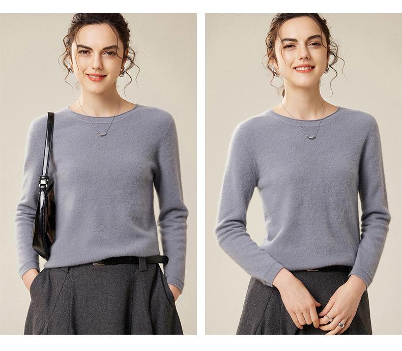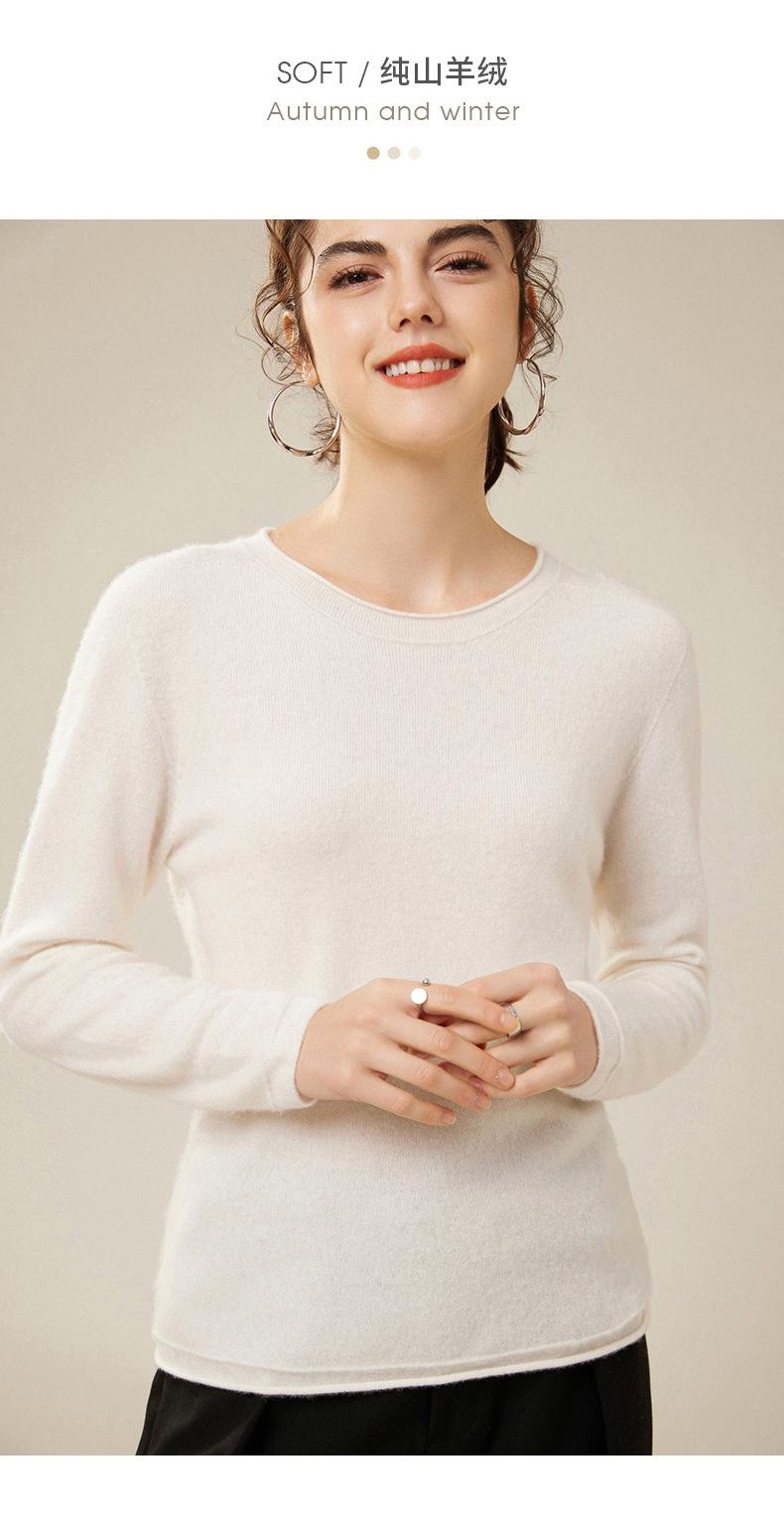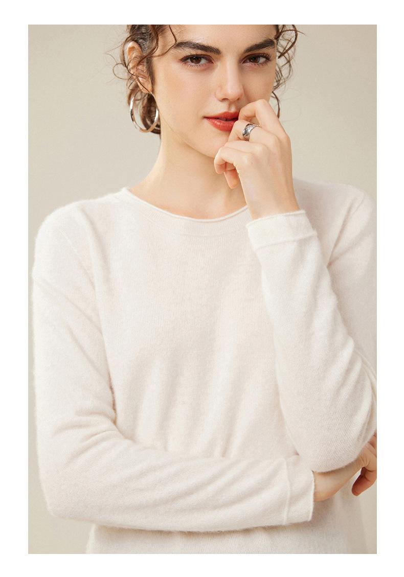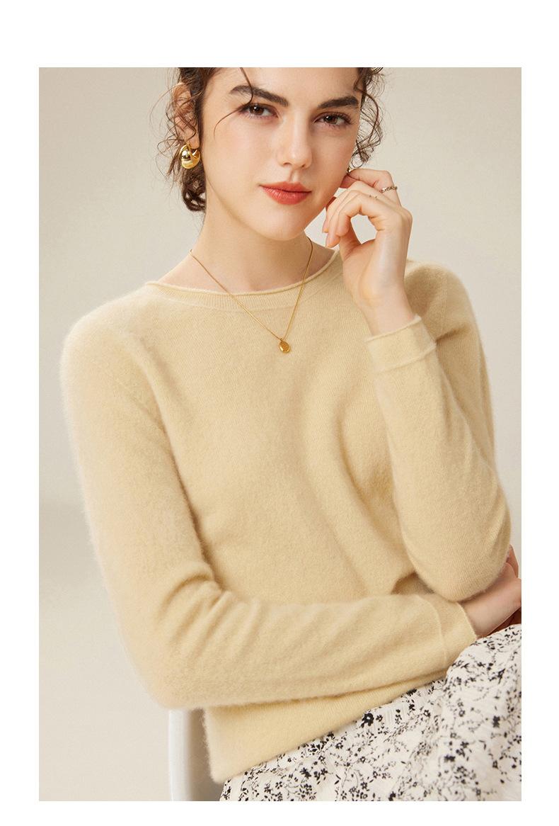 24 Nuevo Suéter de Cachemira 100 Ligero de Otoño e Invierno para Mujer Cuello Redondo Manga Larga Rizado Slim Ajustado Tejido Suéter Base