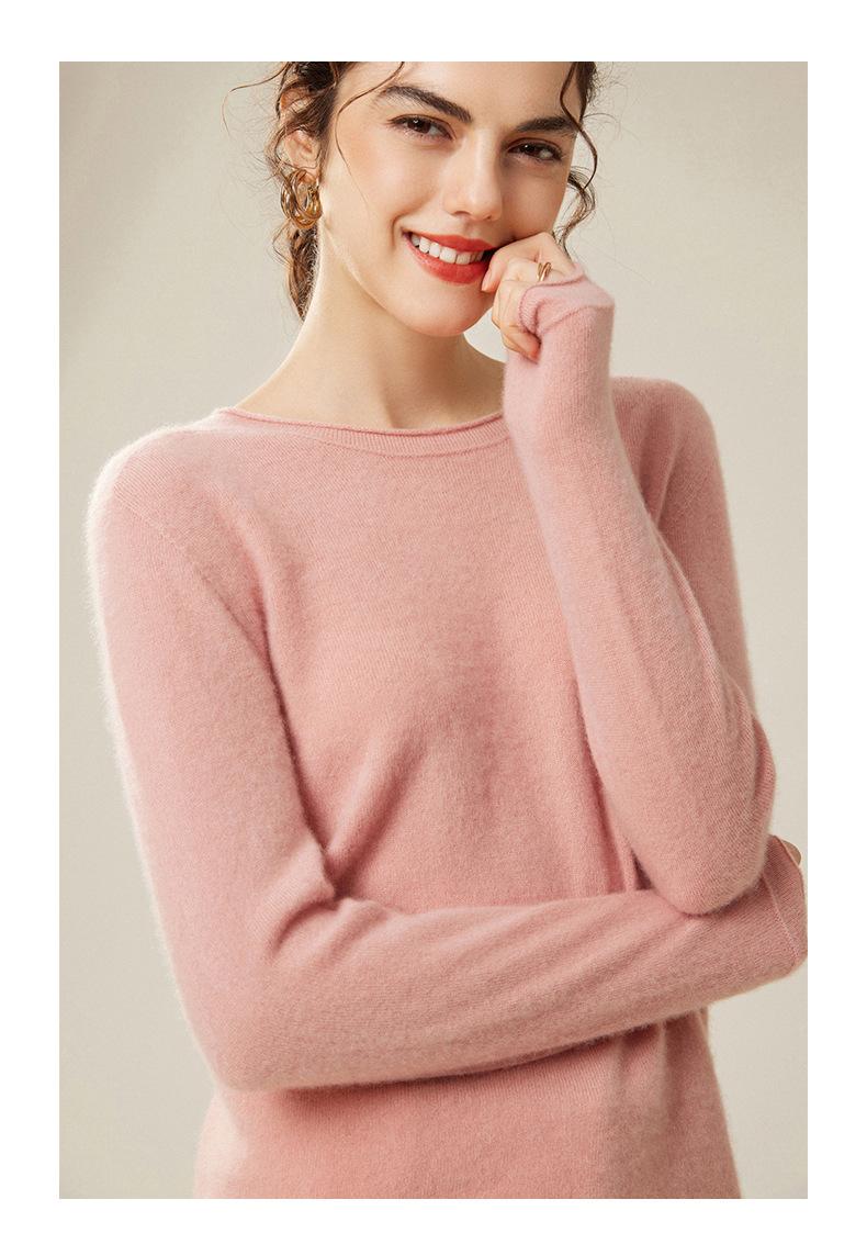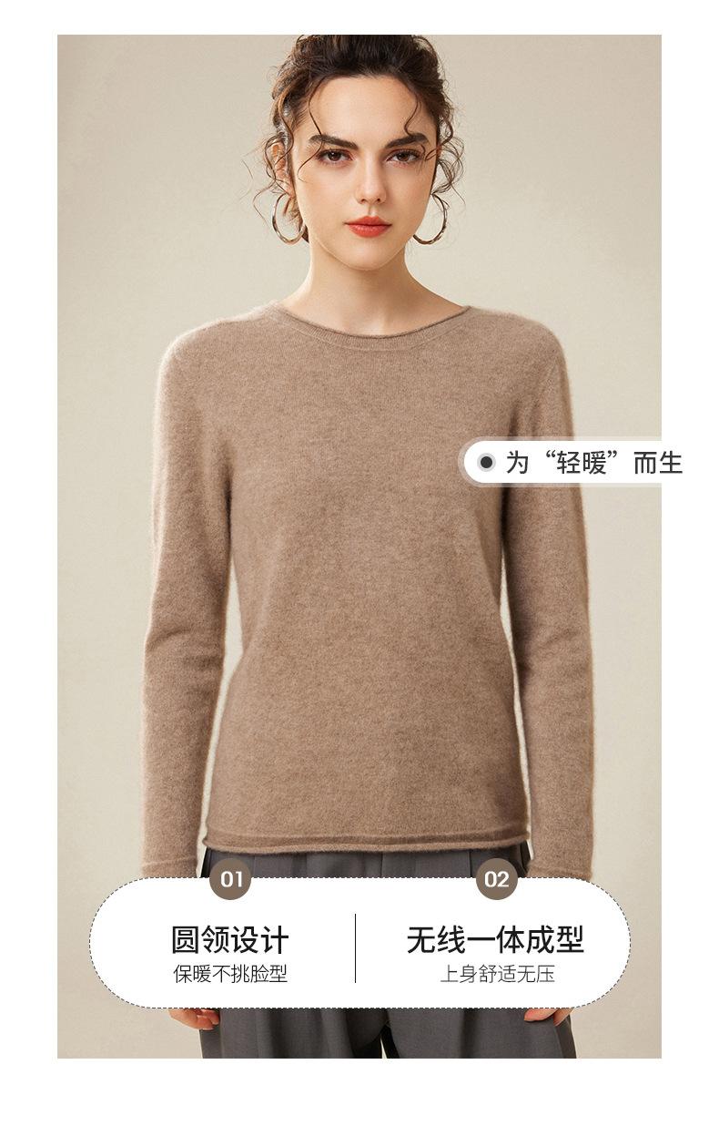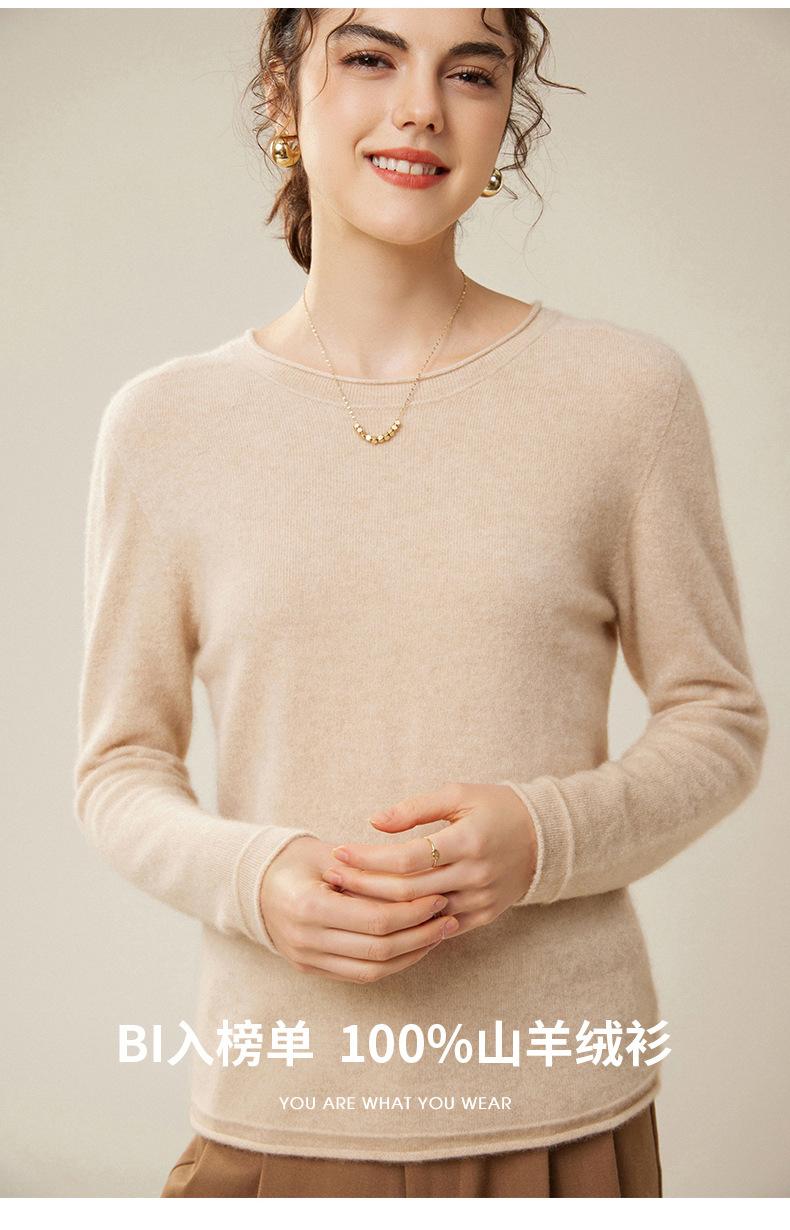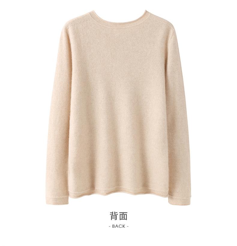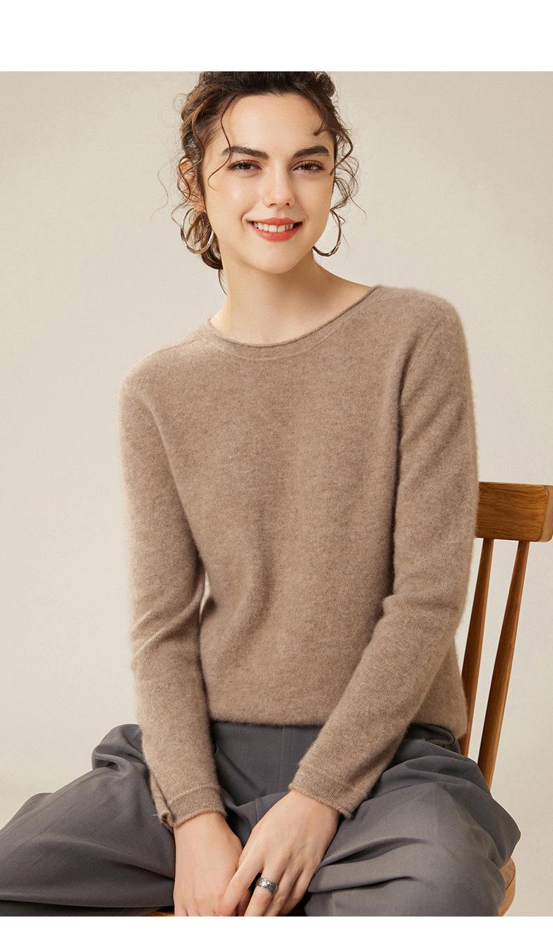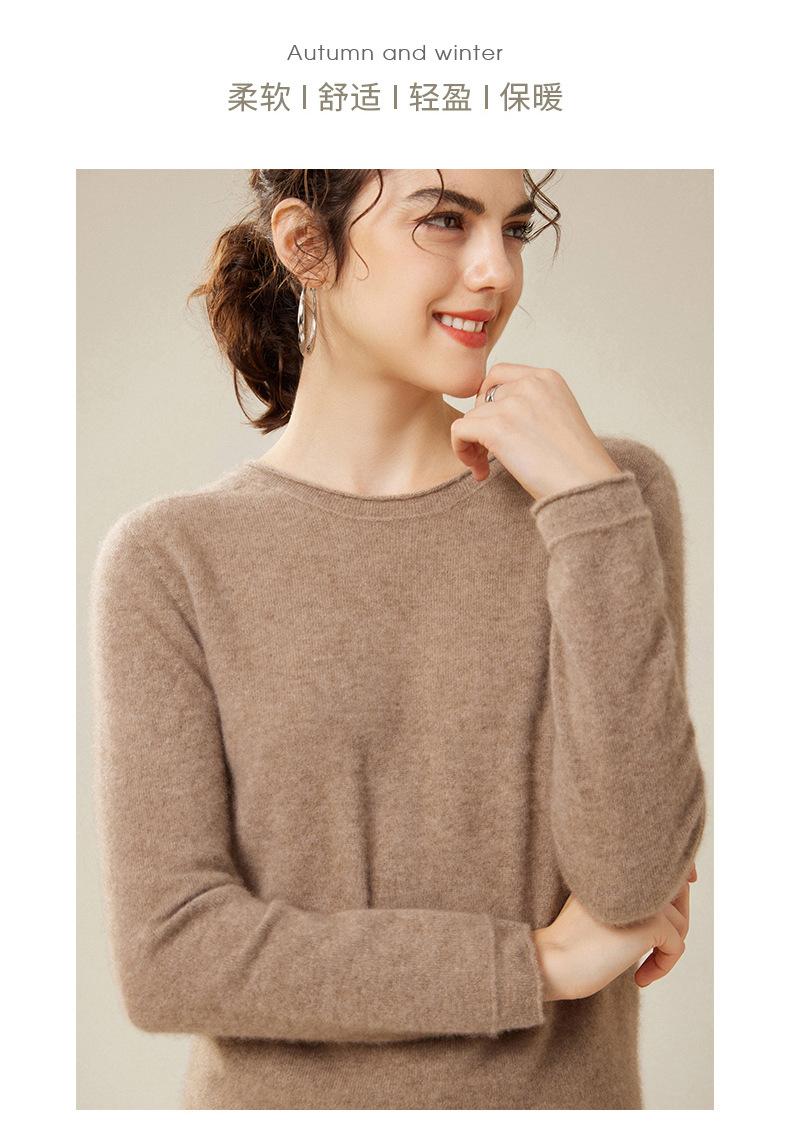 24 Nuevo Suéter de Cachemira 100 Ligero de Otoño e Invierno para Mujer Cuello Redondo Manga Larga Rizado Slim Ajustado Tejido Suéter Base