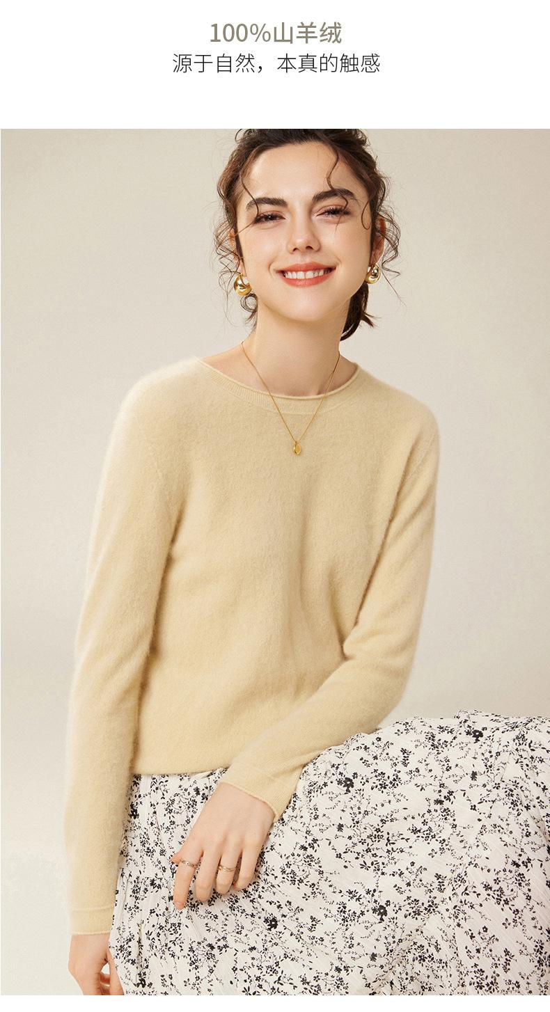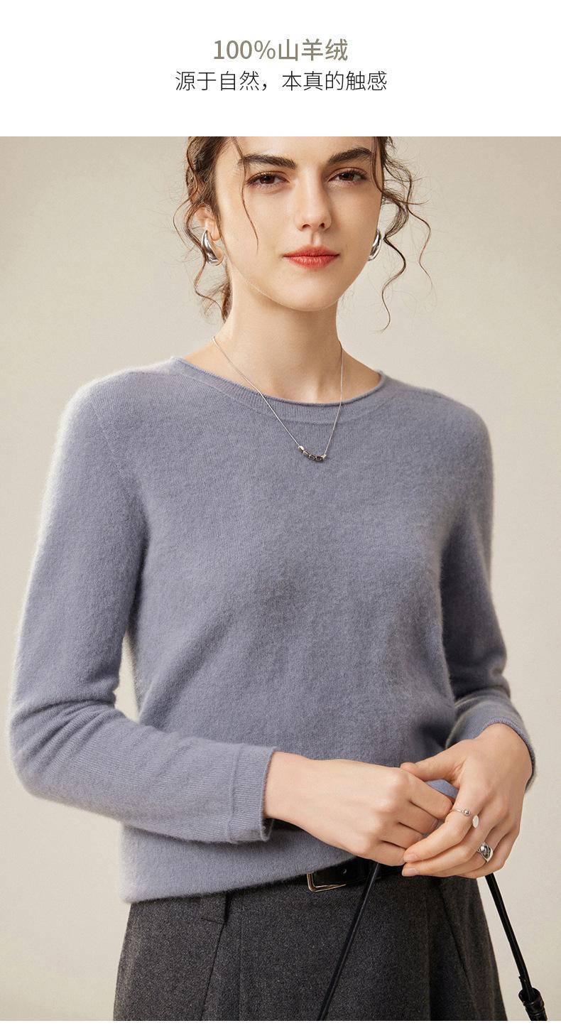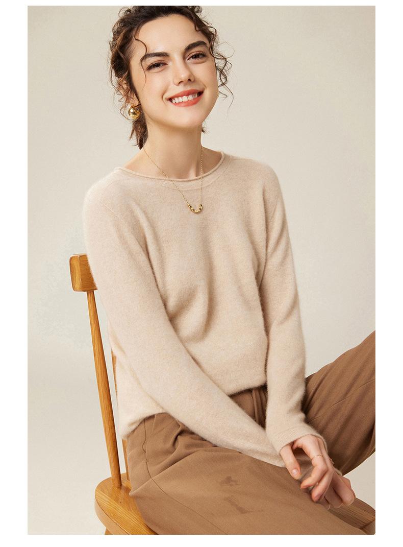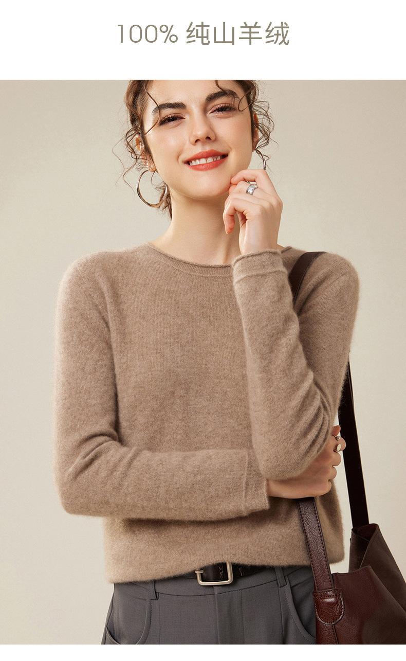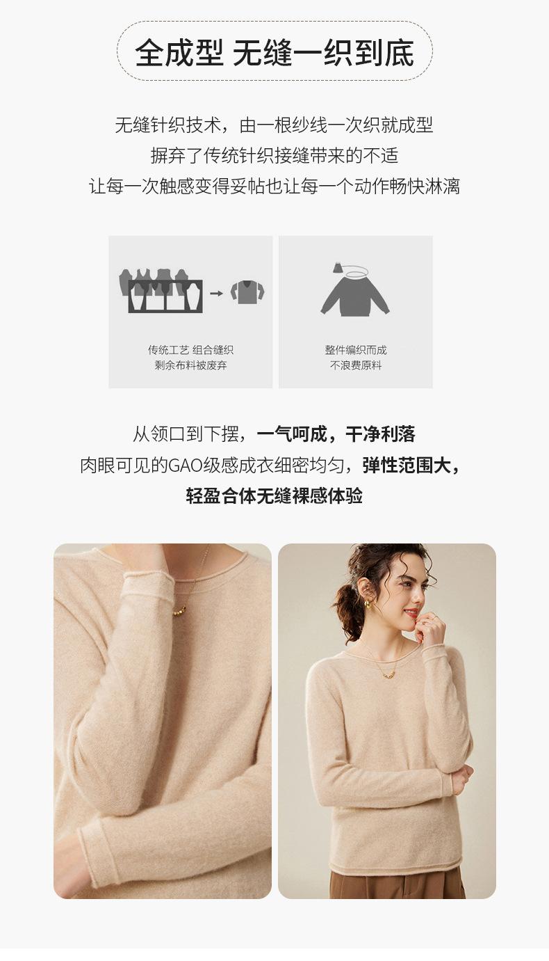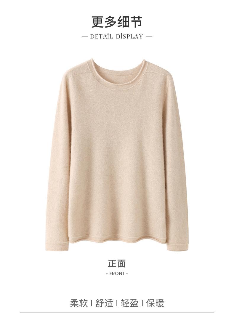 24 Nuevo Suéter de Cachemira 100 Ligero de Otoño e Invierno para Mujer Cuello Redondo Manga Larga Rizado Slim Ajustado Tejido Suéter Base