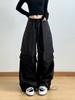Pantalones Negros Estilo Americano Bolsillo Grande Pierna Ancha para Mujer Primavera y Otoño Nuevo 2024 Cordón Ajustable Sueltos Adelgazantes Casual Trabajo Pantalones Largos