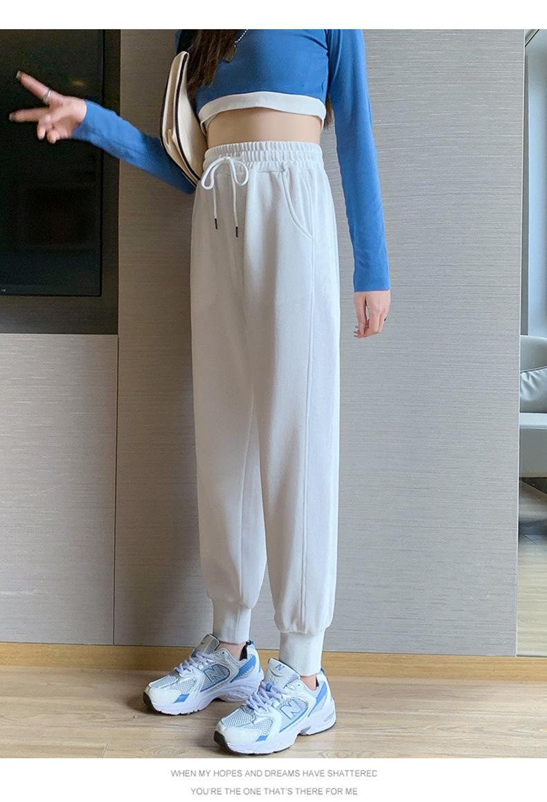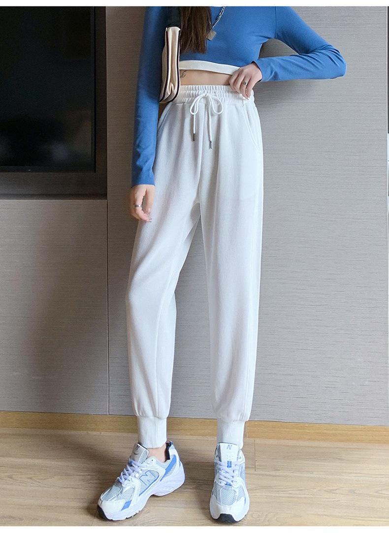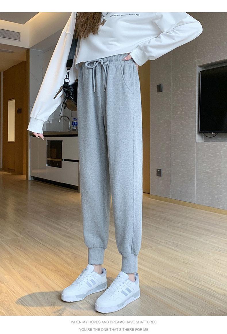 Pantalones deportivos blancos para mujer, nuevos pantalones de otoño e invierno para primavera, pantalones pequeños, holgados e informales, pantalones deportivos grises para primavera y otoño.