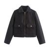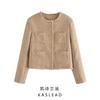 2024 principios de otoño nuevo estilo europeo y americano para mujer color sólido moda casual temperamento de alta gama solapa chaqueta corta abrigo
