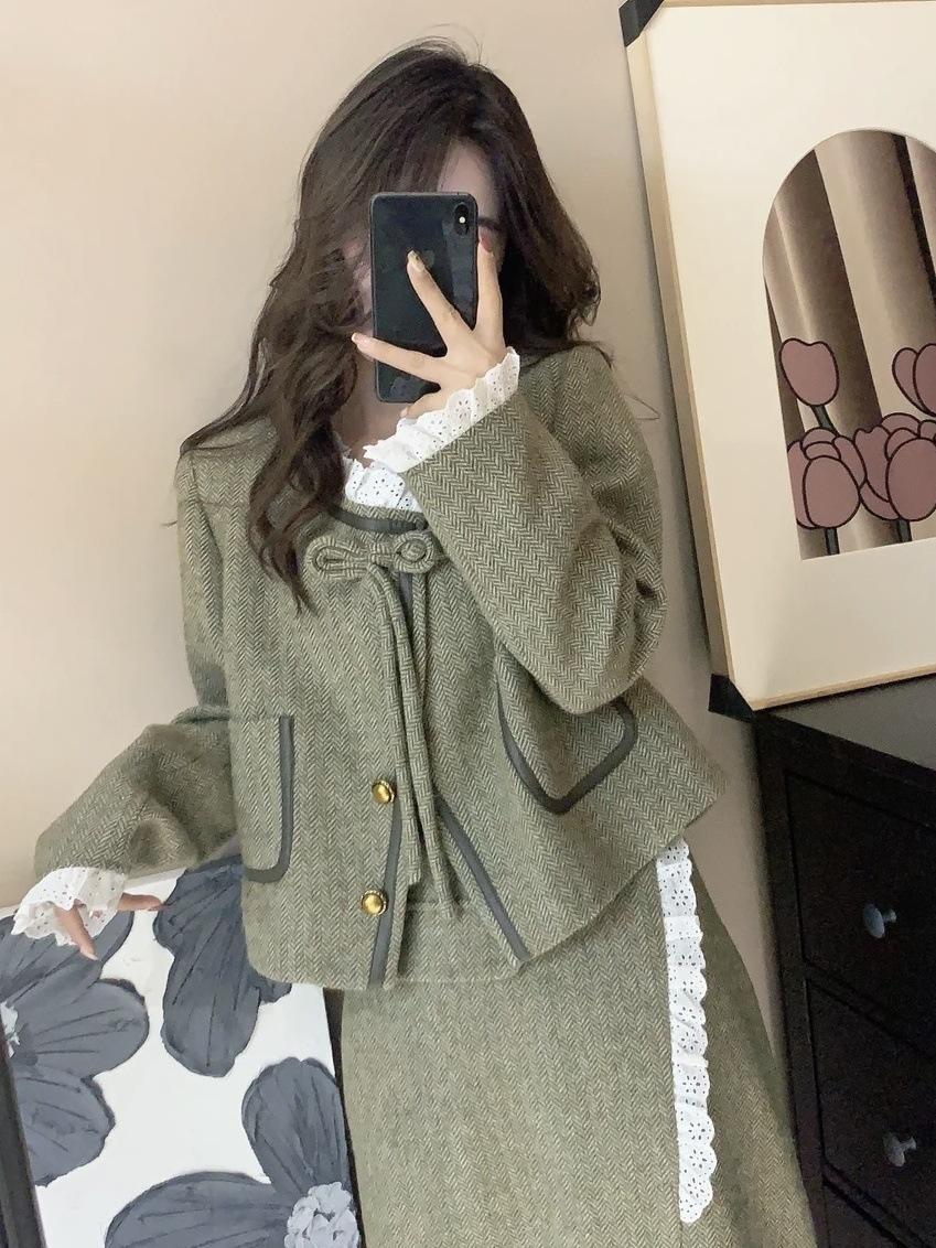 Green suit [regular lining]], Green single regular coat], Green [single skirt]], Green suit [with cotton linin...