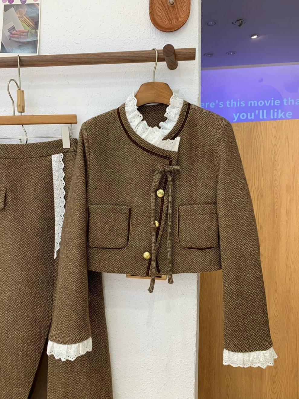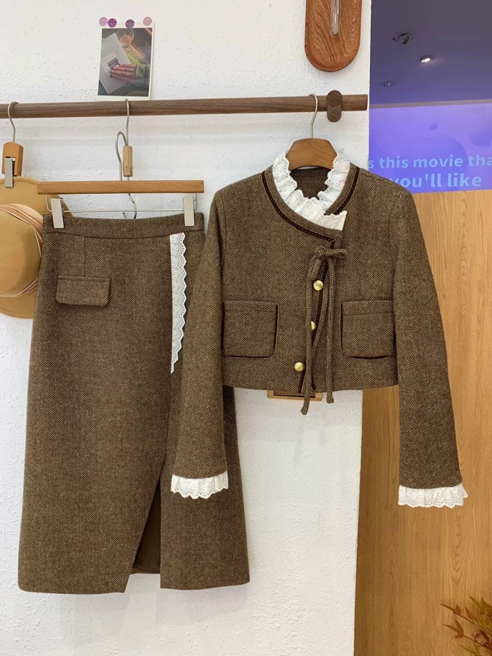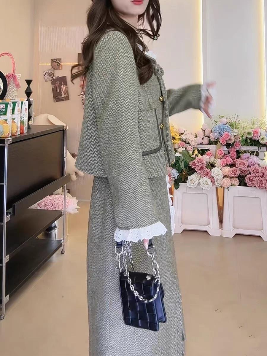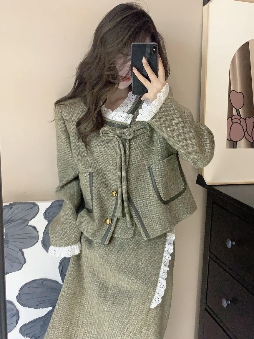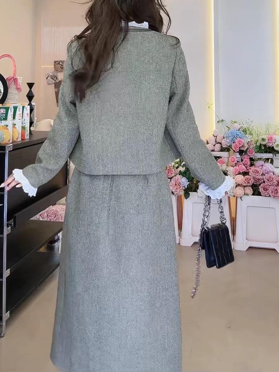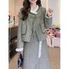 Traje estilo Chanel de estilo francés para mujer con forro de plumón 2024 Nuevo estilo Elegante Combinable Retro Top Falda Conjunto de dos piezas