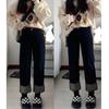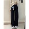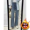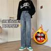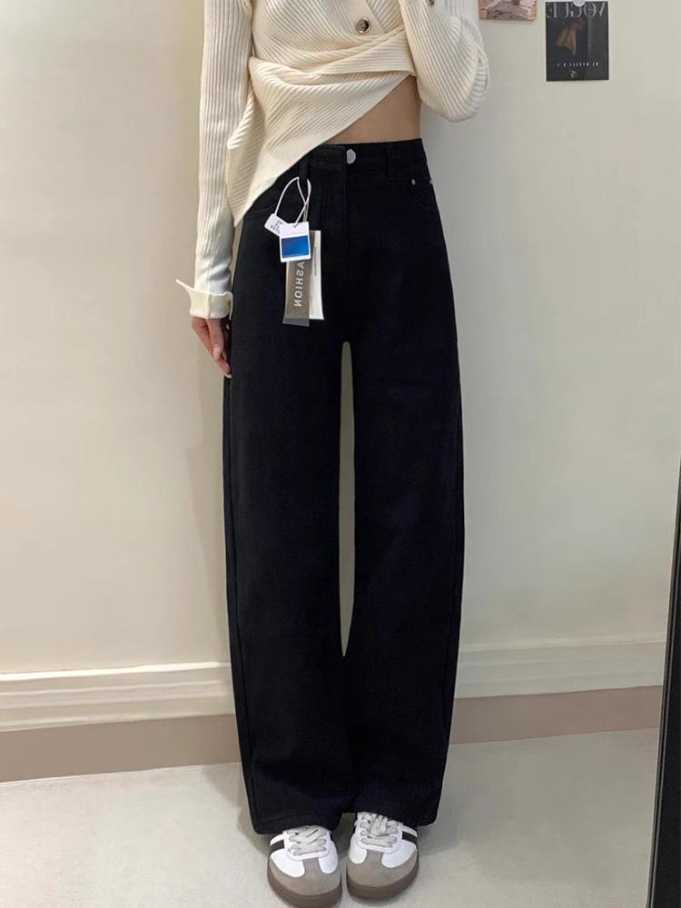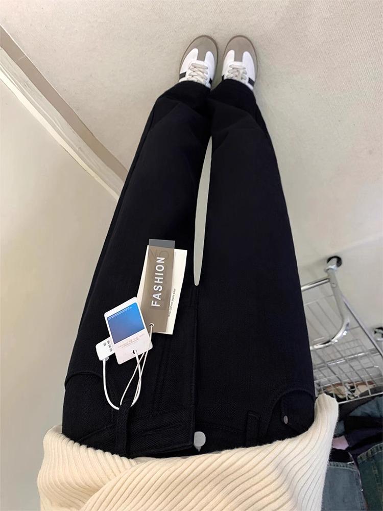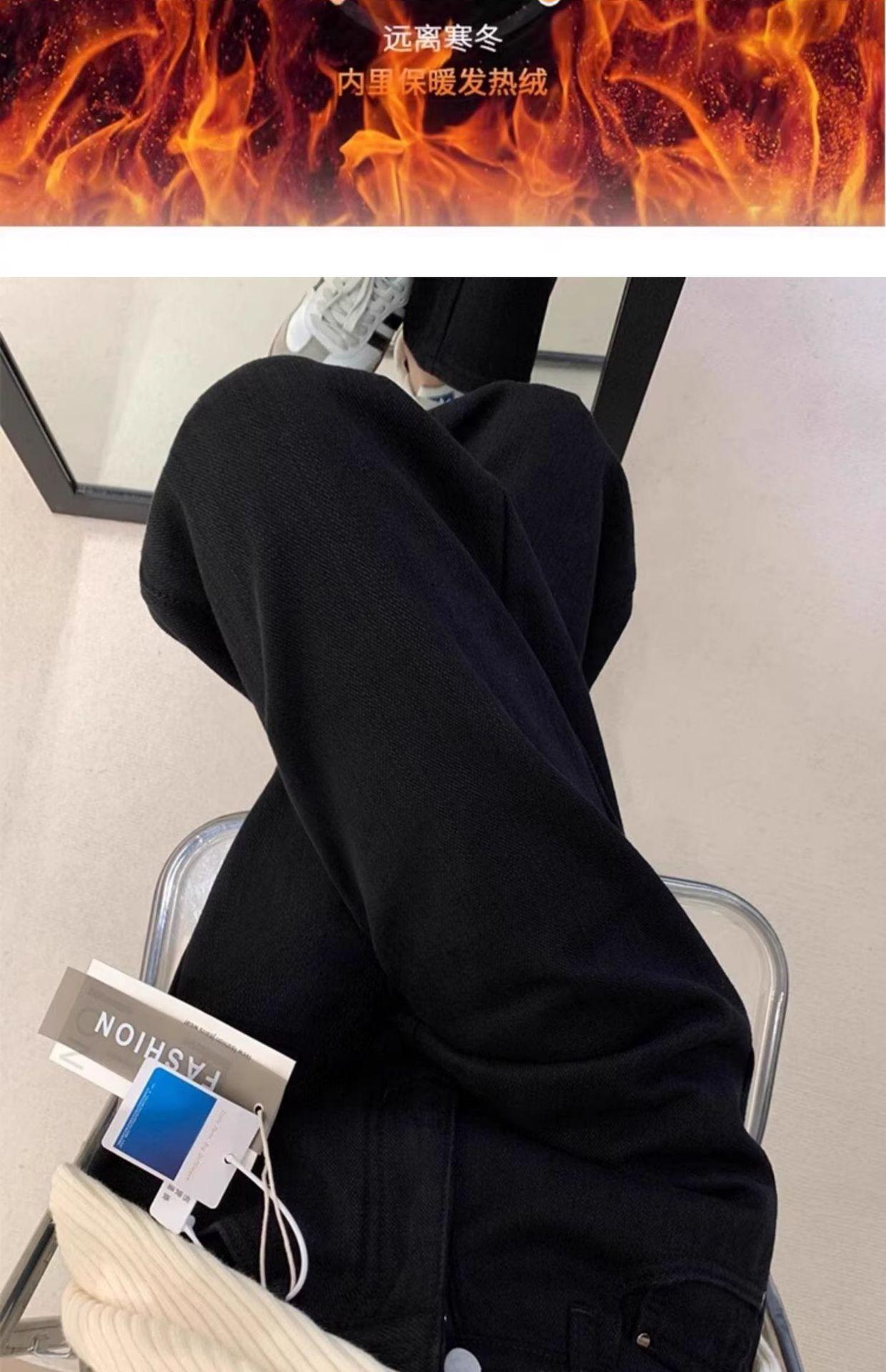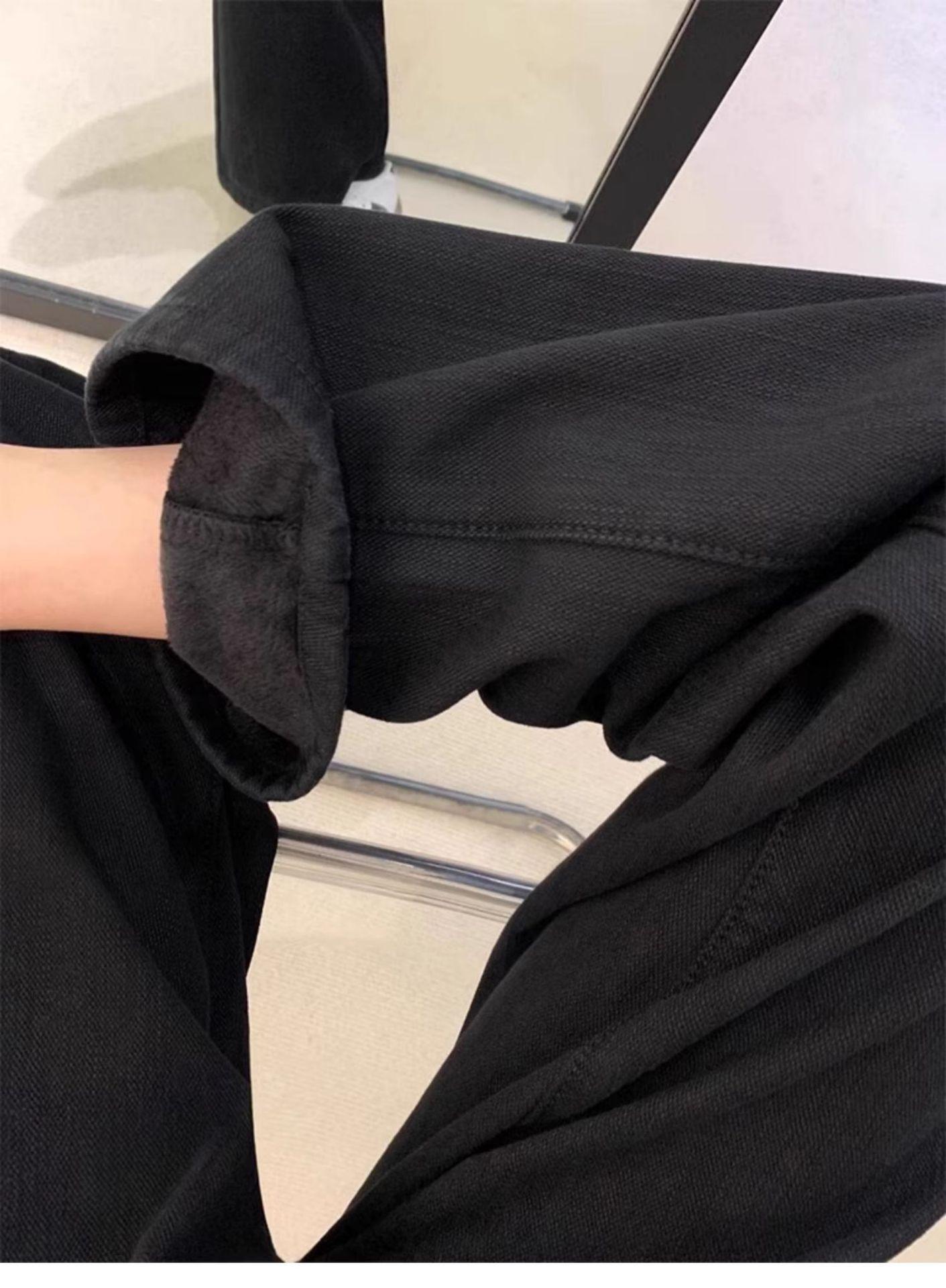 Jeans Rectos Gruesos de Terciopelo Negro para Mujer Invierno Nuevo Talla Grande Gordo mm Cintura Alta Cubriendo la Entrepierna Look Adelgazante Pantalones de Pierna Ancha