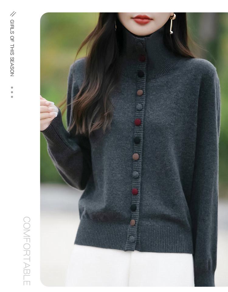 Cárdigan de Punto Grueso de Punto de Otoño e Invierno Transfronterizo 2025 con Cuello Alto para Mujer, Estilo Coreano Holgado, Ropa de Punto de Manga Larga para Mujer, Ropa Exterior para Mujer