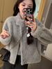 Abrigo corto de terciopelo de grano de una pieza de piel con cuello mao estilo coreano para mujer, nuevo invierno 2024, top grueso suelto esponjoso