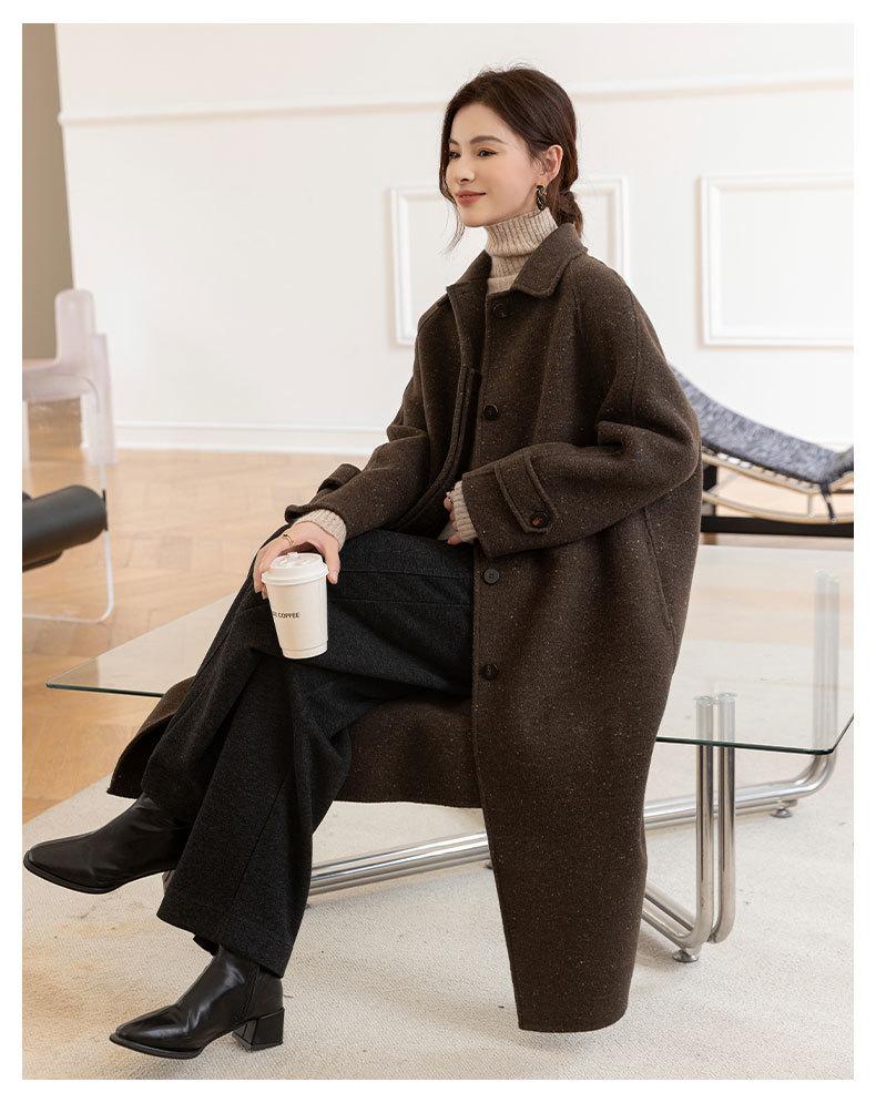 Abrigo Endi Color Dot Lana Cachemira de Alta Gama Nuevo Otoño/Invierno 2025 Estilo Coreano Elegante Solapa Chaqueta de Lana para Mujer