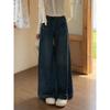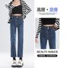 Pantalones vaqueros retro azules sencillos para mujer, nuevos, con cintura alta elástica y pierna ancha, para otoño e invierno, 2024