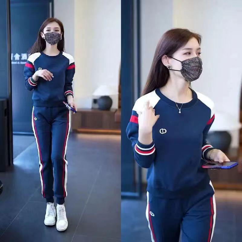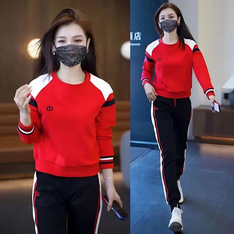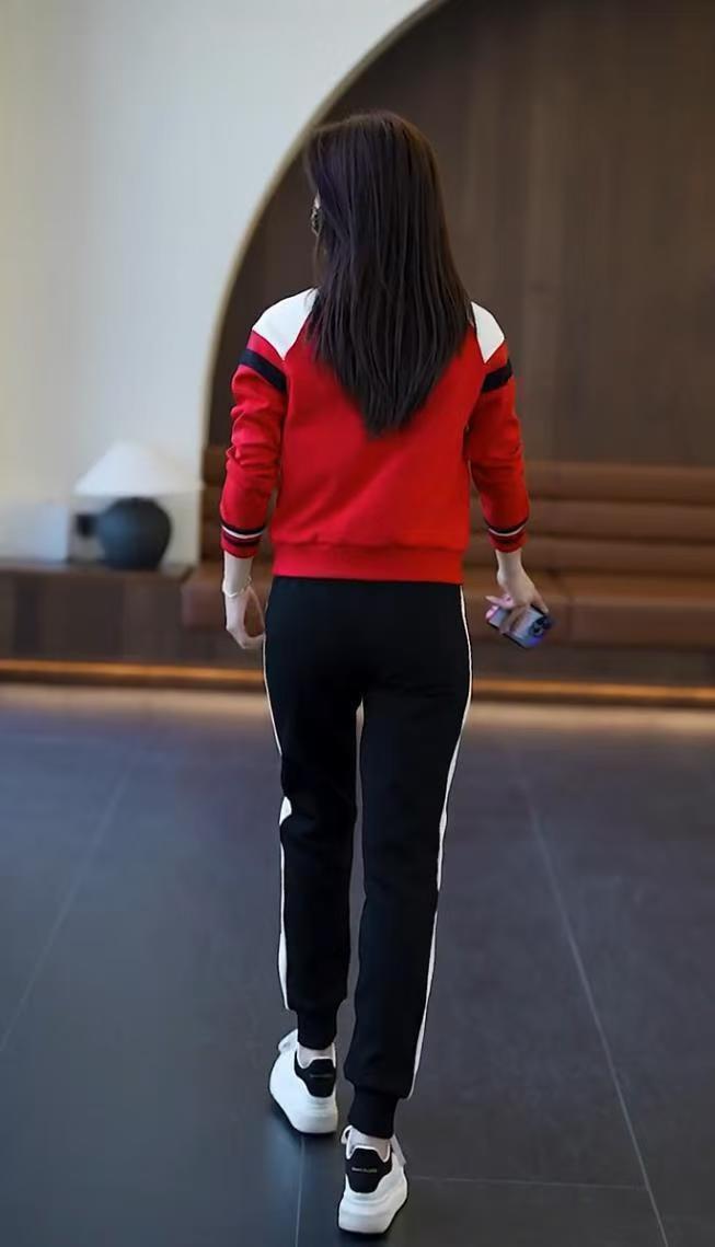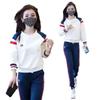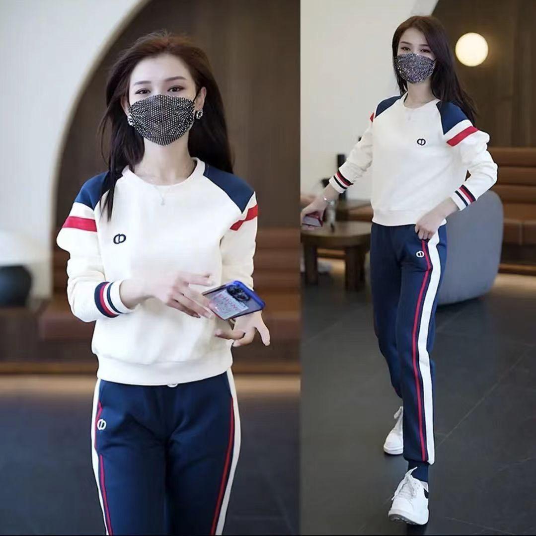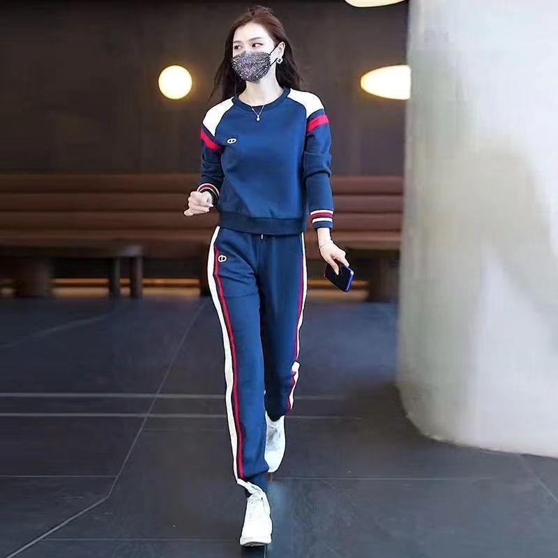 Traje deportivo de ocio para mujer, otoño e invierno 2025, elegante, a la moda, con estilo, antiedad, manga larga, pantalones anchos, conjunto de dos piezas