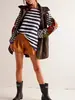 Sudadera de Retazos Rayados Bloque de Color Estilo Europeo y Americano para Mujer, Manga Larga, con Bordado Floral de Toalla 3D, Camiseta Holgada y Casual