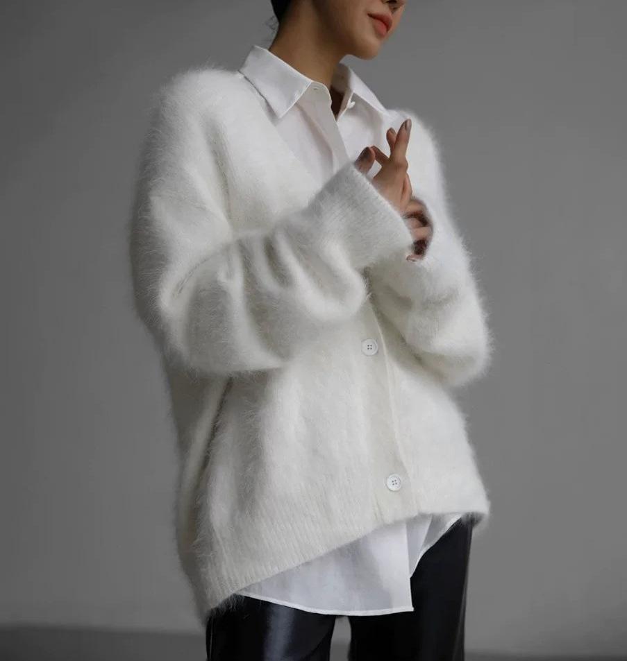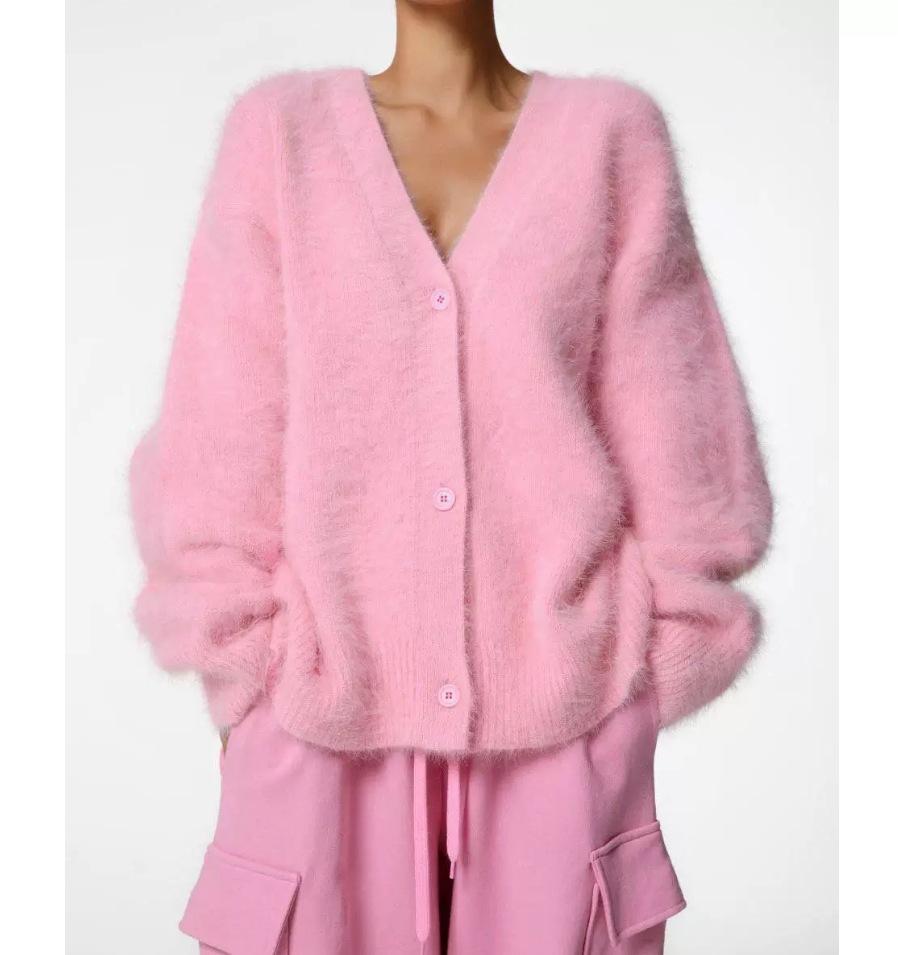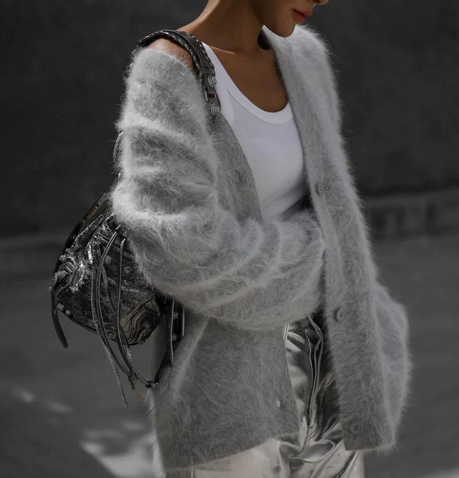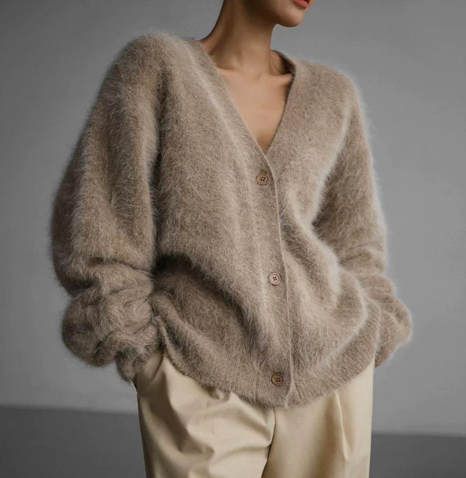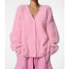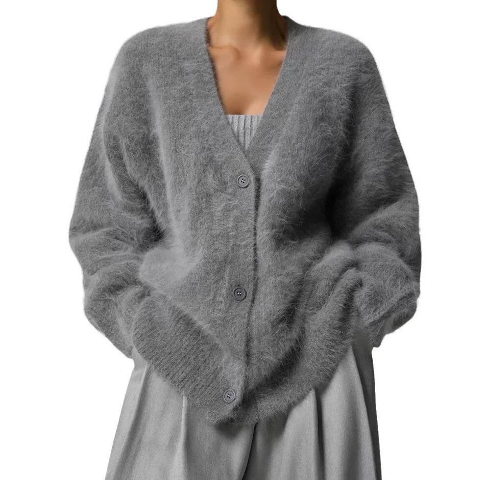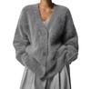 Comercio exterior transfronterizo Europa y Estados Unidos en otoño e invierno, holgado, de manga larga, con cuello en V, de imitación de lana de visón, cárdigan de punto, abrigo de suéter de color liso para mujer