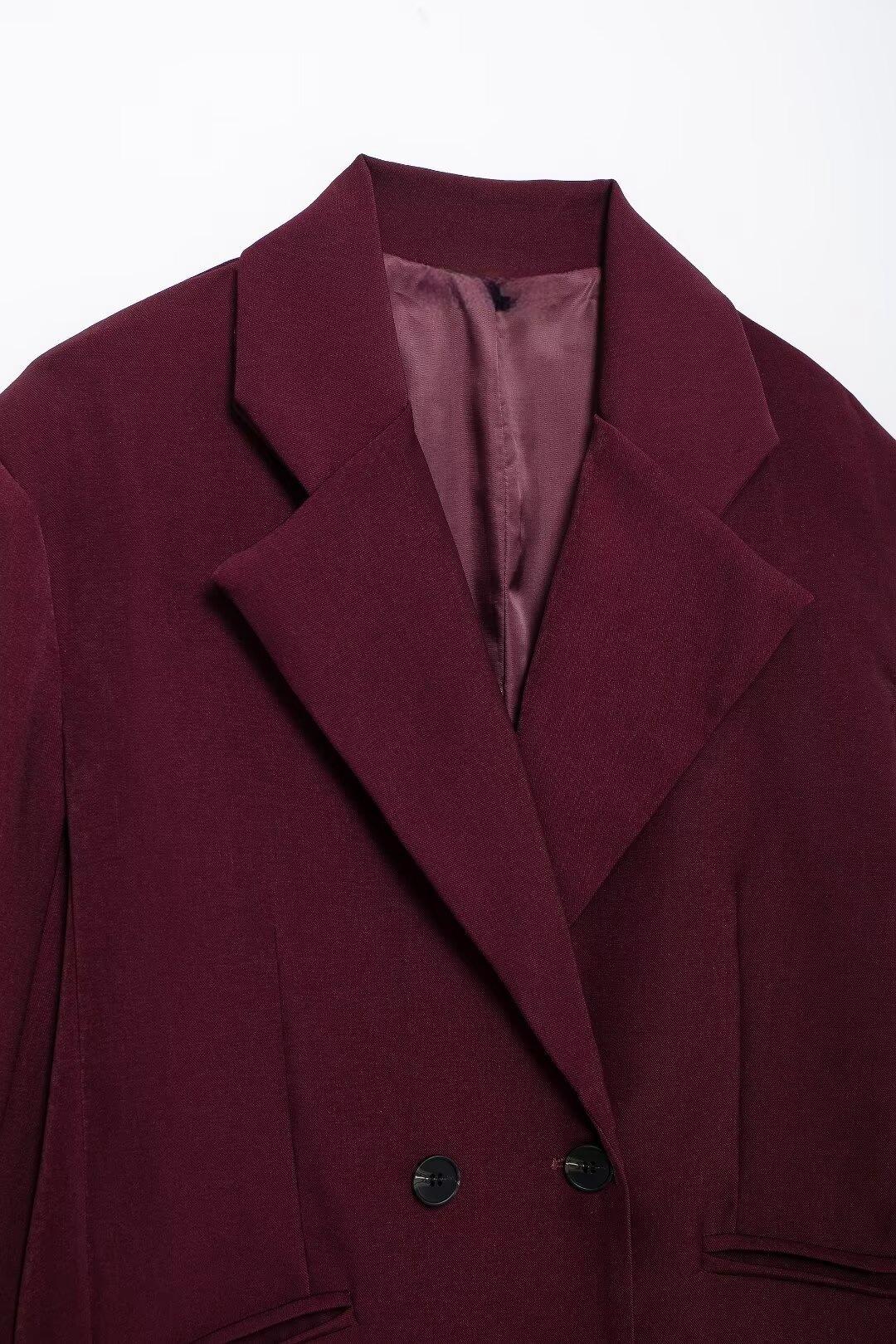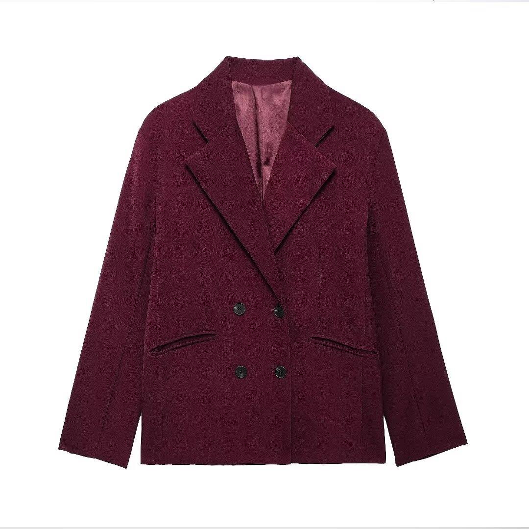 Abrigo de Traje Casual de Doble Botonadura de Manga Larga para Mujer Europeo y Americano Transfronterizo Otoño e Invierno 2024 Moda Urbana para Viajeros