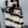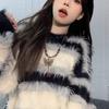 Suéter Rayado Retro Estilo Americano para Mujer Otoño e Invierno Nueva Llegada Ropa Exterior Pelo de Visón Mohair Interior Suéter Holgado