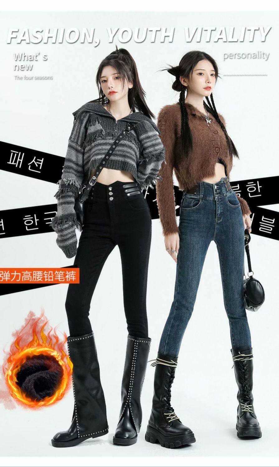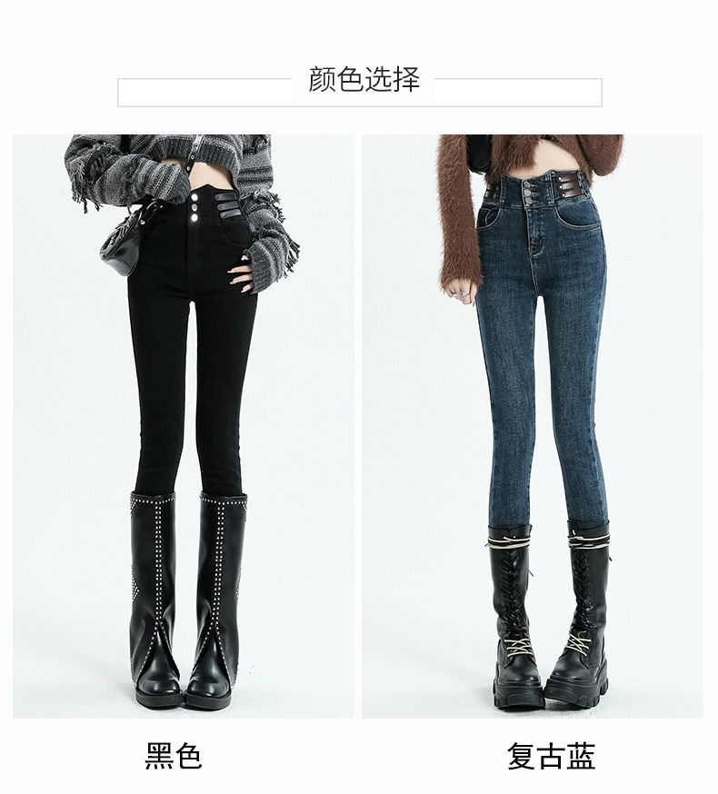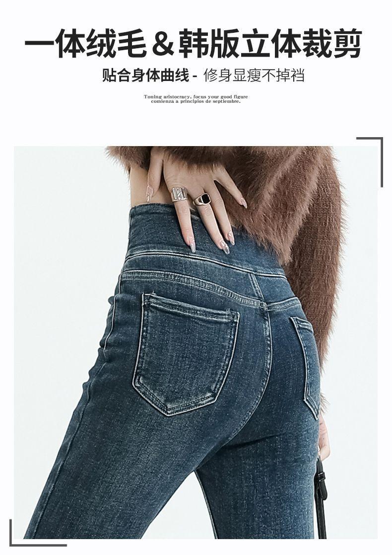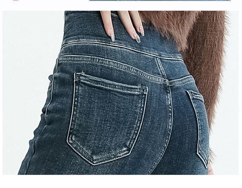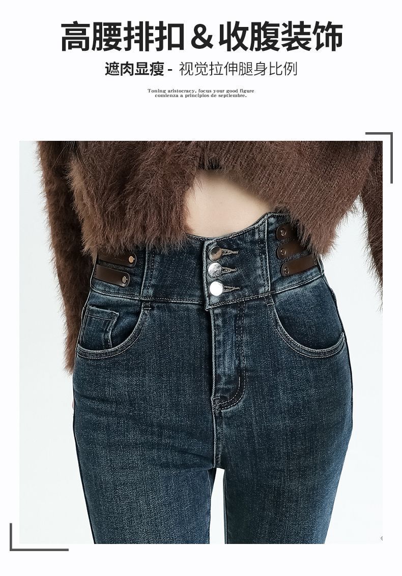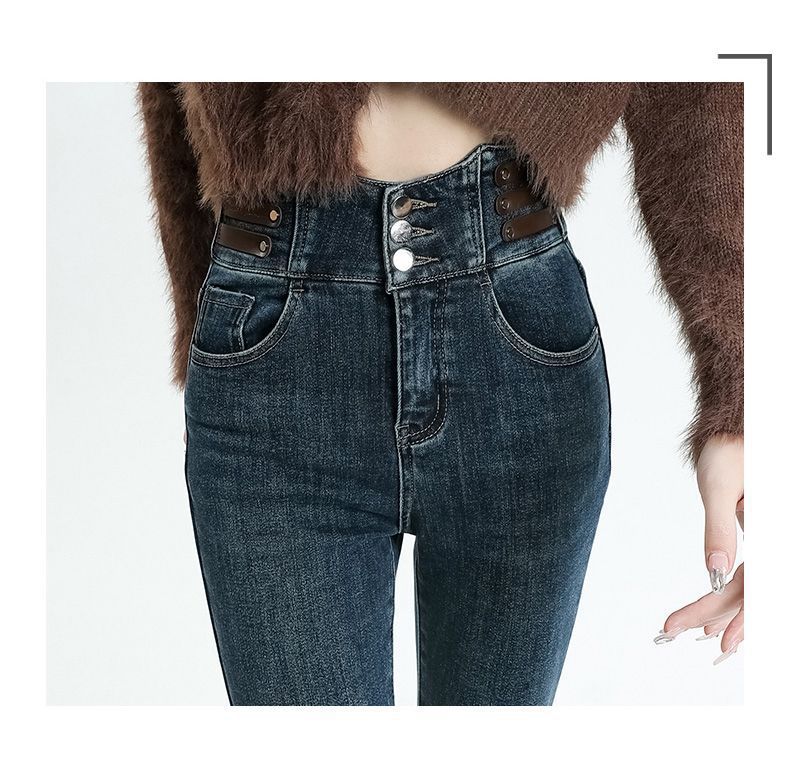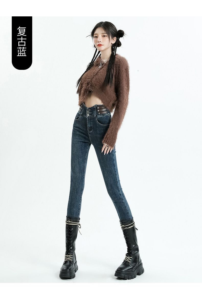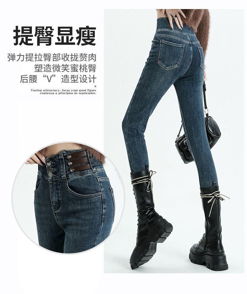 Vaqueros ajustados de cintura alta azules vintage para mujer, otoño e invierno 2024, nuevos pantalones pitillo adelgazantes con forro polar.