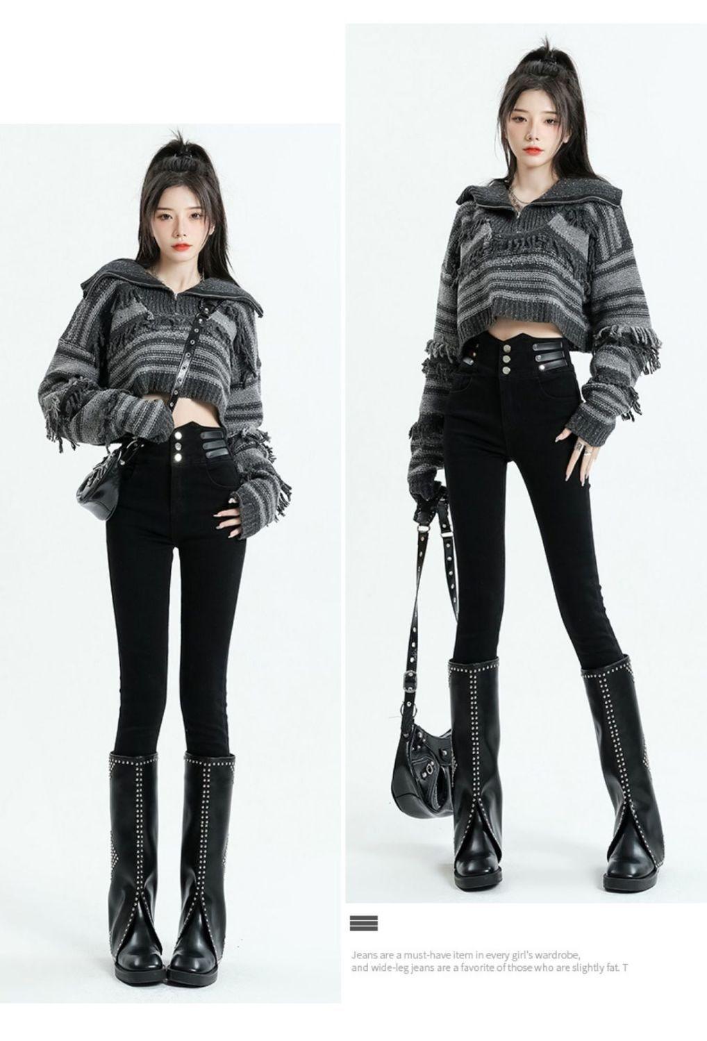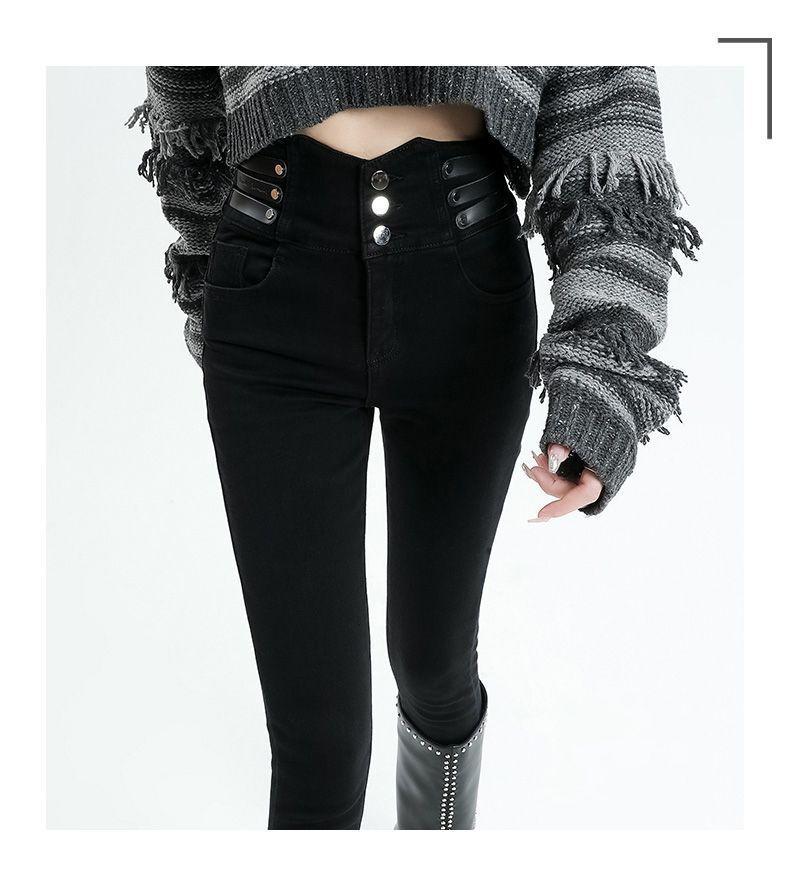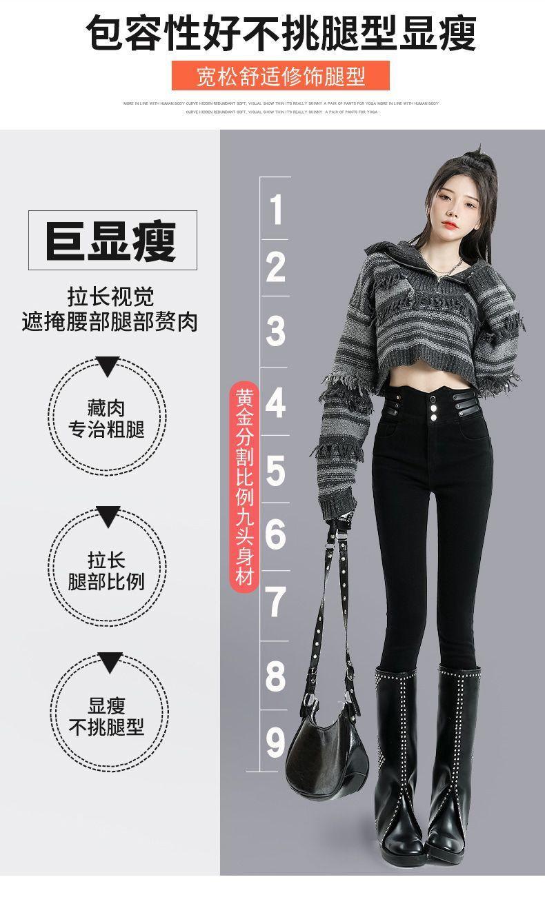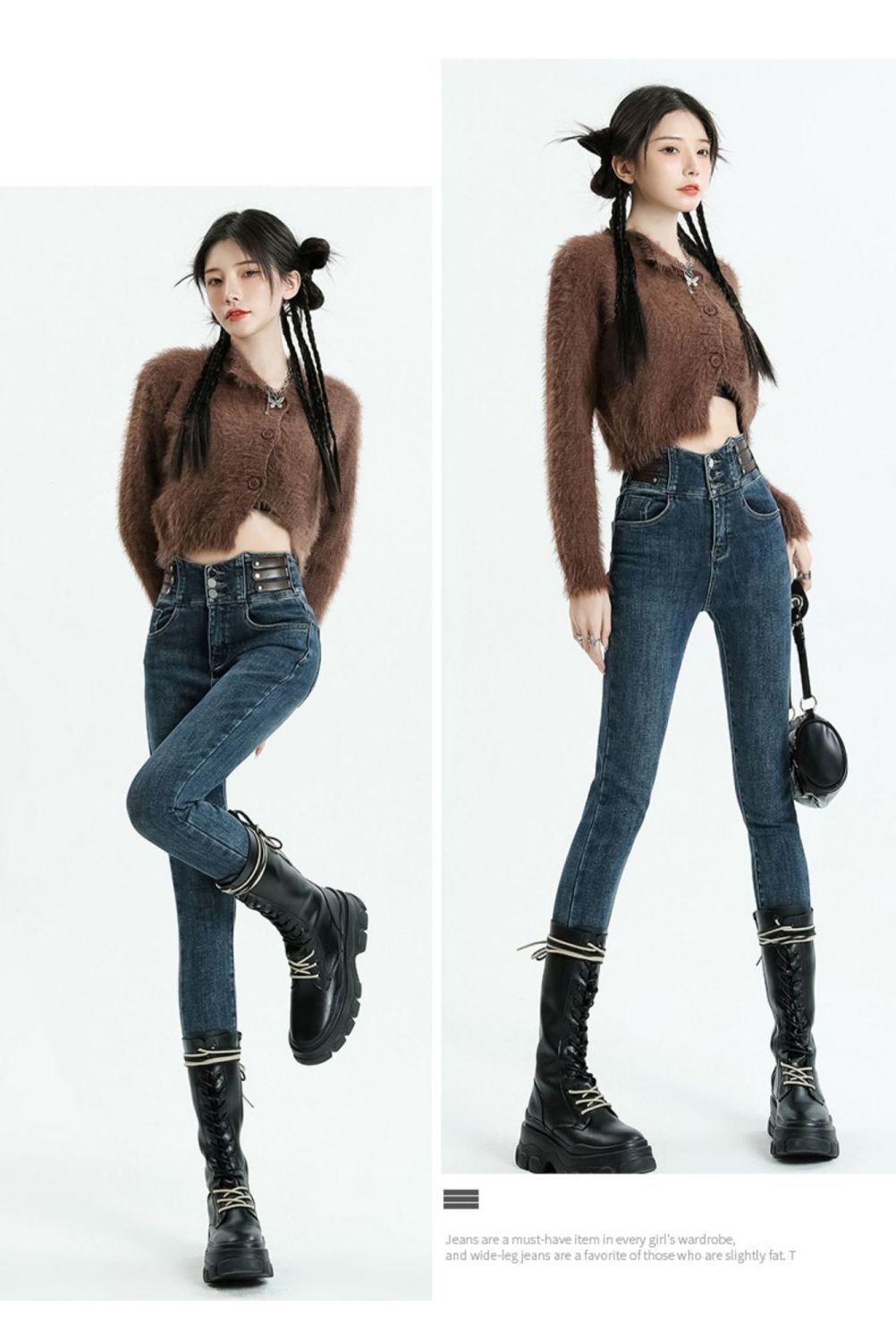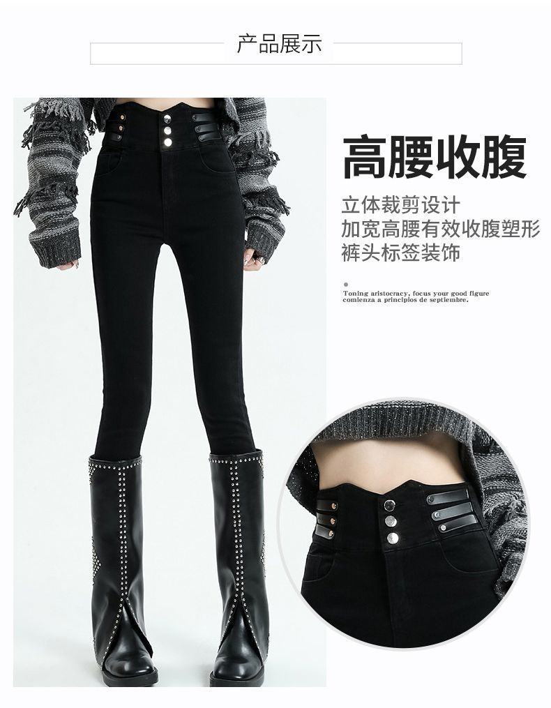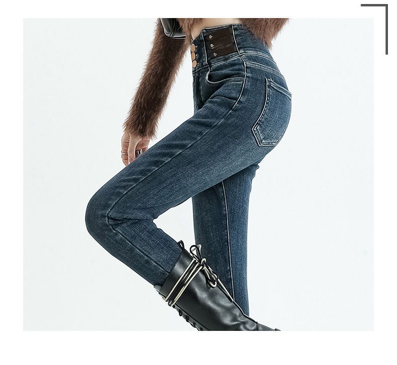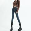 Vaqueros ajustados de cintura alta azules vintage para mujer, otoño e invierno 2024, nuevos pantalones pitillo adelgazantes con forro polar.