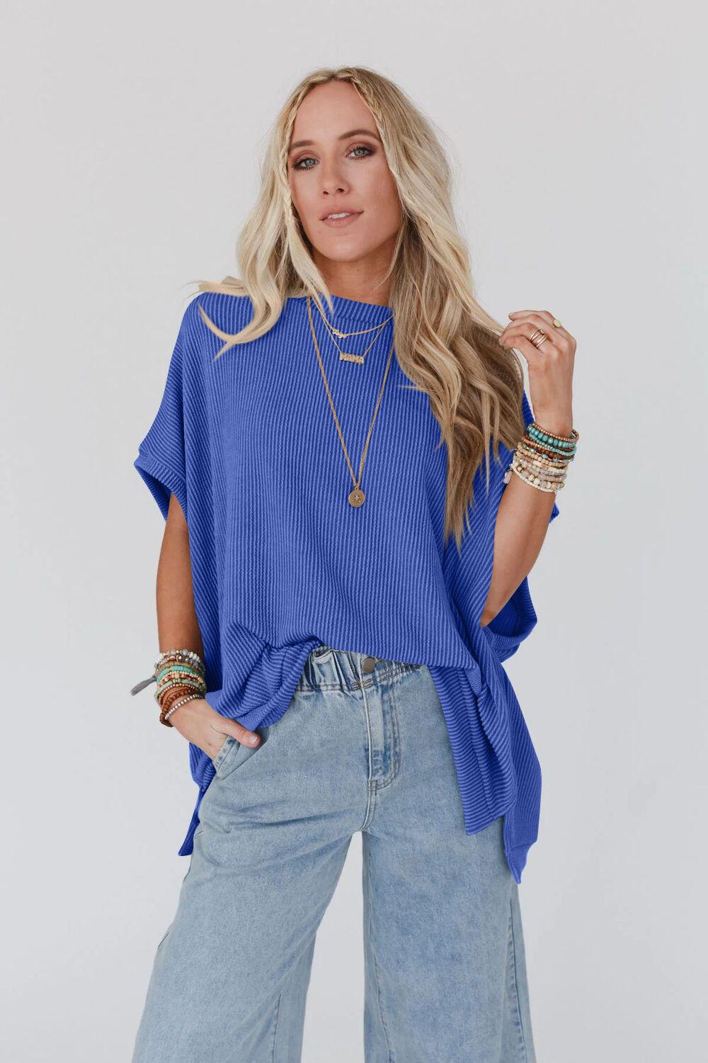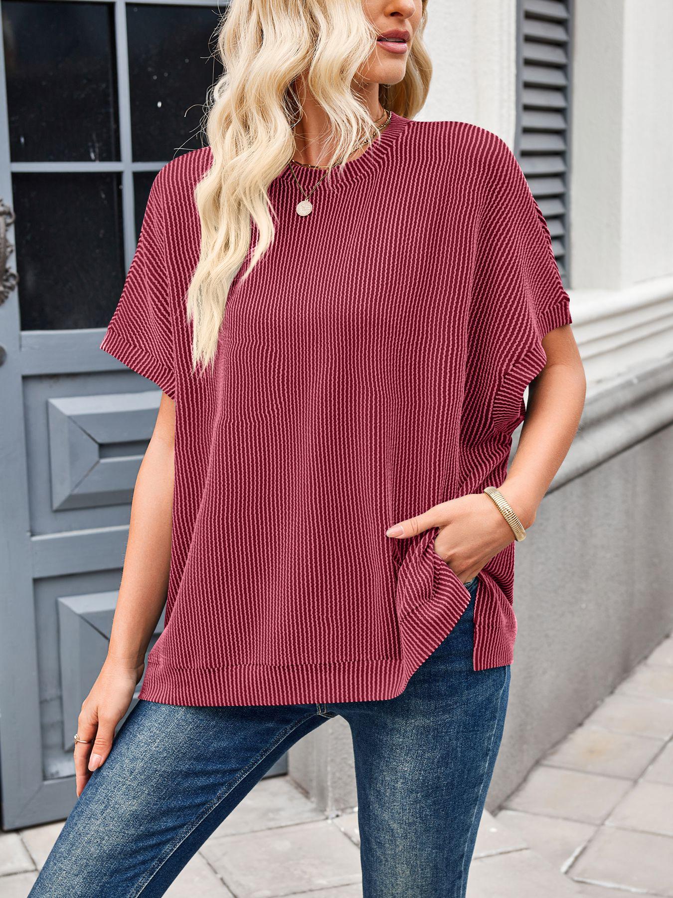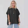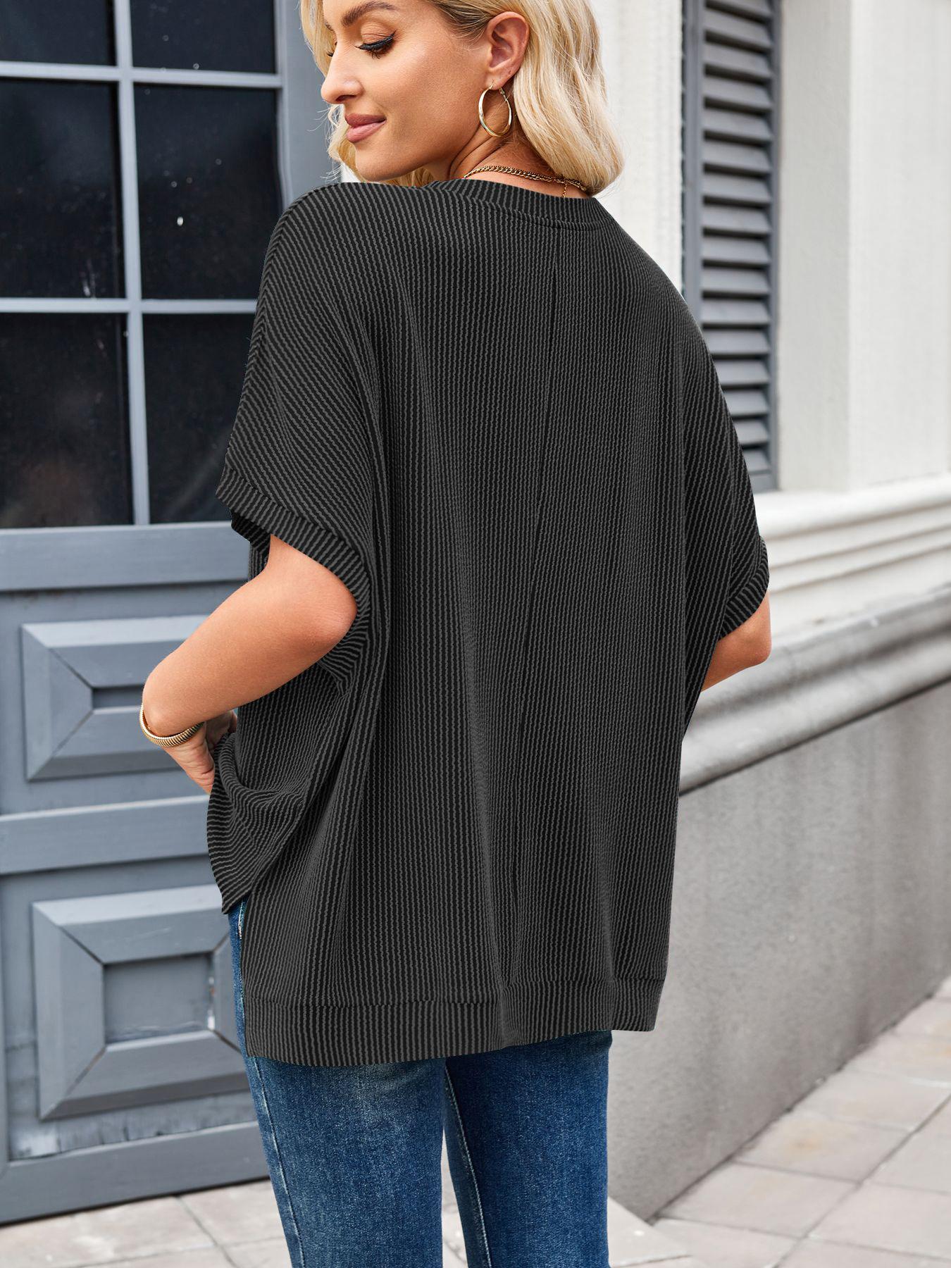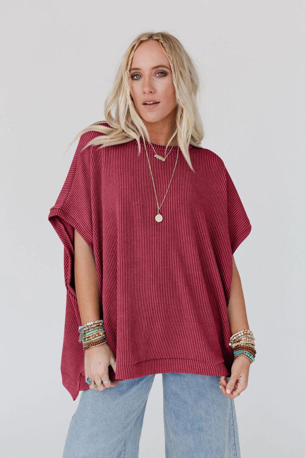 Camiseta de verano TK2025 de punto de color liso con cuello redondo y mangas murciélago para mujer, ropa transfronteriza europea y americana.