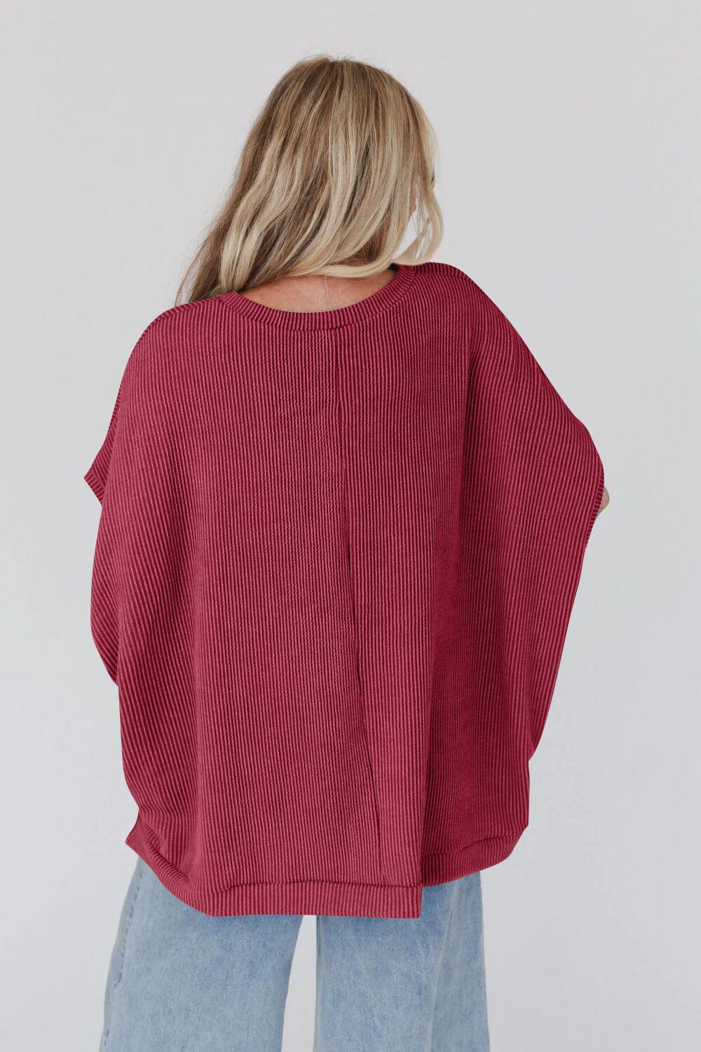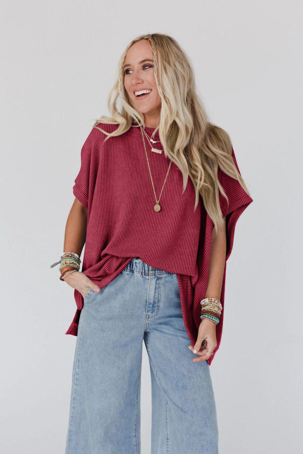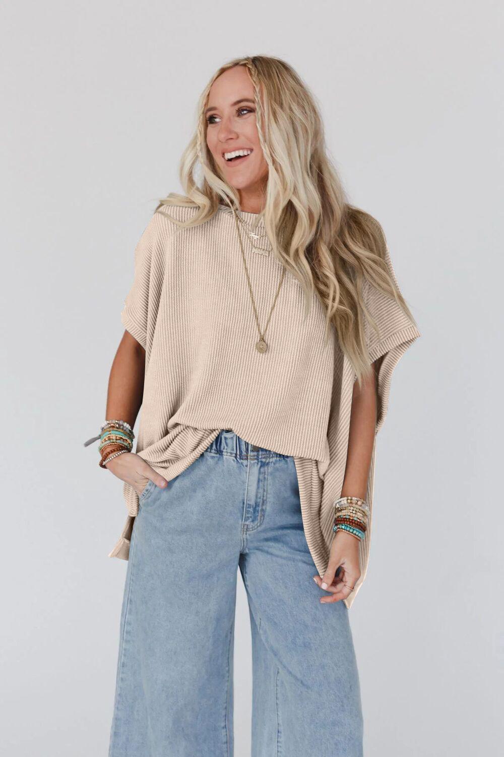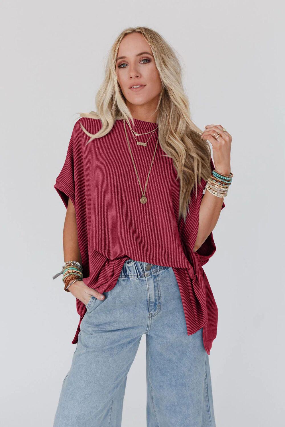 Camiseta de verano TK2025 de punto de color liso con cuello redondo y mangas murciélago para mujer, ropa transfronteriza europea y americana.