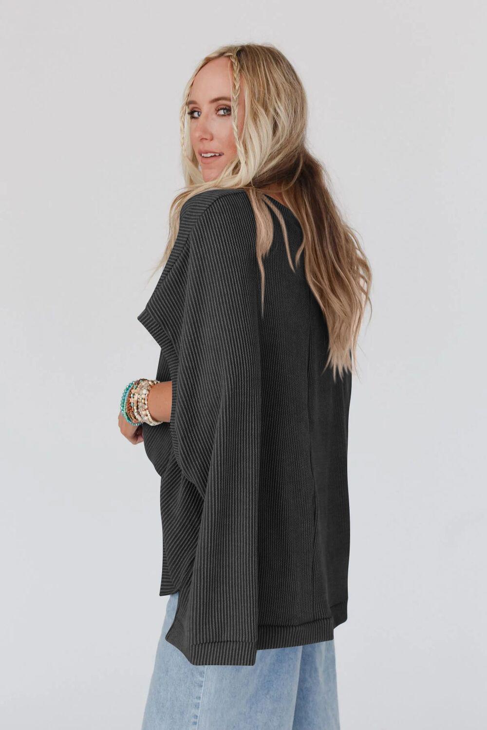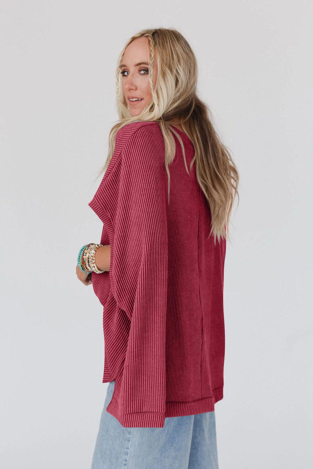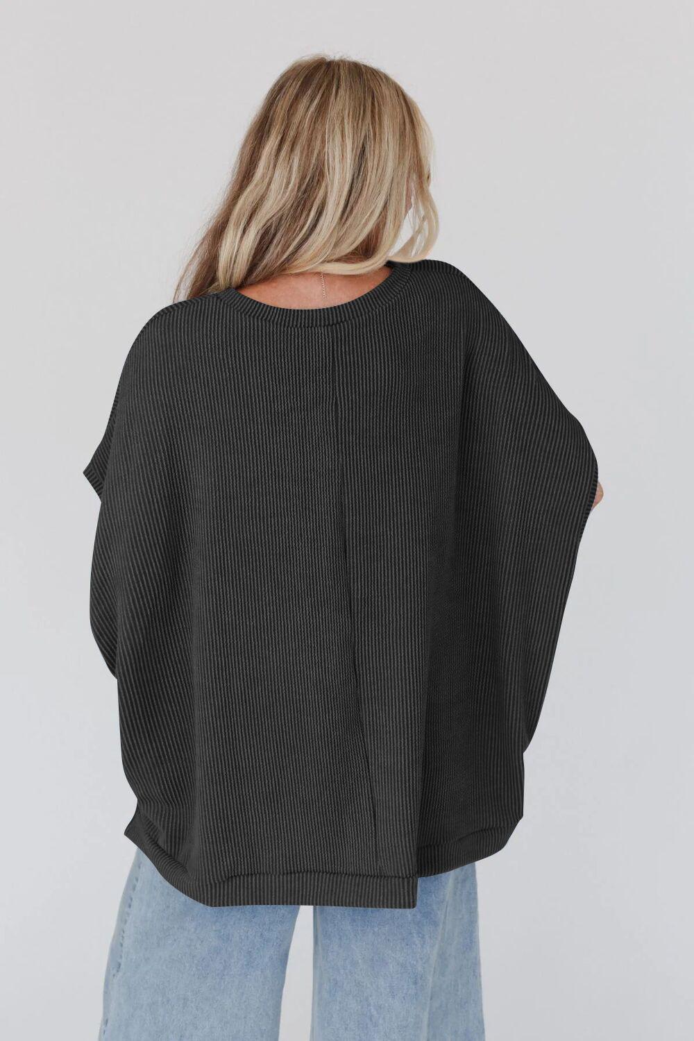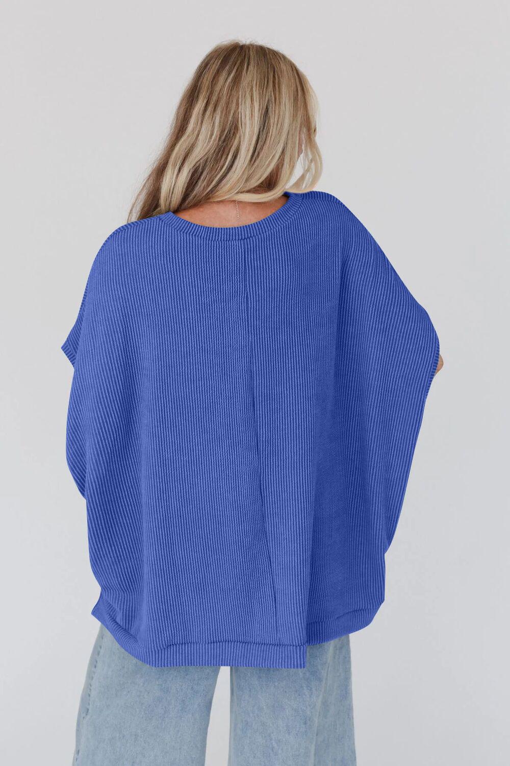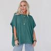 Camiseta de verano TK2025 de punto de color liso con cuello redondo y mangas murciélago para mujer, ropa transfronteriza europea y americana.