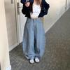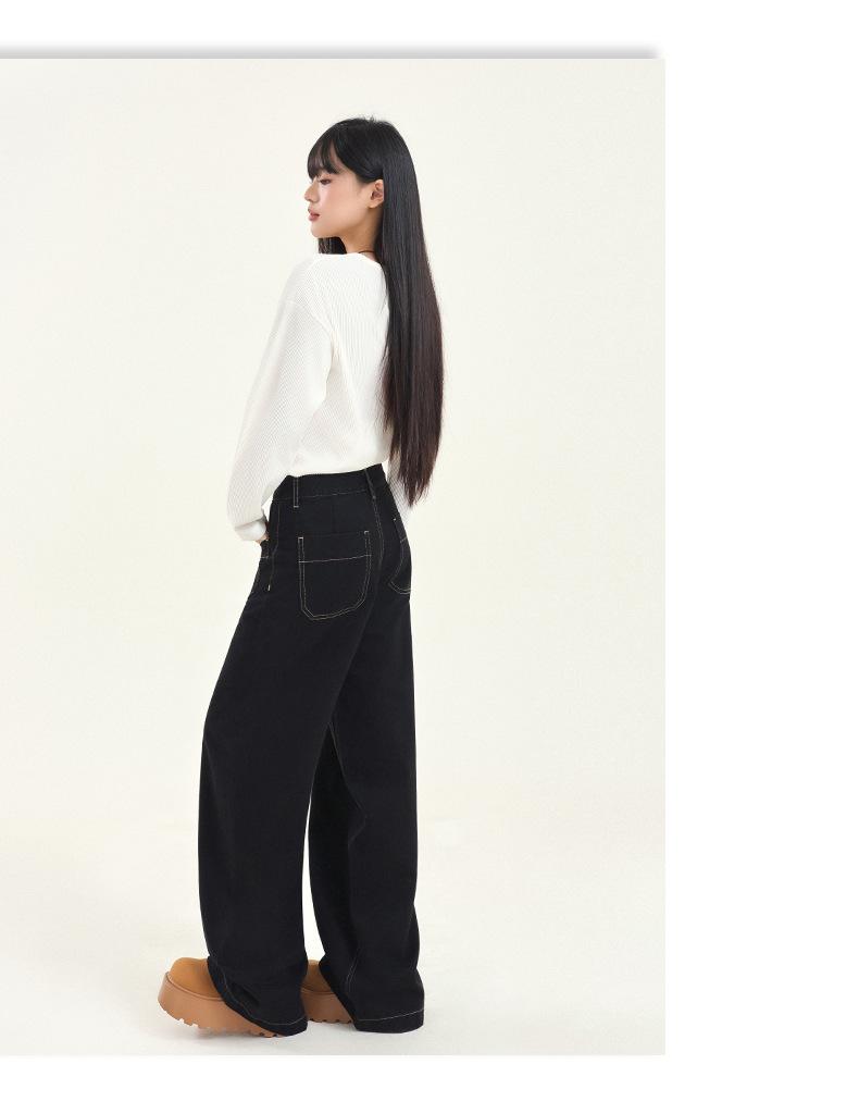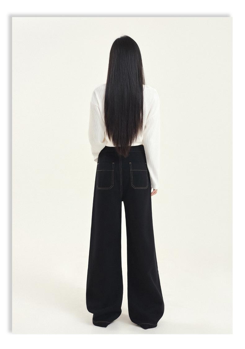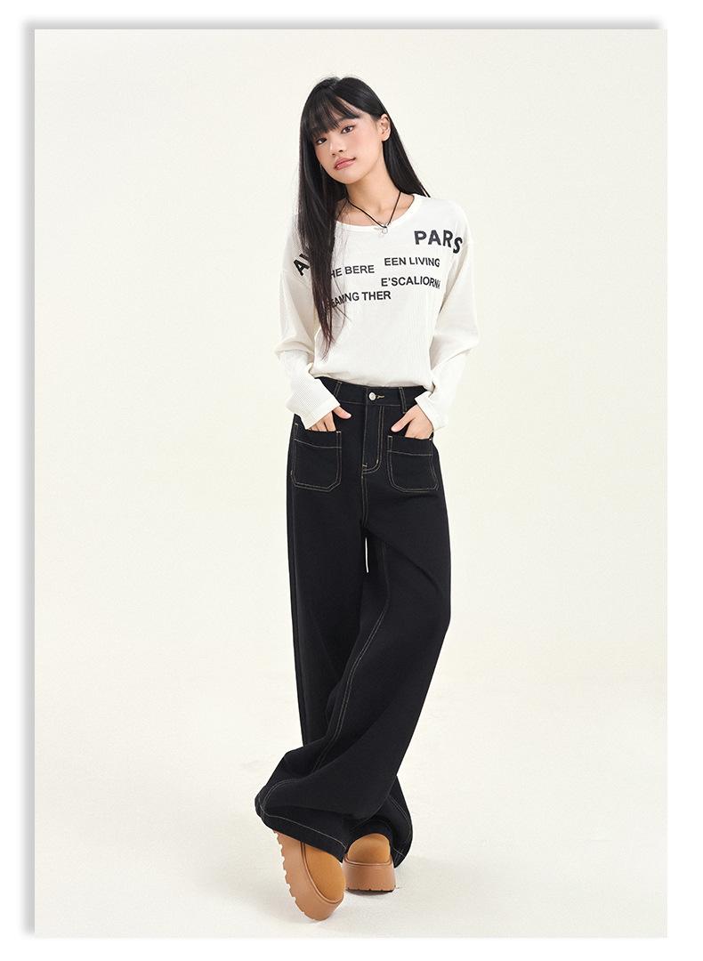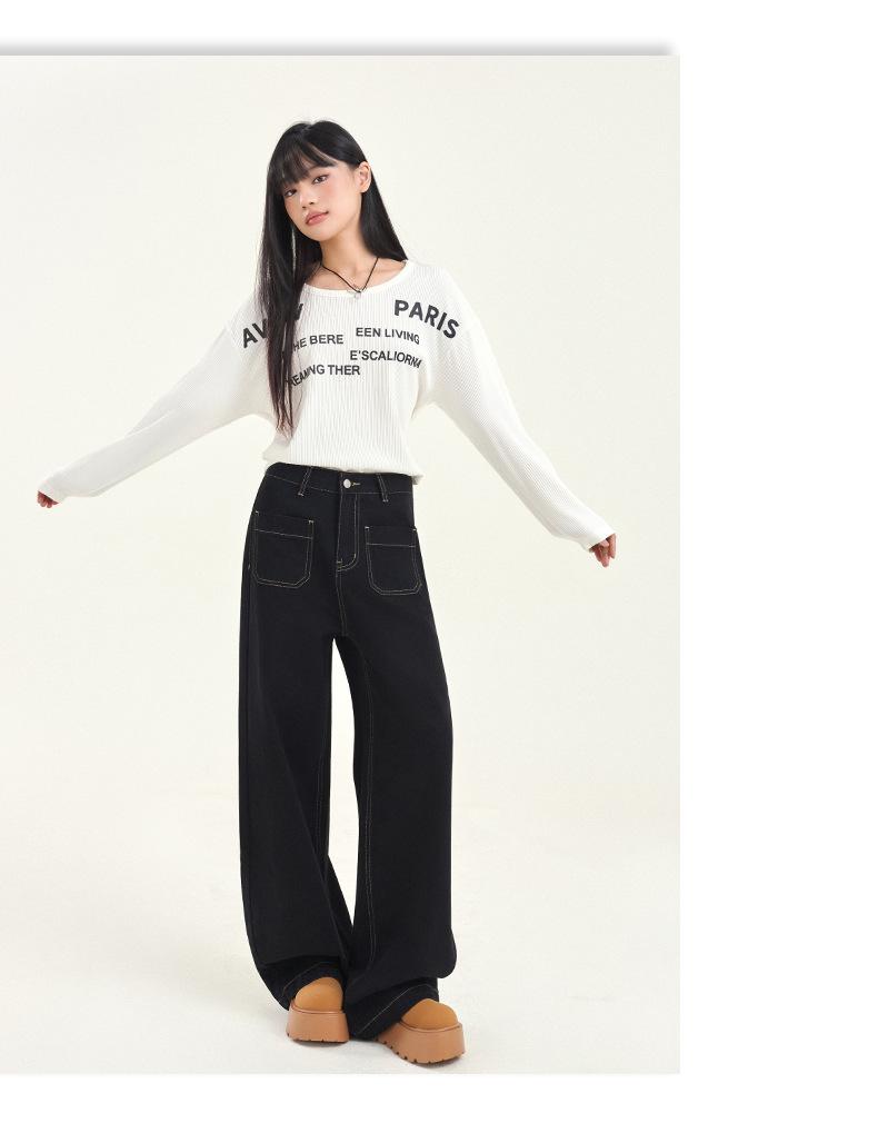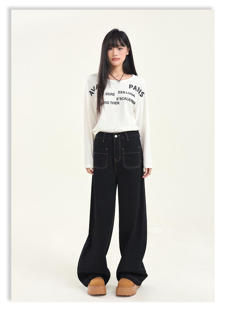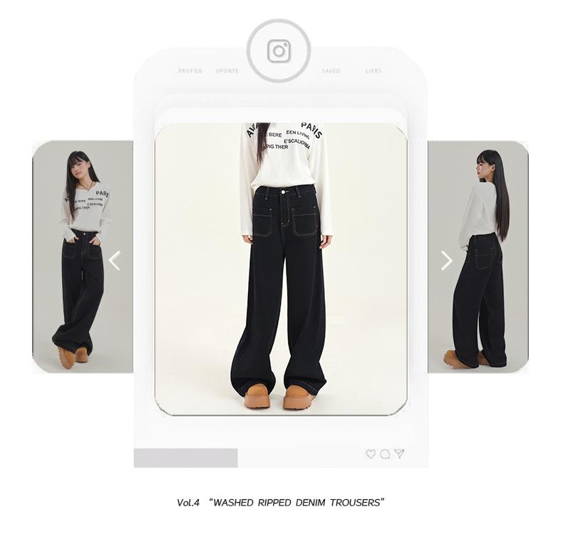 Pantalones vaqueros de pierna ancha estilo INS europeo y americano para mujer, holgados, ajustados, con bolsillos delanteros que cubren la cadera, a la moda, estilo Joker.