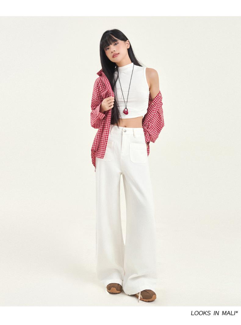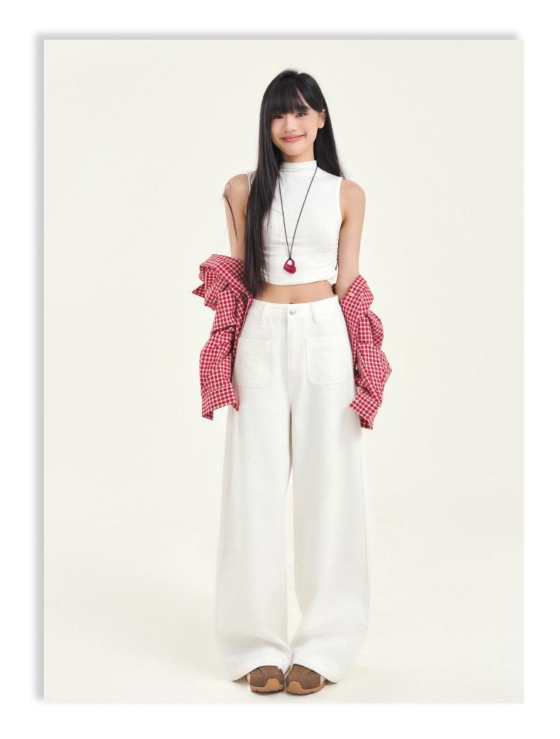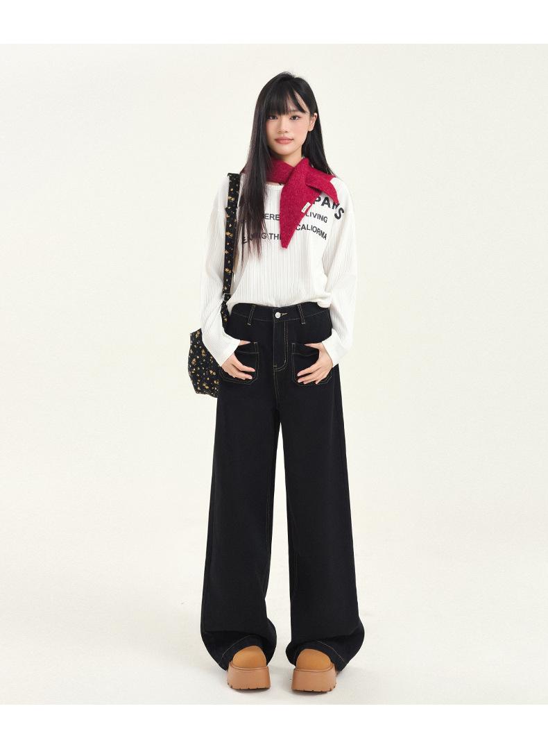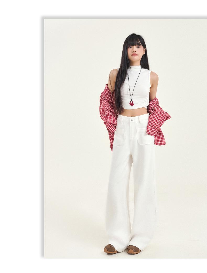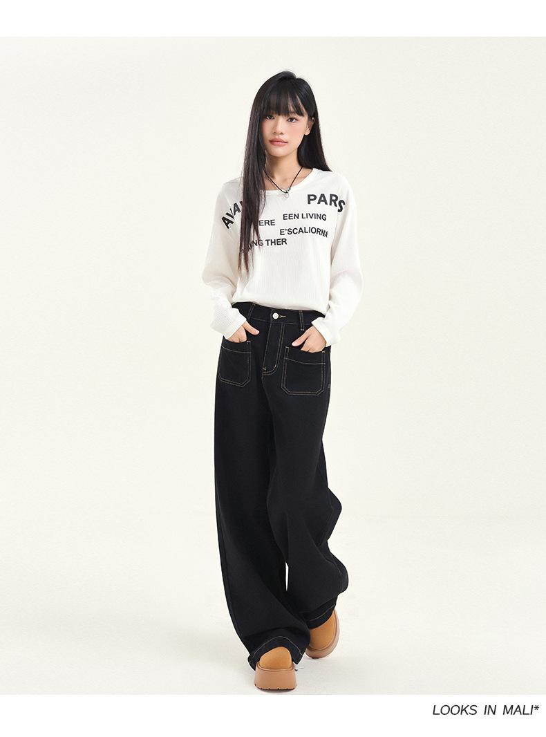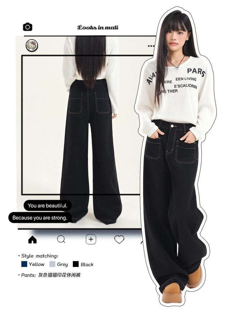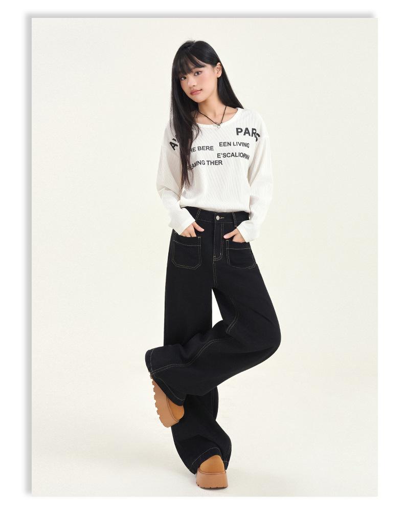 Pantalones vaqueros de pierna ancha estilo INS europeo y americano para mujer, holgados, ajustados, con bolsillos delanteros que cubren la cadera, a la moda, estilo Joker.