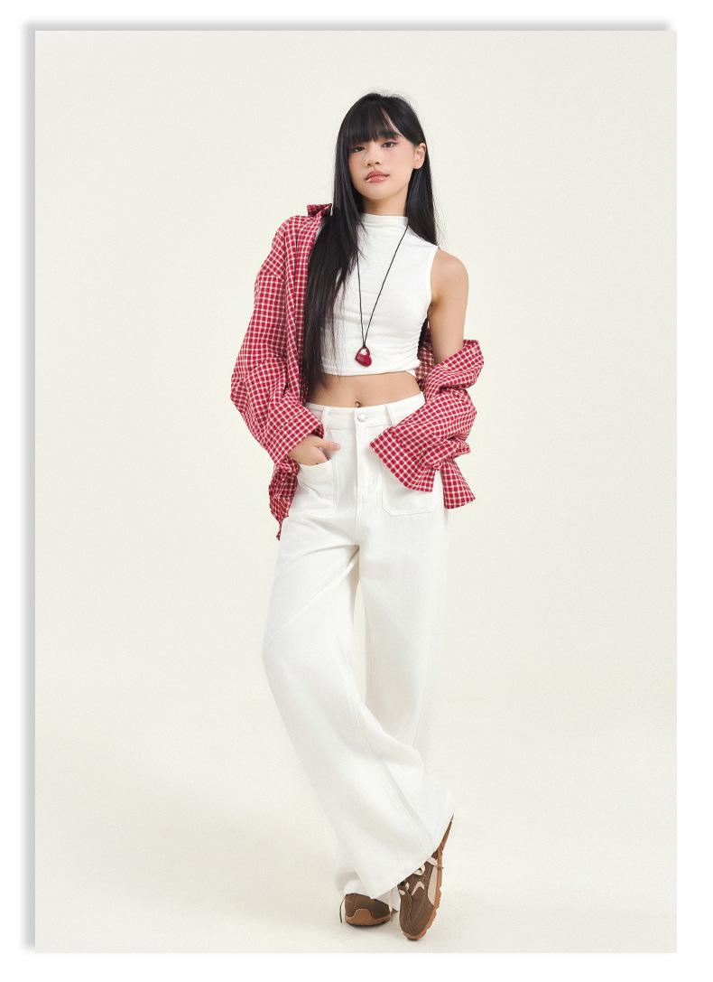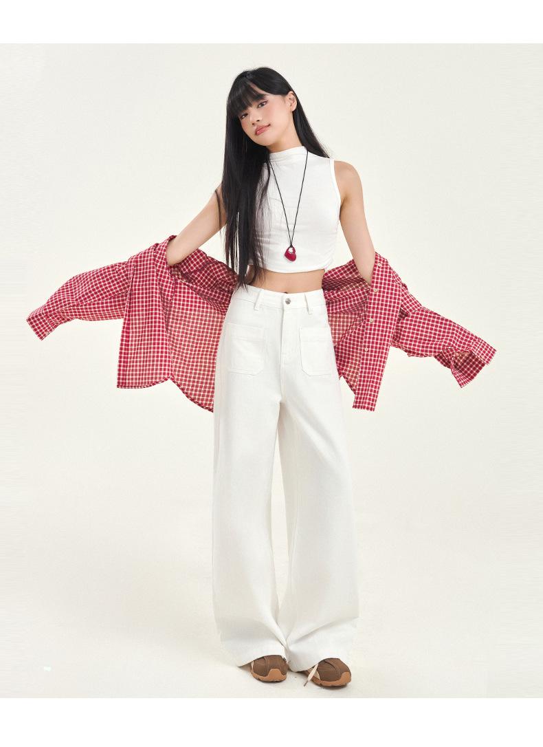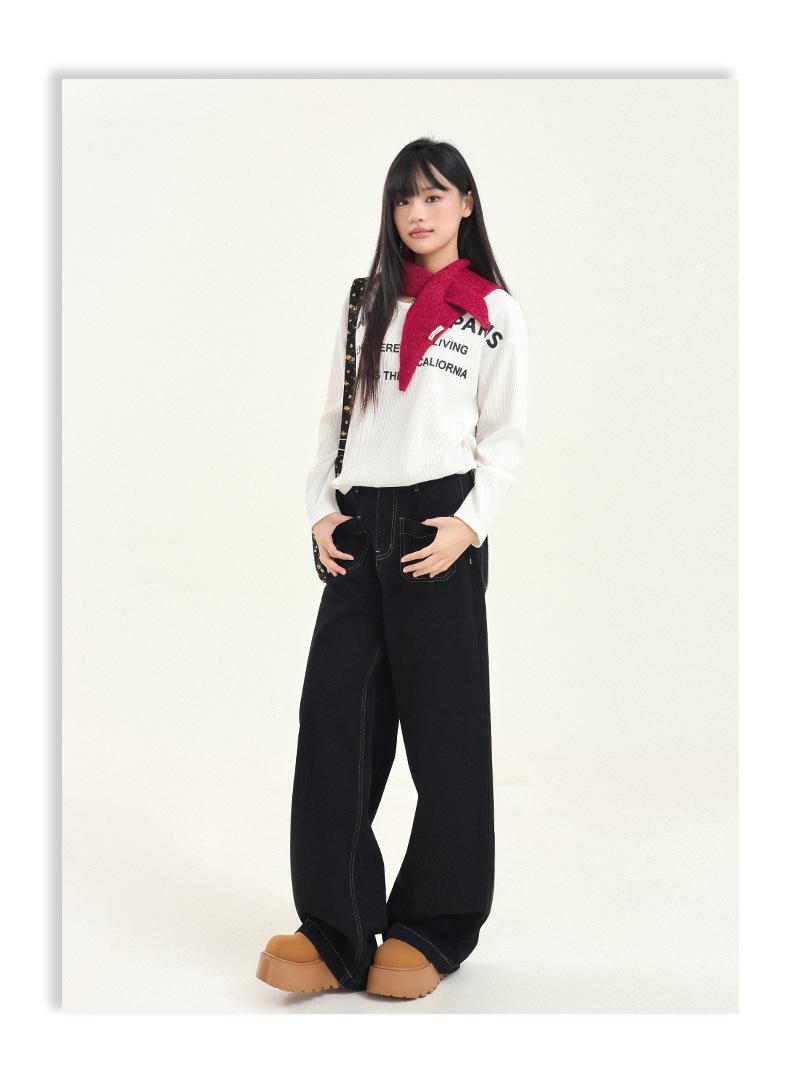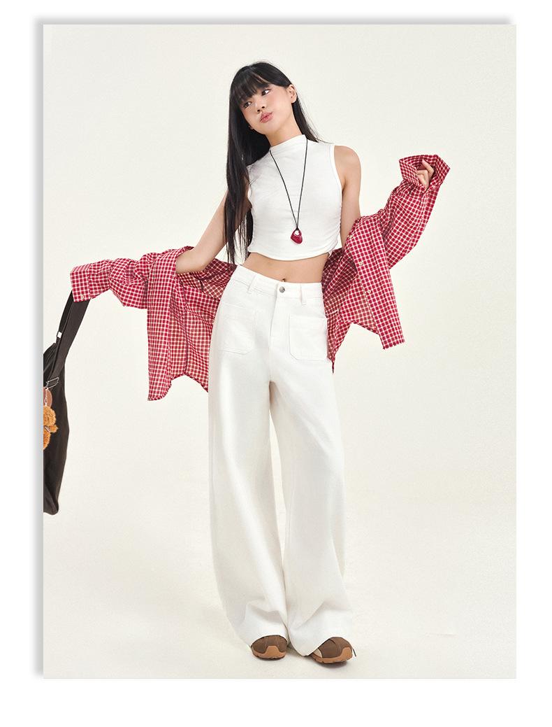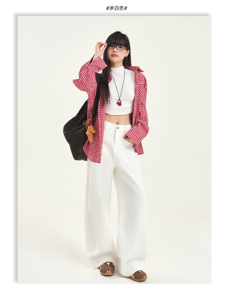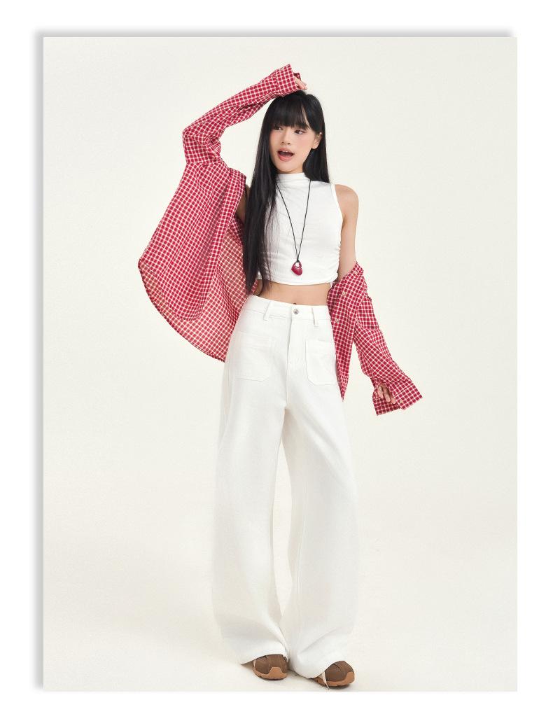 Pantalones vaqueros de pierna ancha estilo INS europeo y americano para mujer, holgados, ajustados, con bolsillos delanteros que cubren la cadera, a la moda, estilo Joker.
