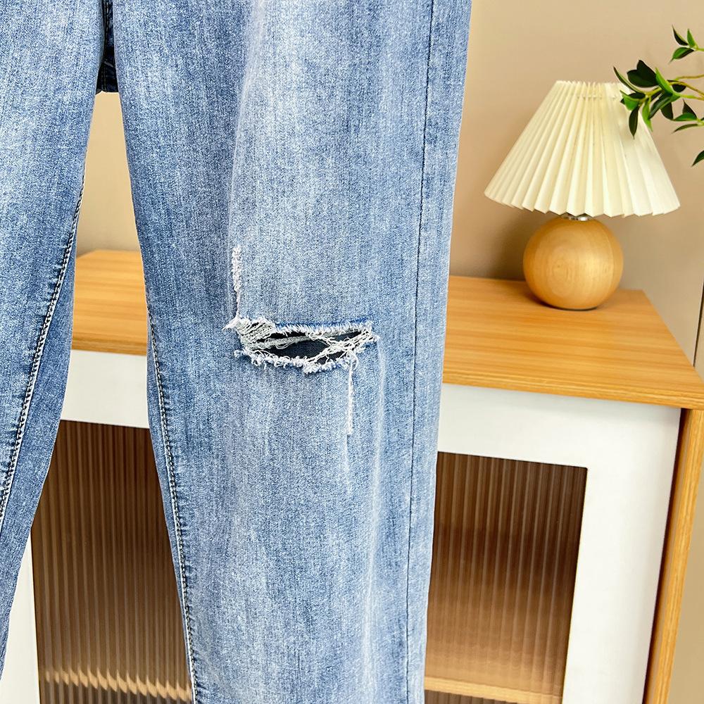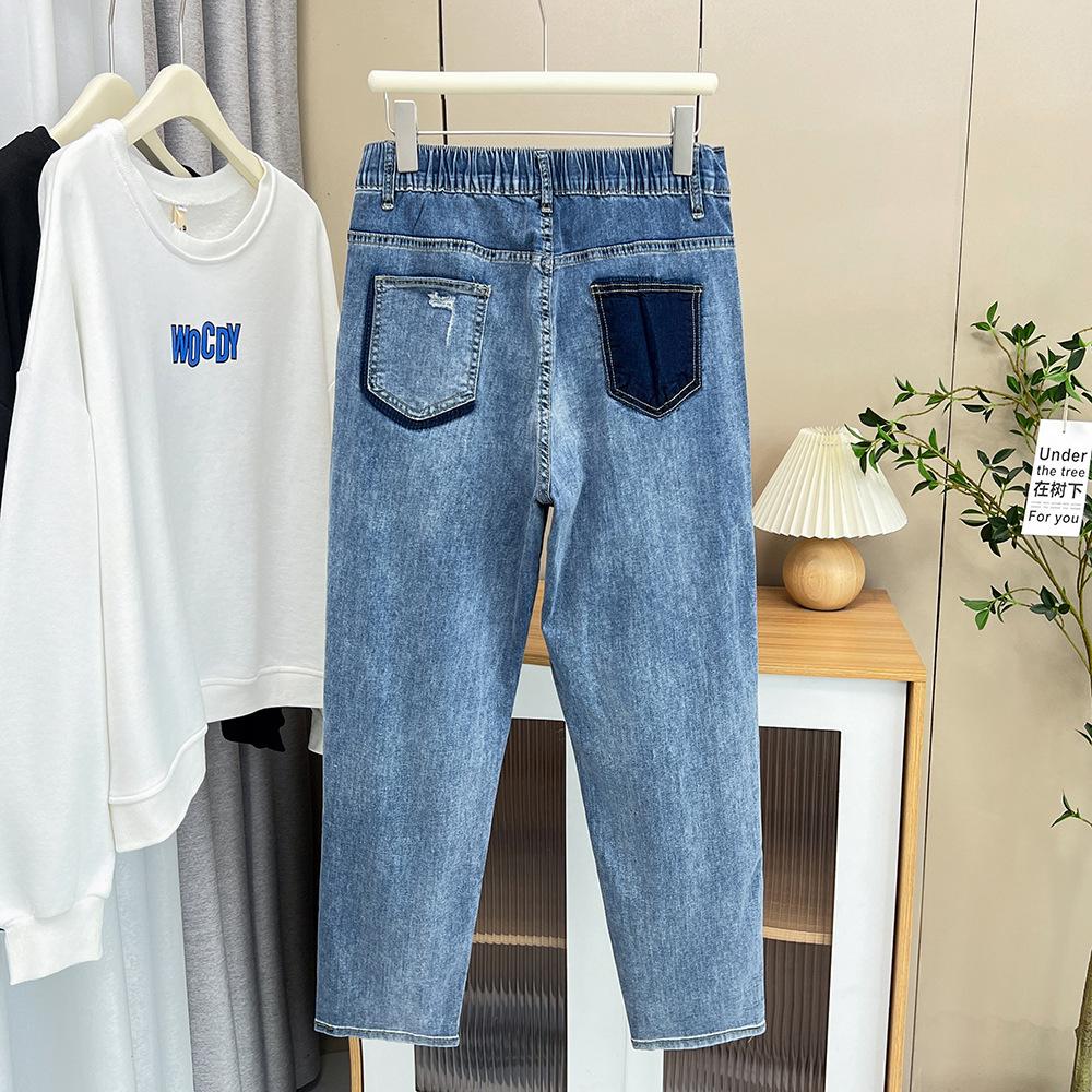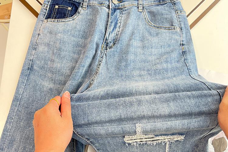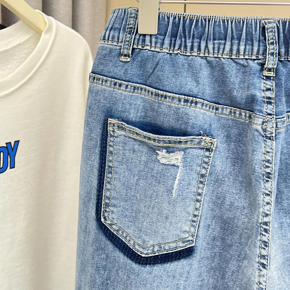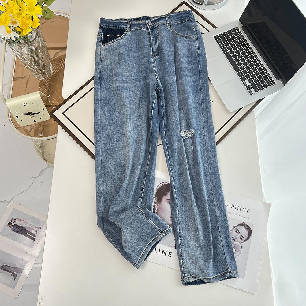 2025 talla grande principios de primavera nuevo 200 kg chica gordita delgada moda simple comodín cintura alta jeans con agujeros 2557