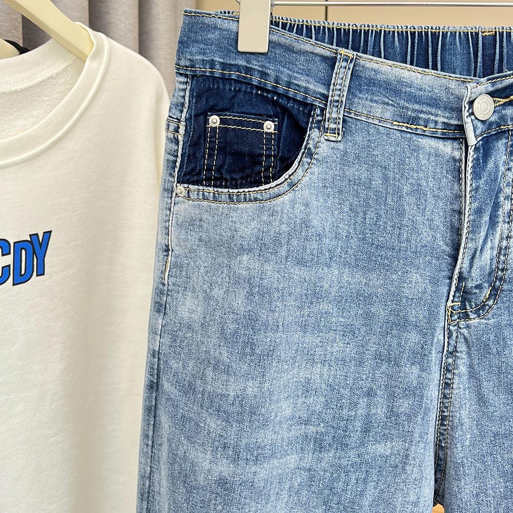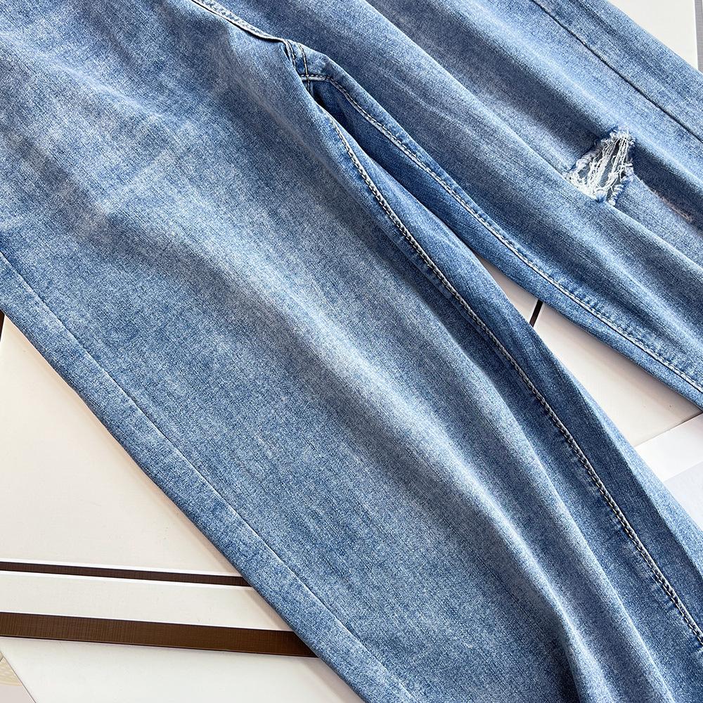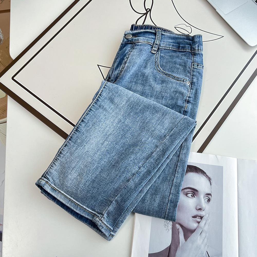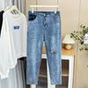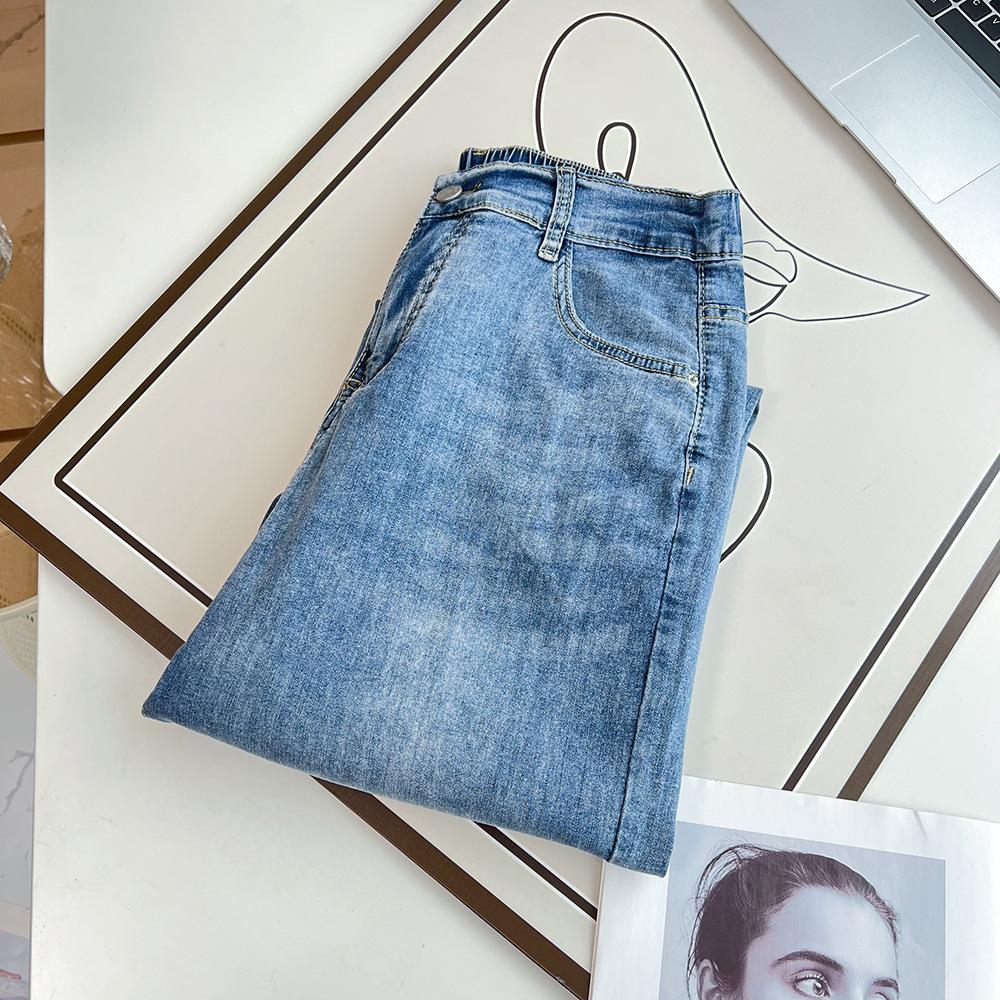 2025 talla grande principios de primavera nuevo 200 kg chica gordita delgada moda simple comodín cintura alta jeans con agujeros 2557