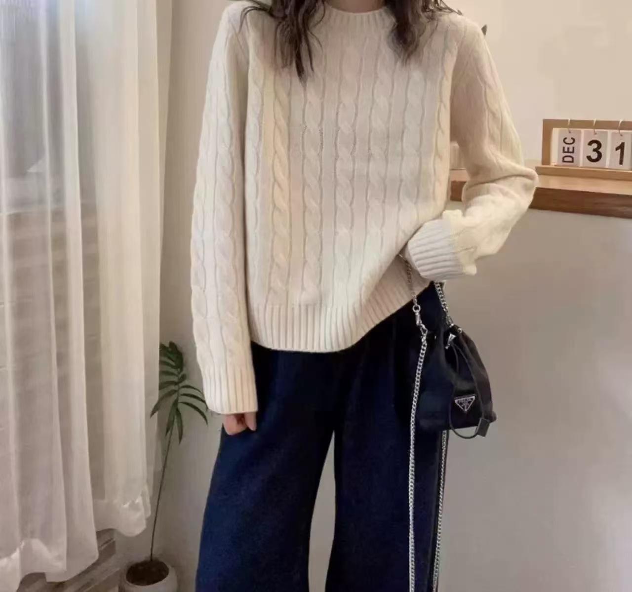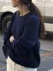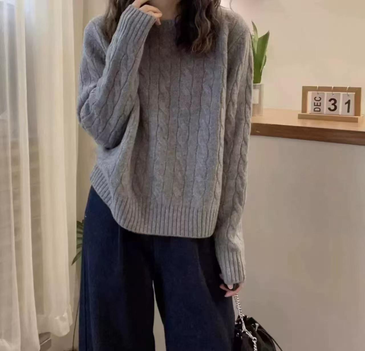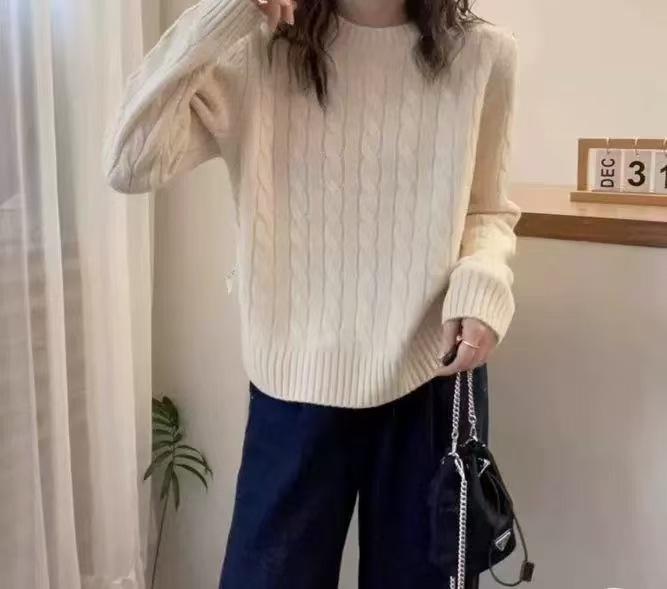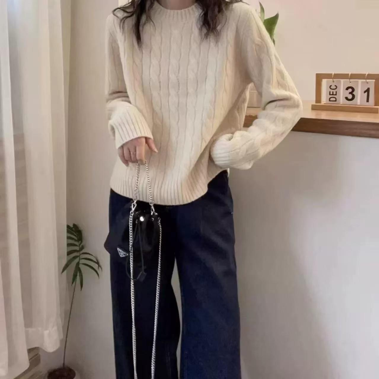 Suéter de cuello redondo grueso de cachemira europea para mujer, suéter holgado y adelgazante de lana base para otoño e invierno, combina con todo.