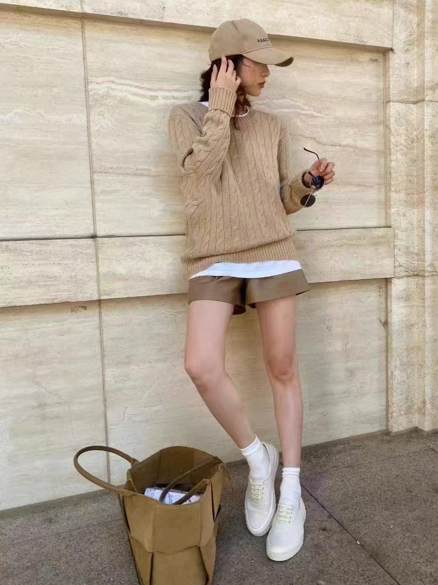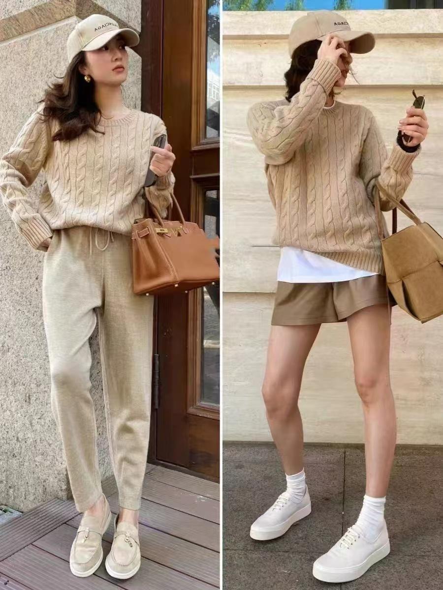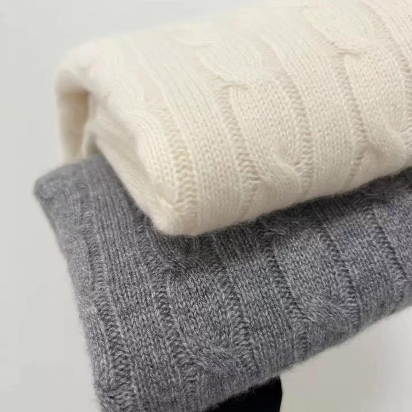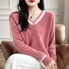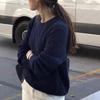 Suéter de cuello redondo grueso de cachemira europea para mujer, suéter holgado y adelgazante de lana base para otoño e invierno, combina con todo.