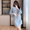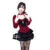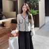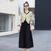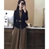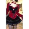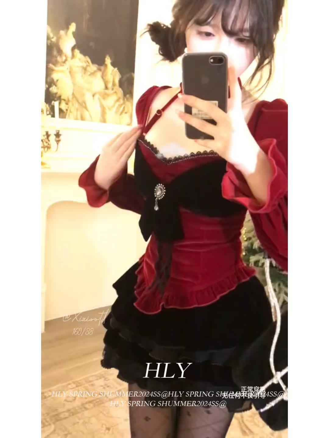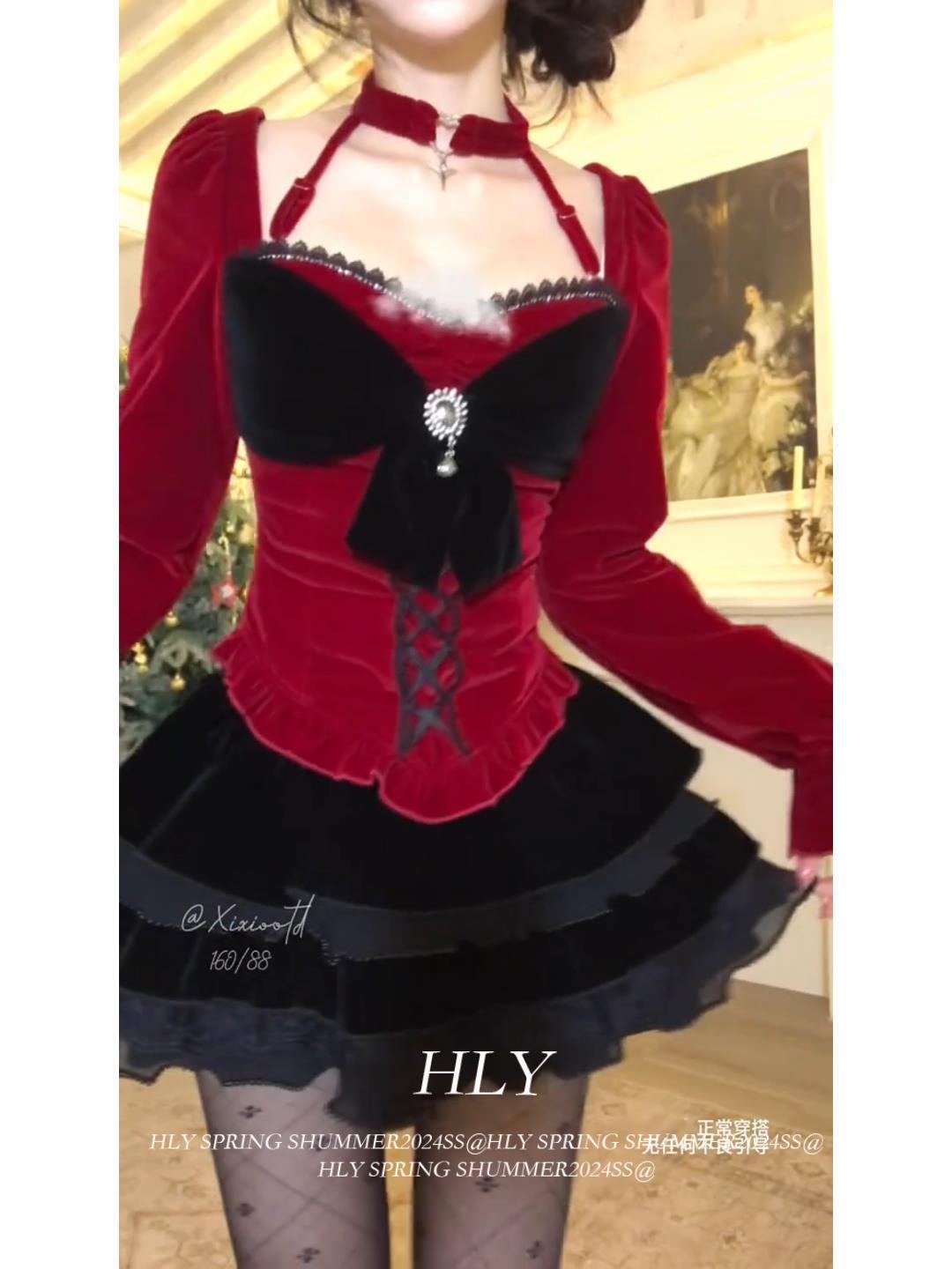 Traje de estilo fragante pequeño para mujer, principios de primavera, rojo navideño, terciopelo, top de manga larga con un conjunto completo de faldas esponjosas de pastel
