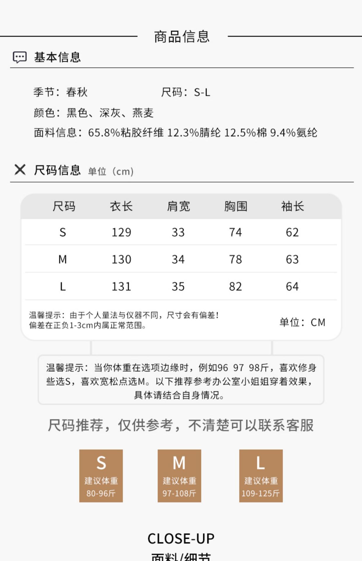 S, M, L
