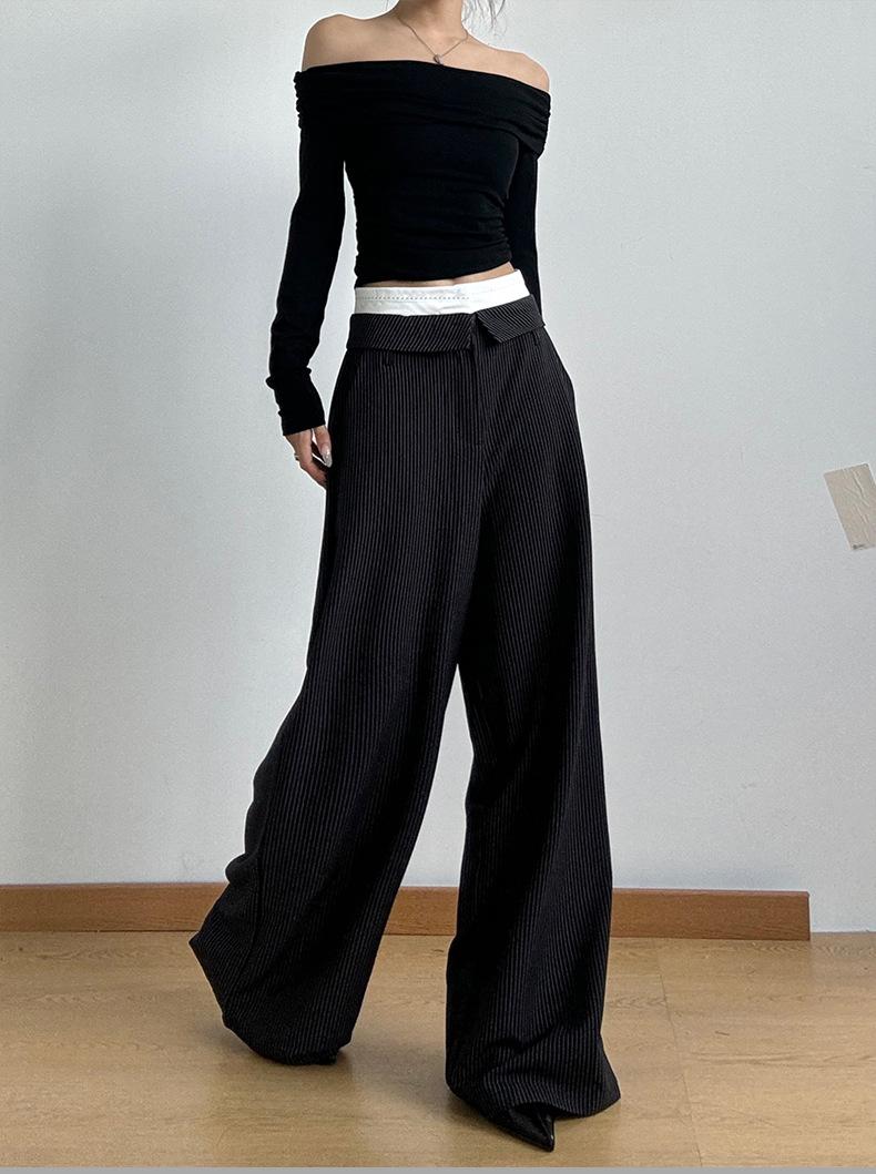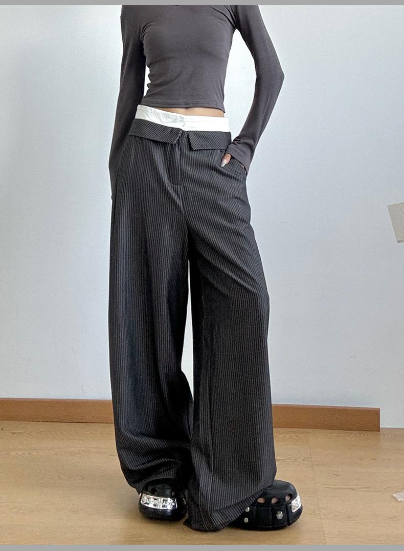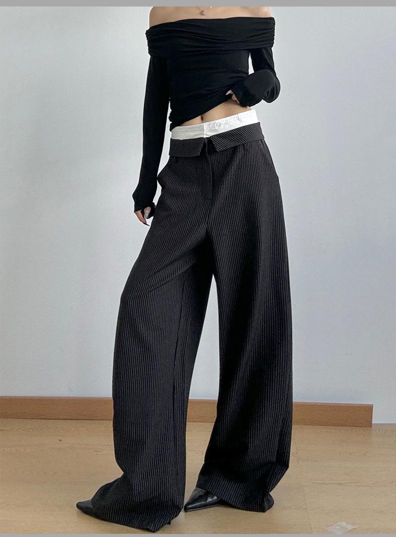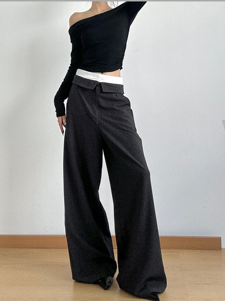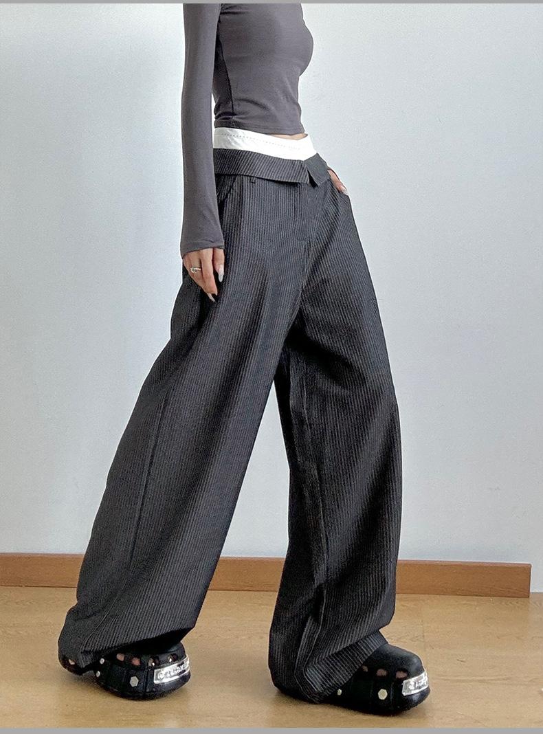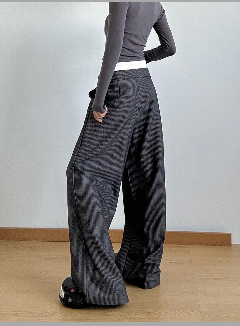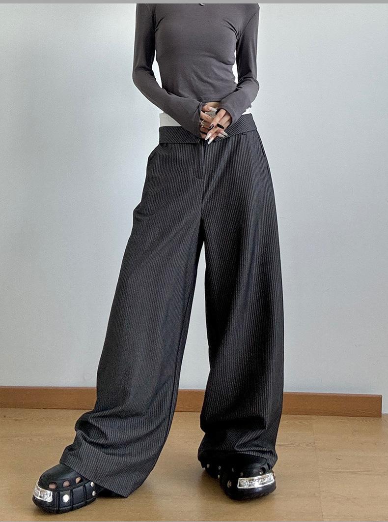 Pantalones de vestir para mujer, recién llegados en otoño de 2024, pantalones rectos, pantalones a rayas, adelgazantes, de pierna ancha y de moda.