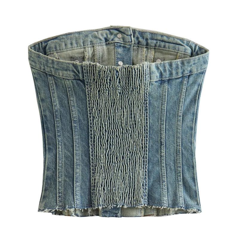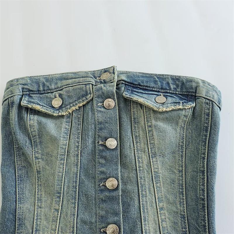 Ropa de Mujer Estilo Europeo y Americano 2023 Verano Nuevo Estilo Dulce y Picante Puro Lujurioso Retro Sexy Hombro Descubierto Denim Corto Top de Tubo