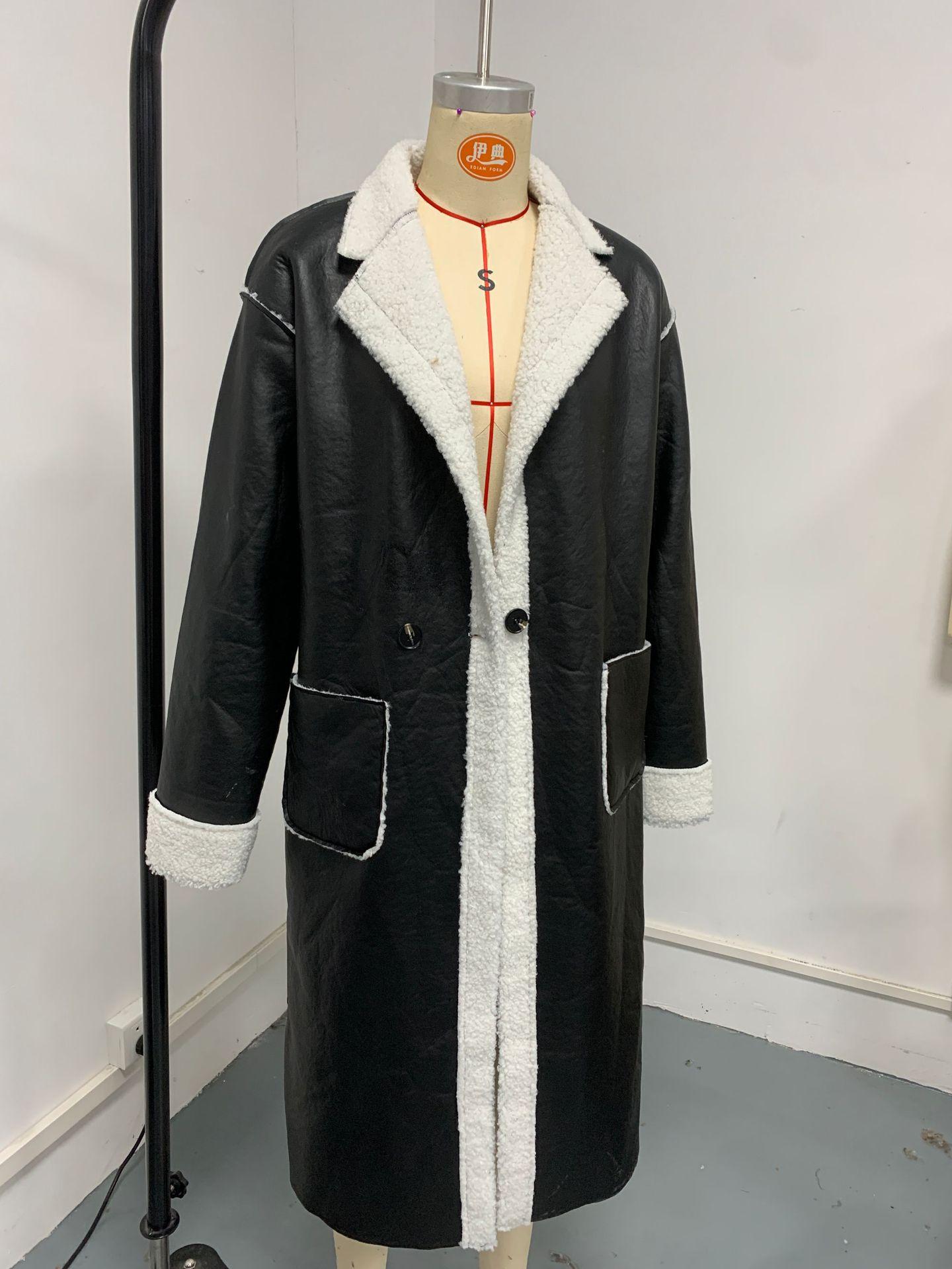 Abrigo informal de cuero grueso y holgado para mujer, estilo Amazon europeo y americano, para otoño e invierno, transfronterizo