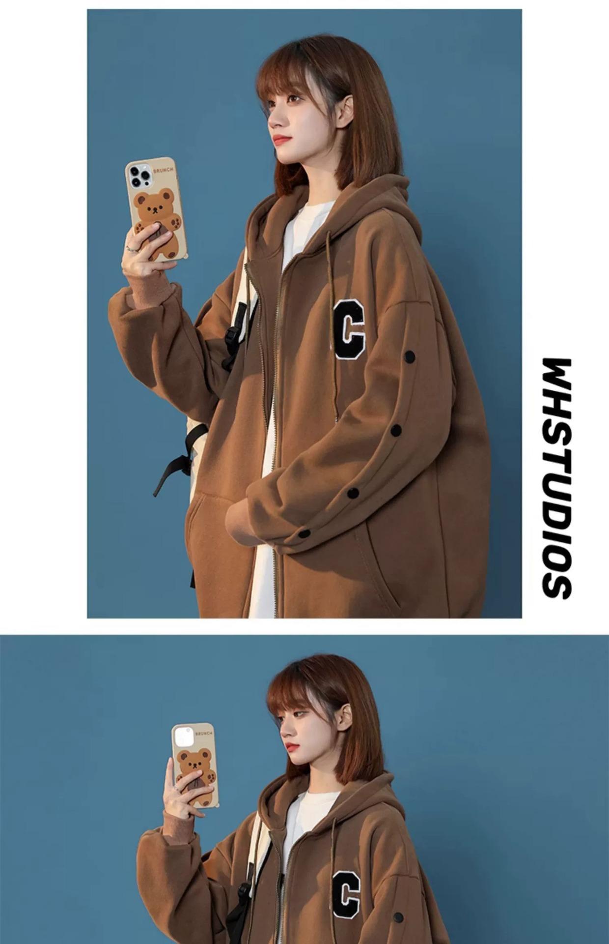 Suéter de primavera y otoño para hombre y mujer, informal, combinable, holgado, con capucha, chaqueta fina con cremallera de invierno