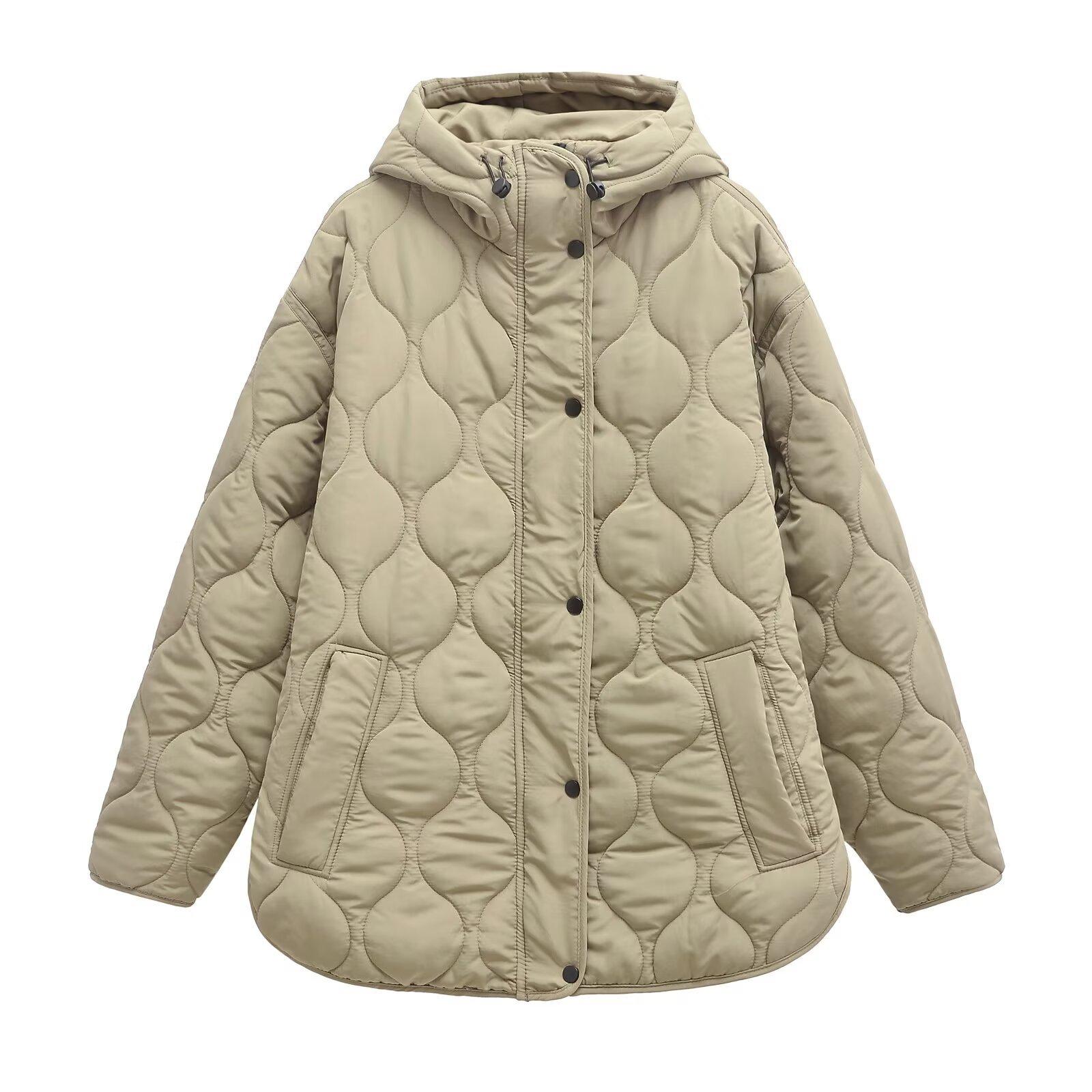 Chaqueta acolchada con capucha de algodón y cuello alto para mujer, moda urbana de invierno 2024, transfronteriza entre Europa y Estados Unidos, venta al por mayor en Amazon