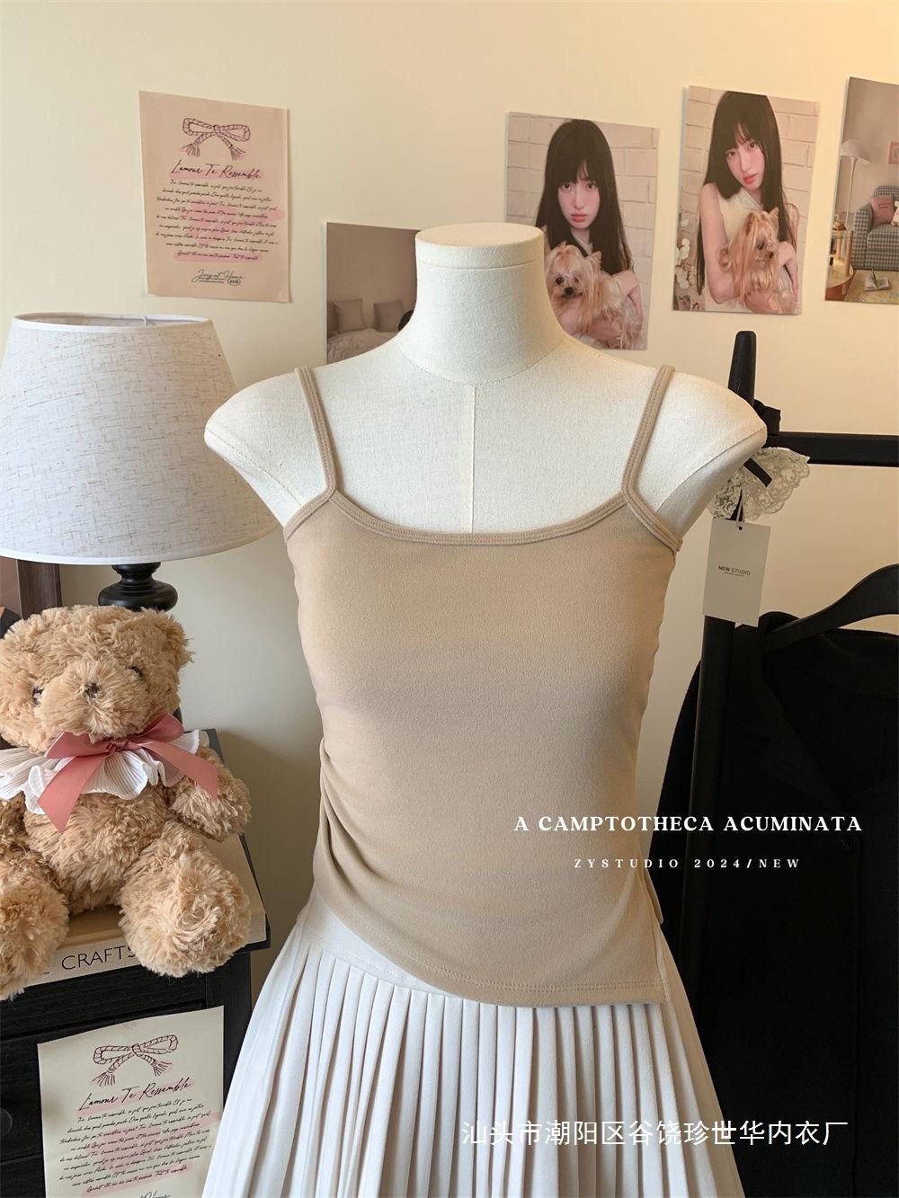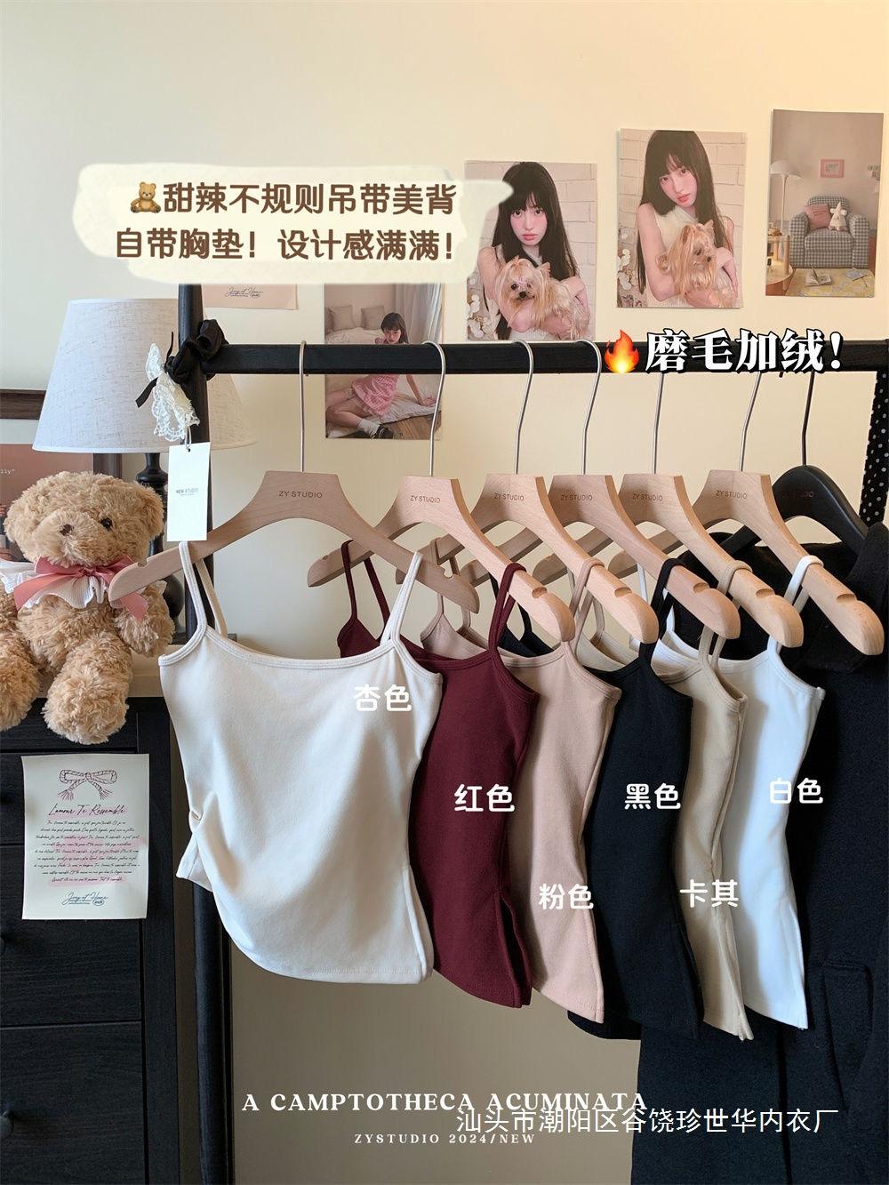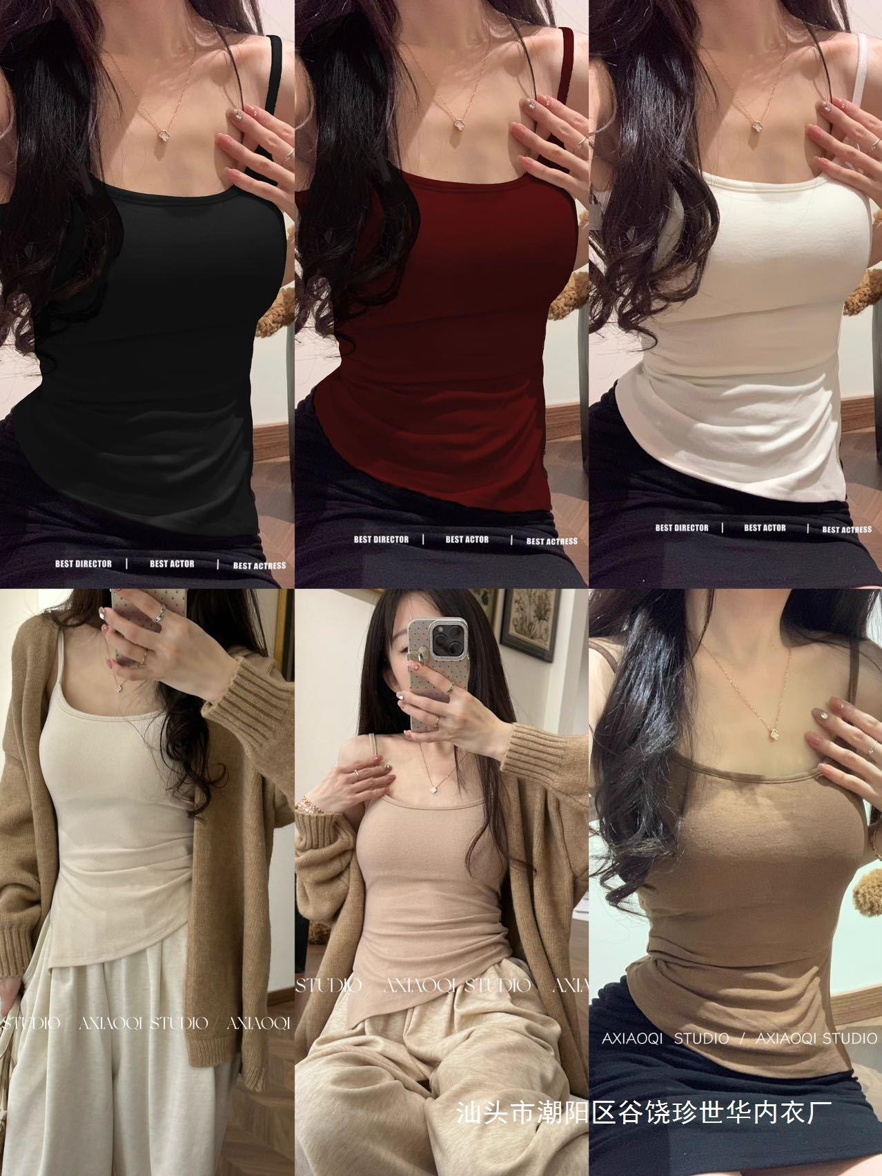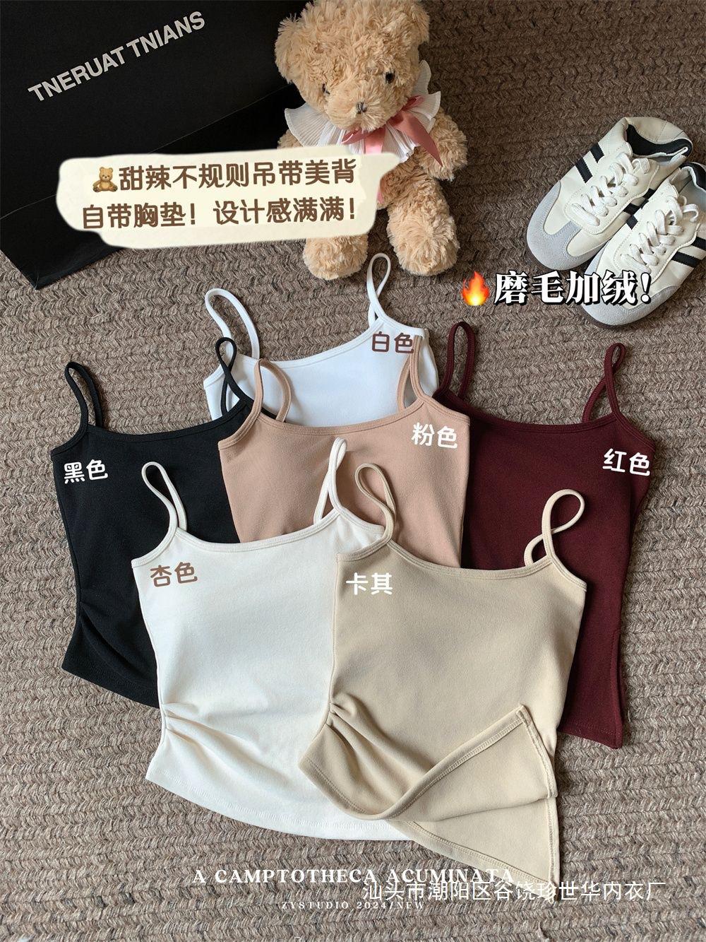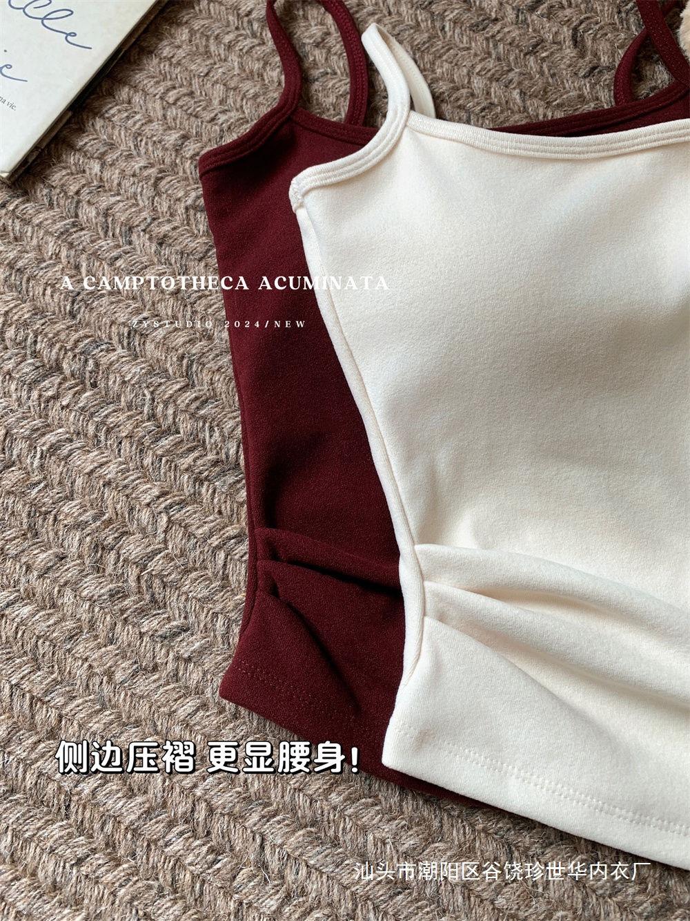 Chaleco cálido de lana para mujer, ropa interior de otoño e invierno de 2024, nuevo estilo, ropa interior ajustada, adelgazante, que cubre el pecho, top con tirantes.