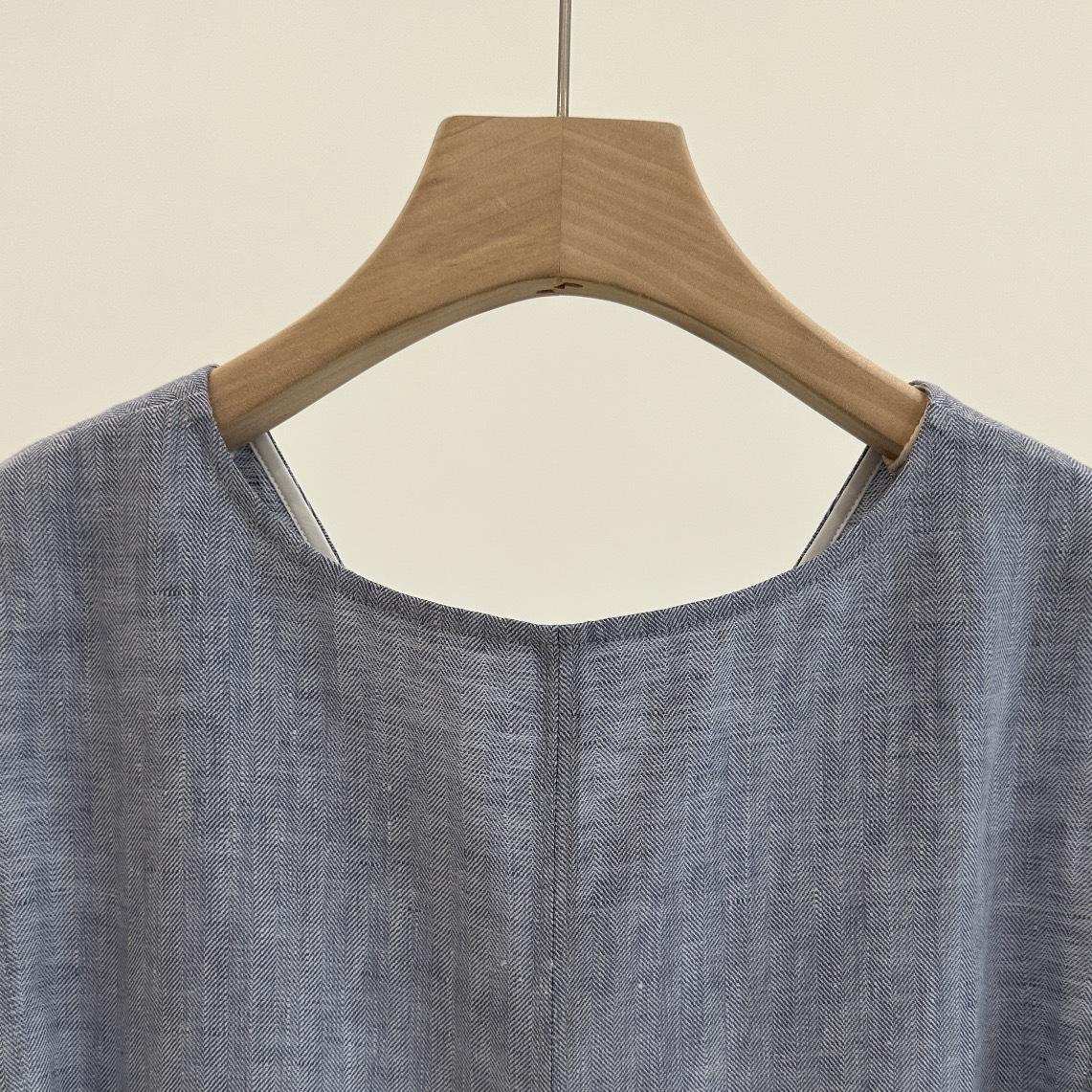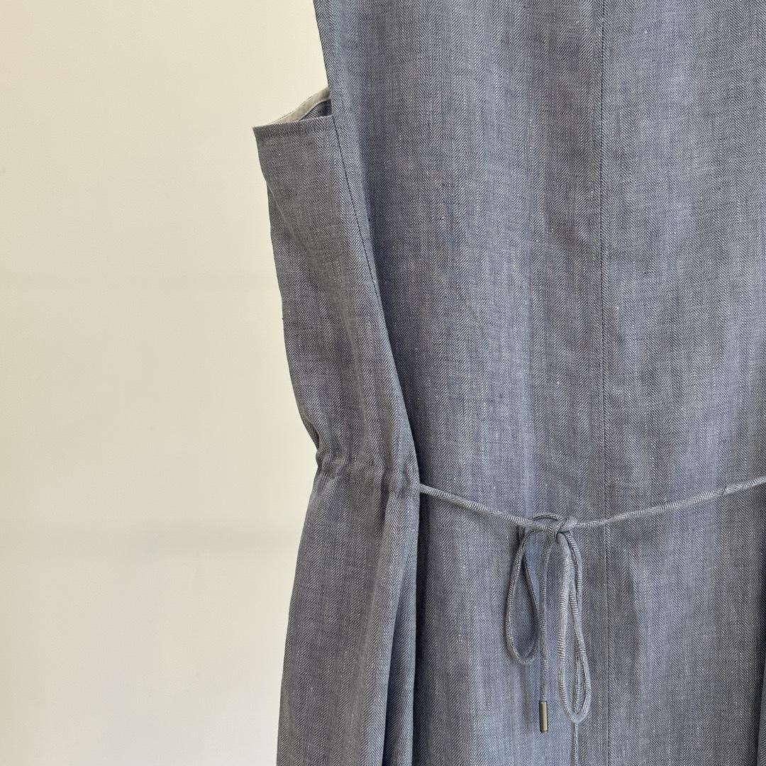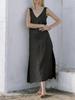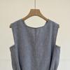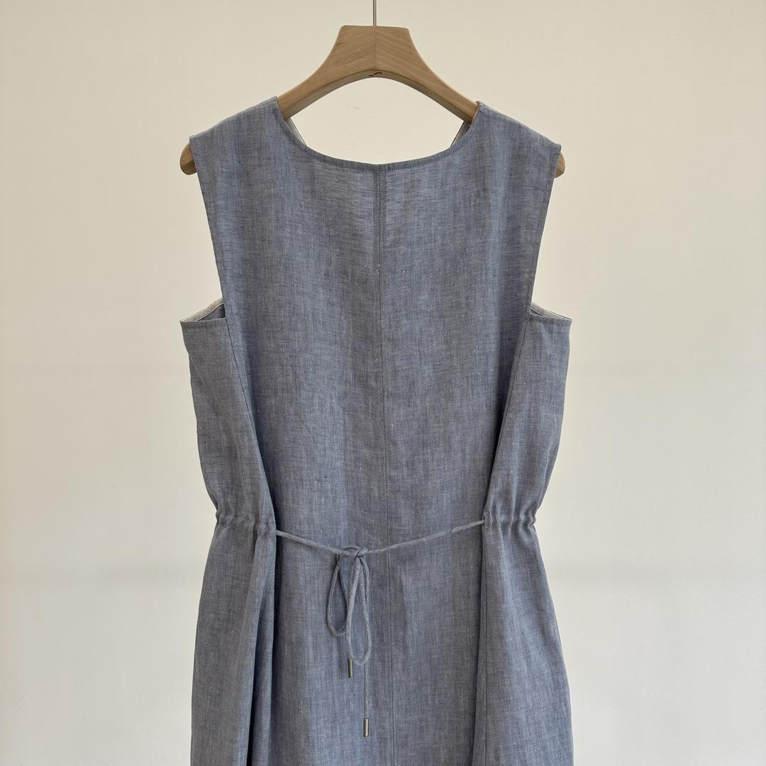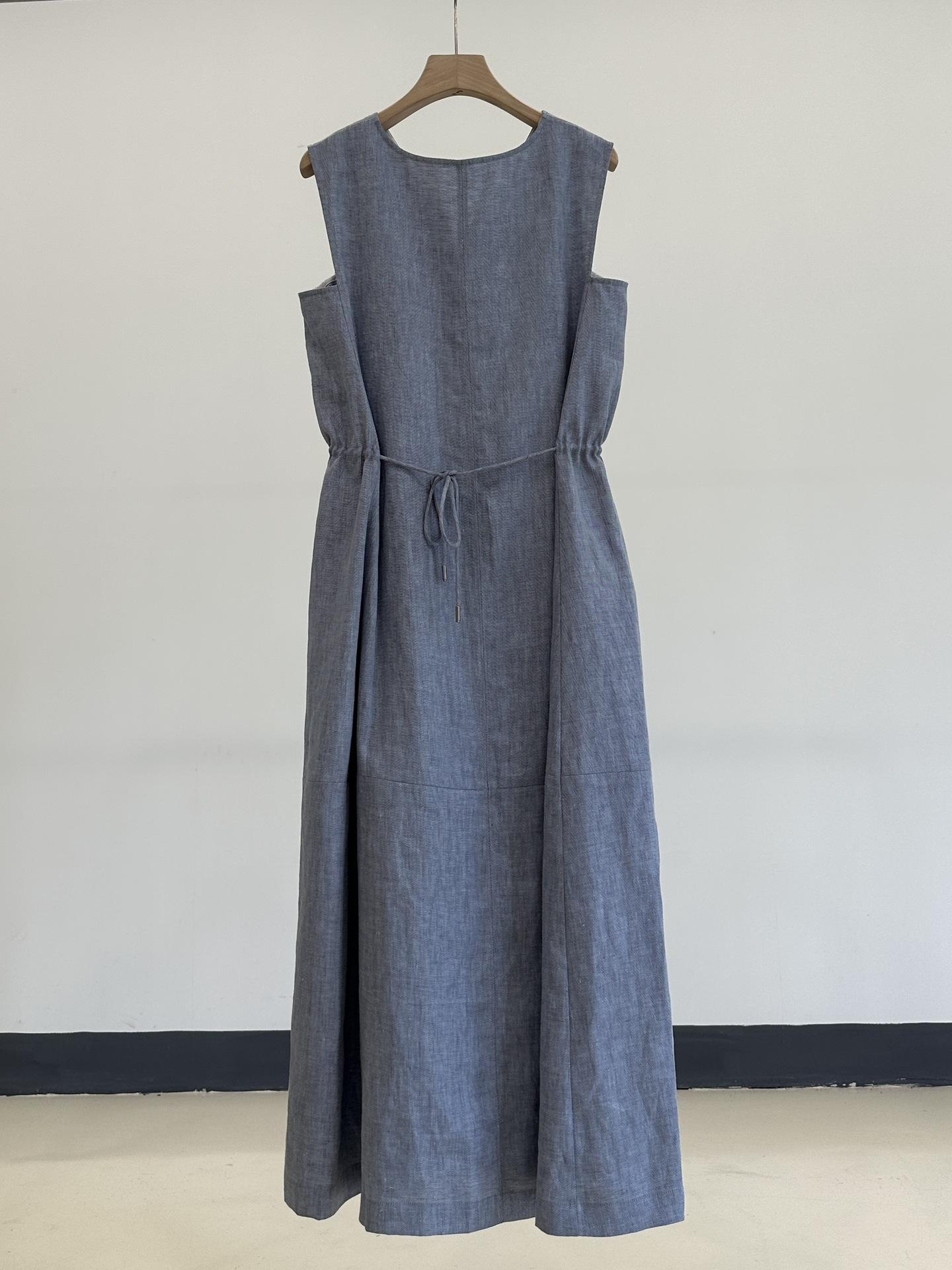 Vestido clásico de lino con escote en V y chaleco francés azul sin mangas
