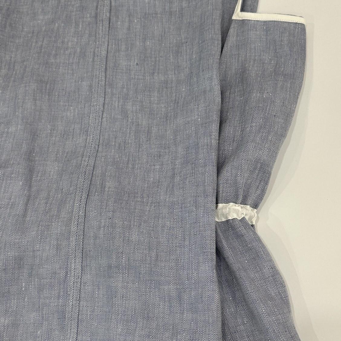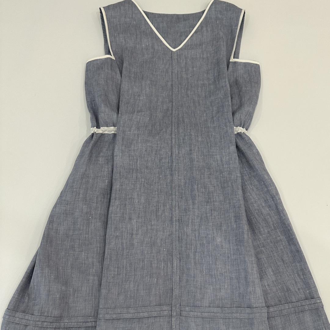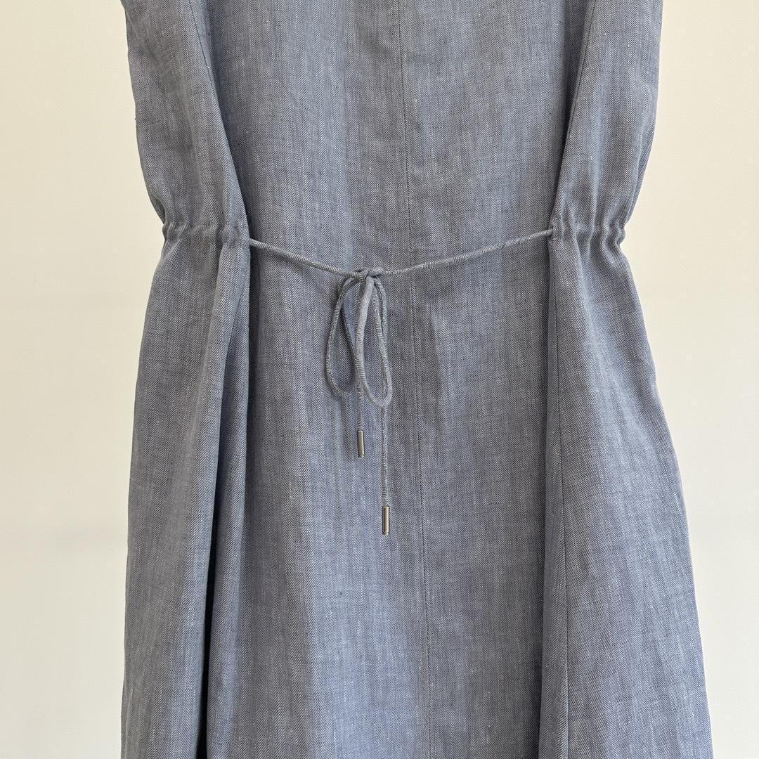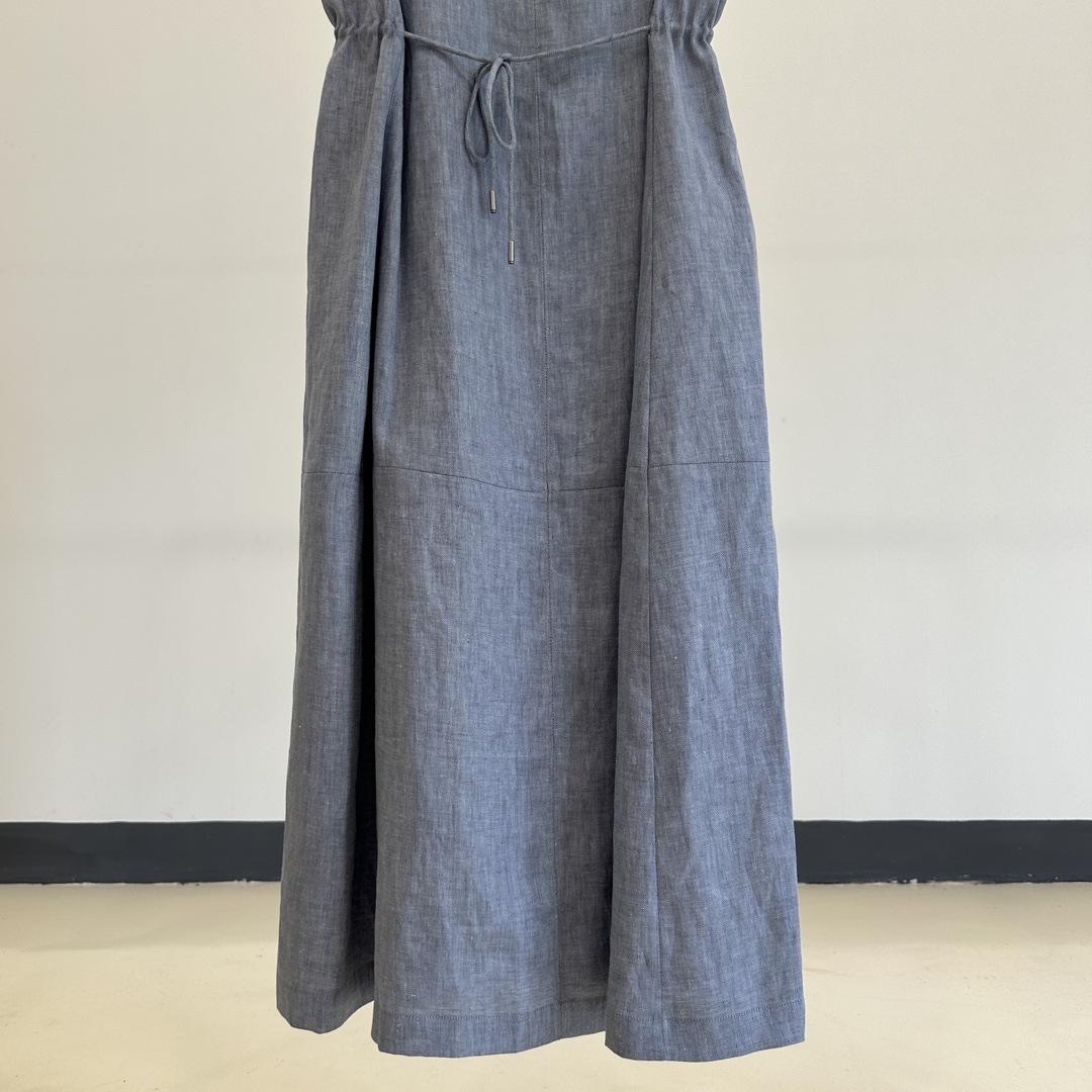 Vestido clásico de lino con escote en V y chaleco francés azul sin mangas