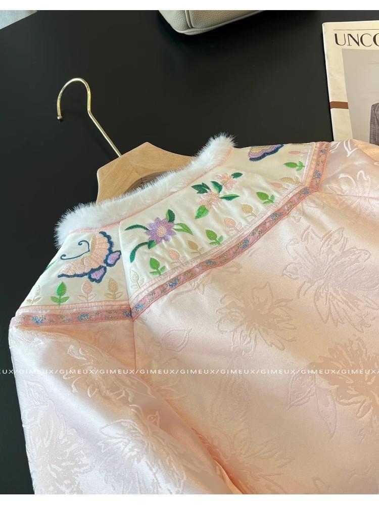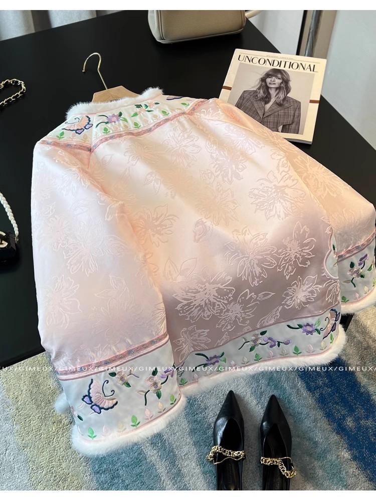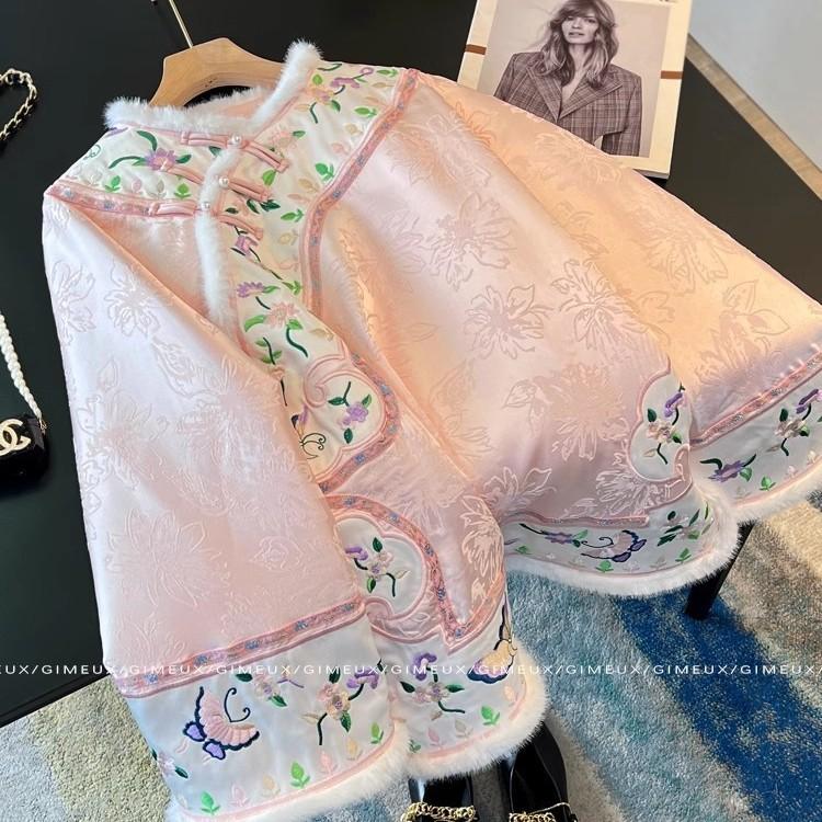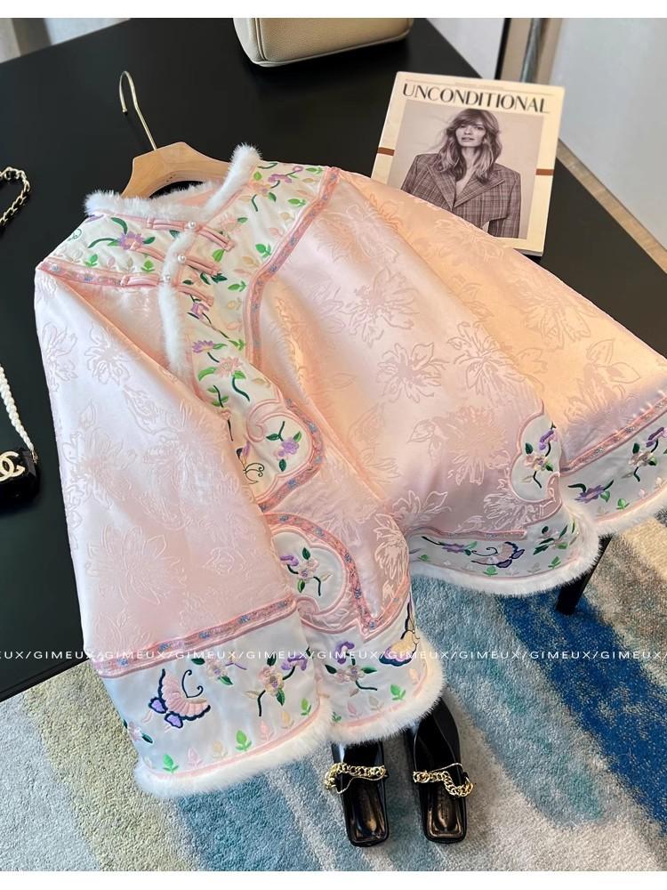 Chaqueta acolchada de algodón estilo nacional chino de otoño e invierno de 2024, chaqueta bordada con botones y cuello redondo con costuras de felpa antiedad para mujer