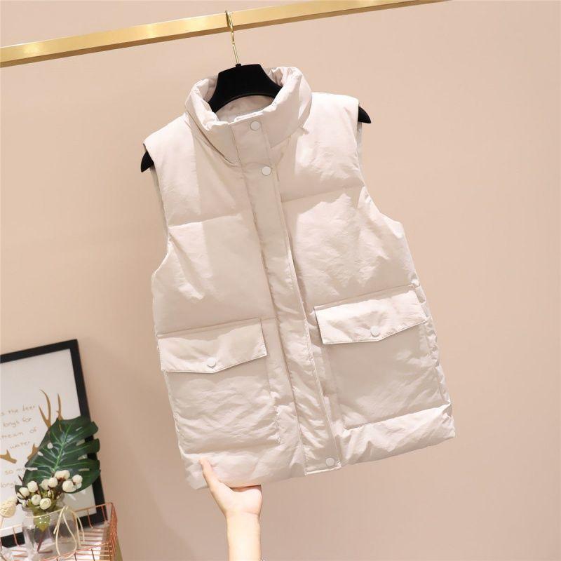 Chaleco de algodón de plumón White-Jin para mujer, corto, holgado, para otoño e invierno, cálido