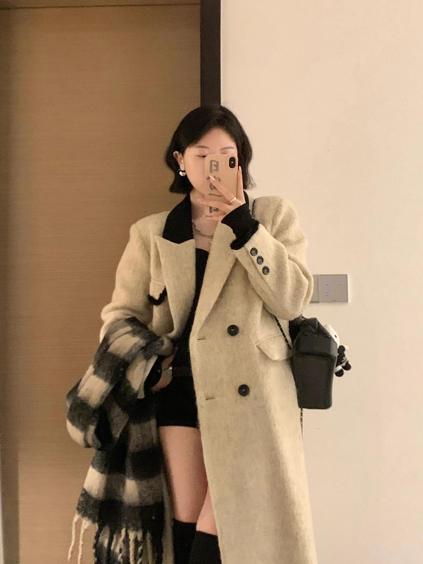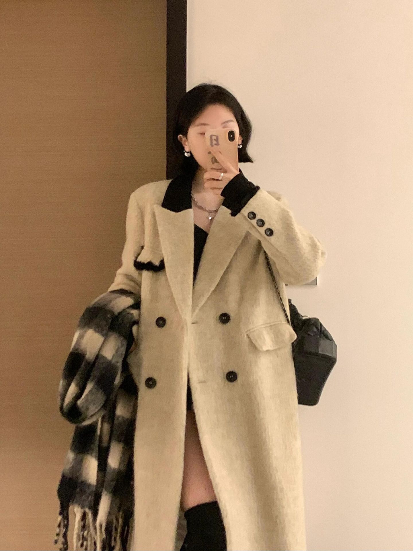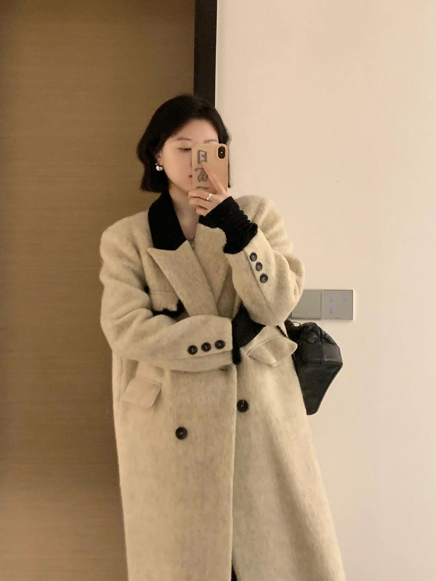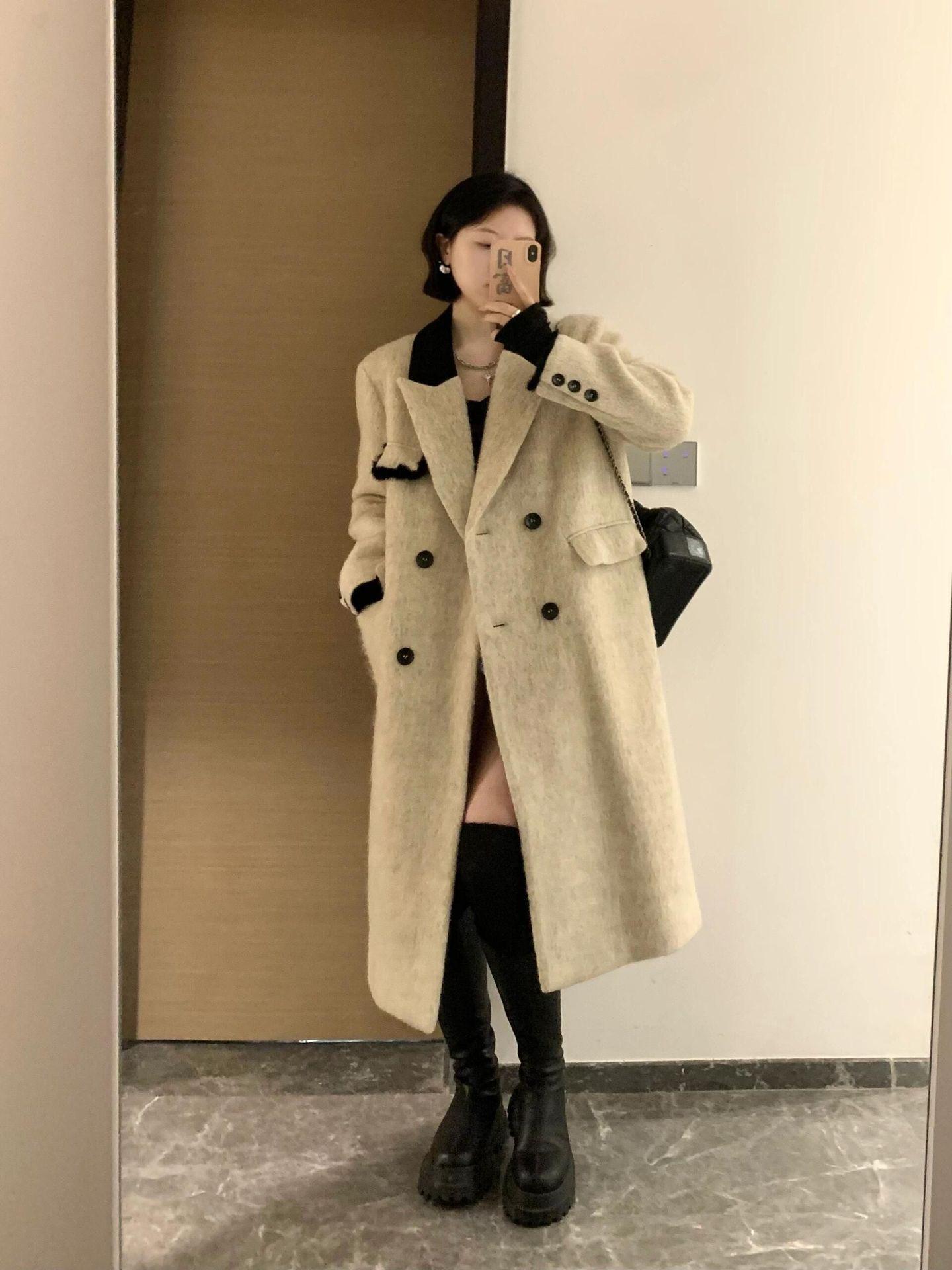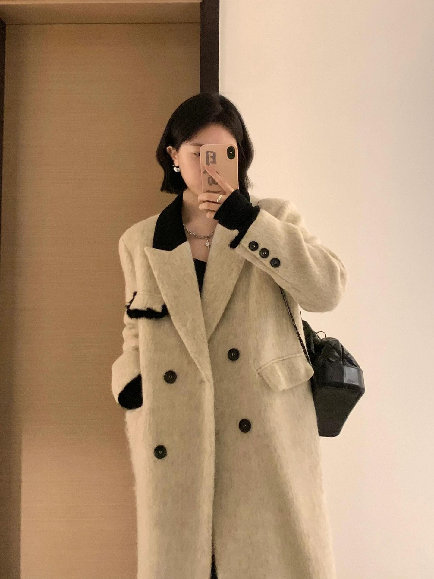 Abrigo Longfengni pequeño de longitud media, estilo coreano, de lana, holgado y a la moda, para mujer, para invierno.