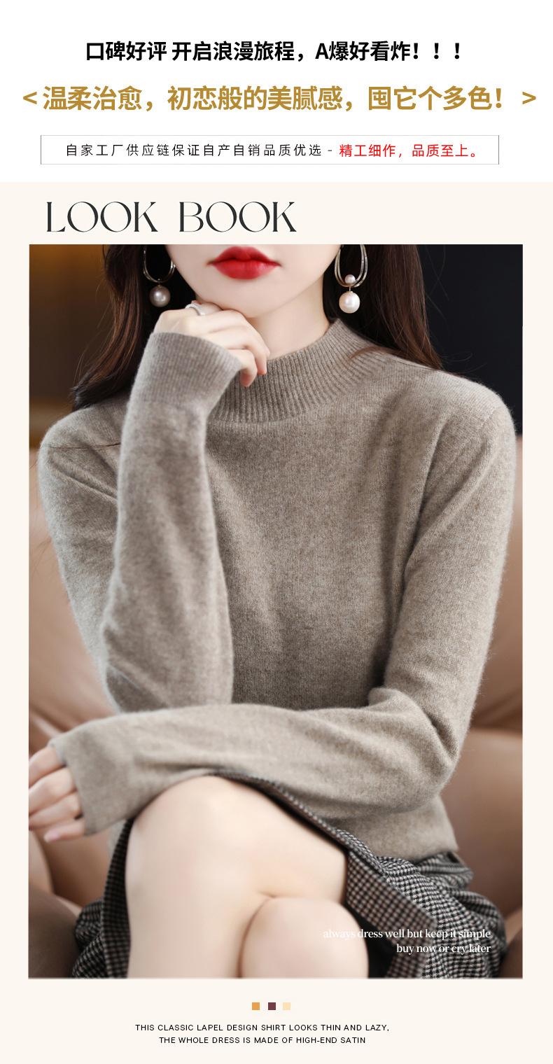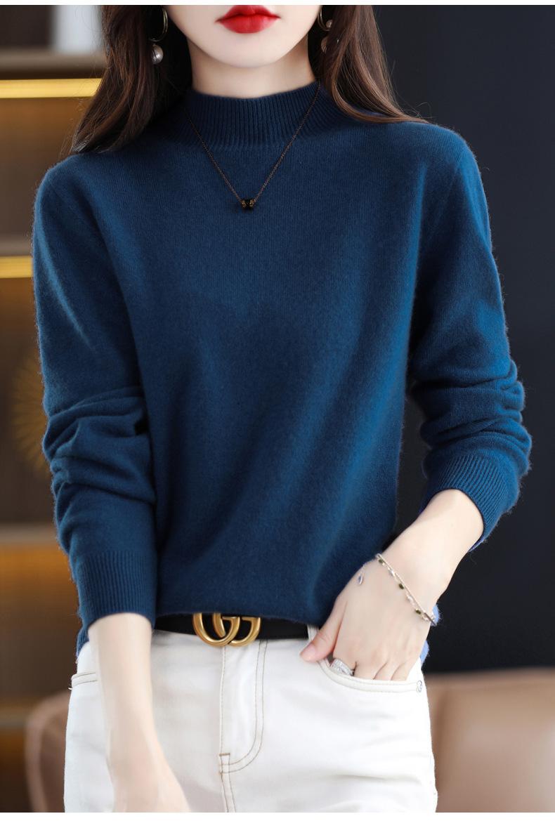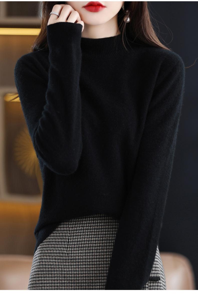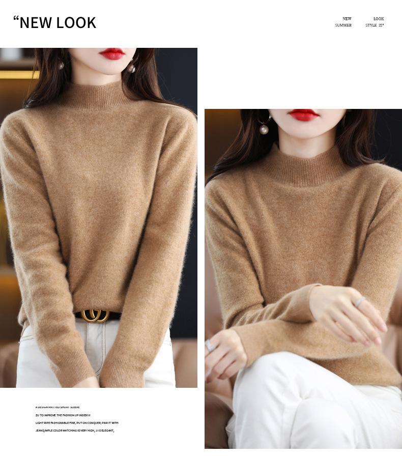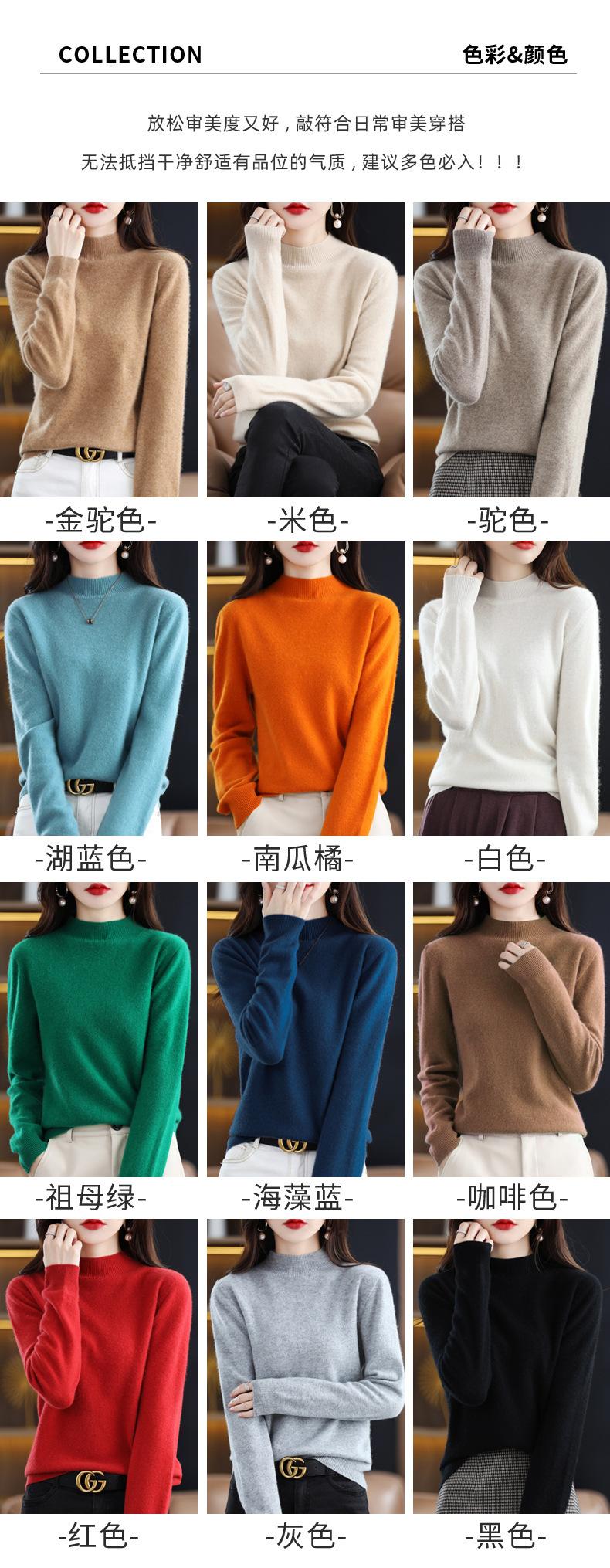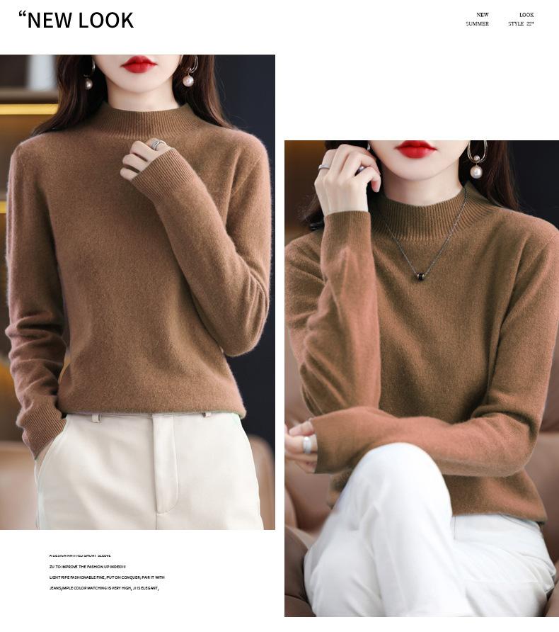 Suéter de terciopelo Andy de una pieza con cuello alto y media manga sin costuras para mujer, otoño e invierno, nuevo jersey clásico de color sólido con base interior de moda