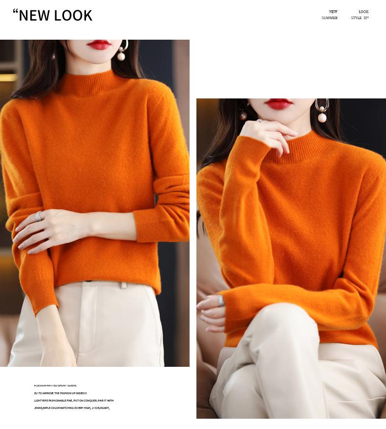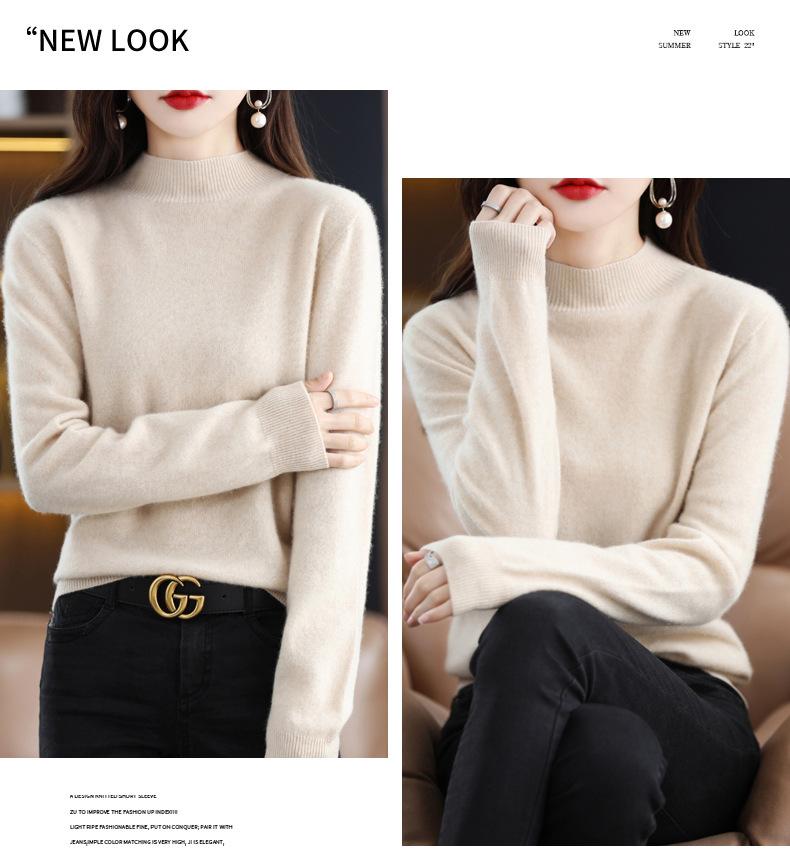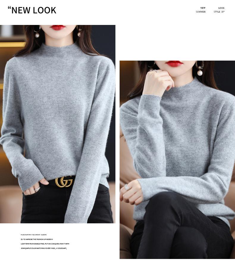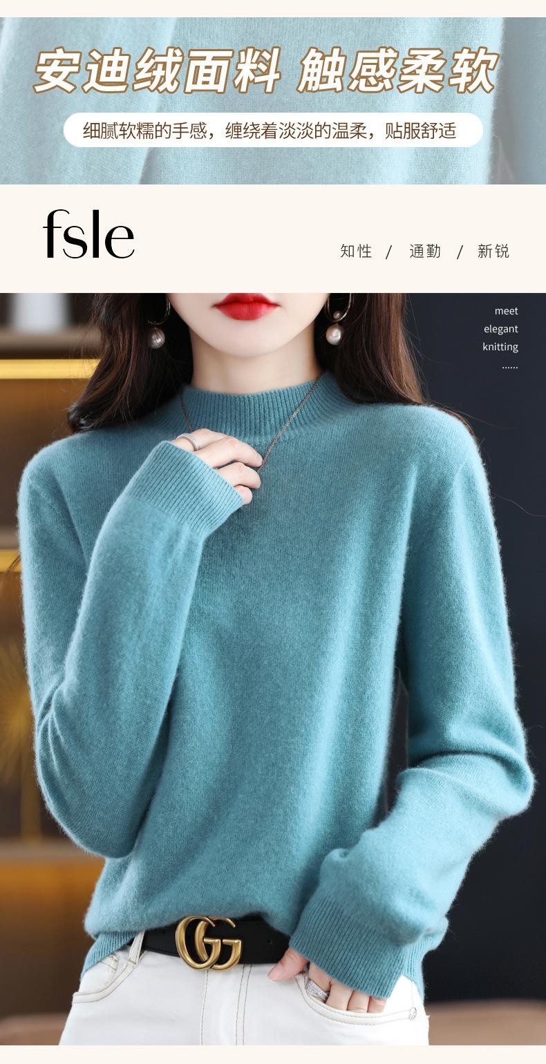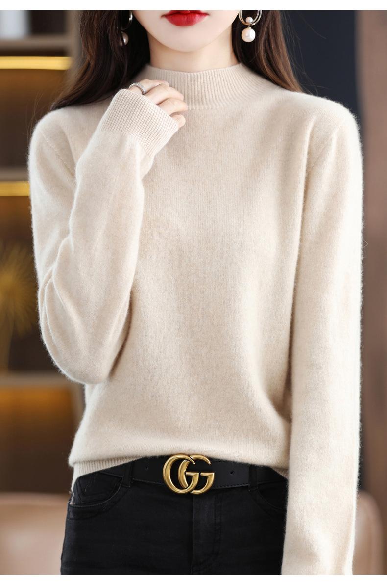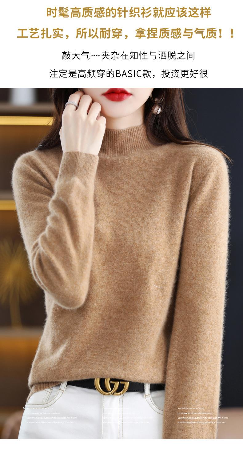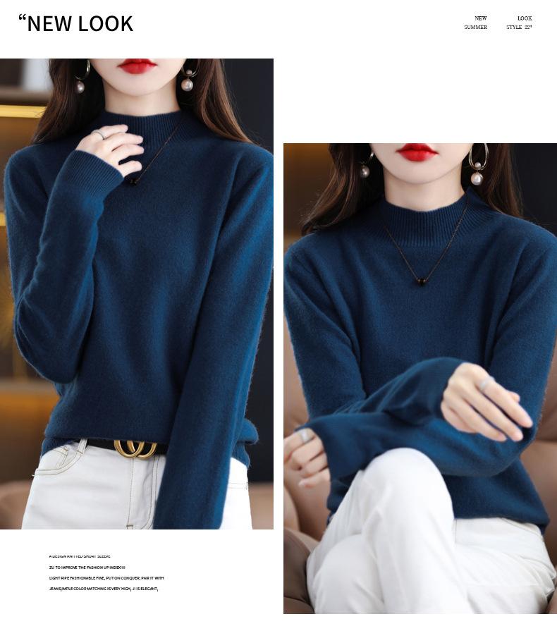 Suéter de terciopelo Andy de una pieza con cuello alto y media manga sin costuras para mujer, otoño e invierno, nuevo jersey clásico de color sólido con base interior de moda